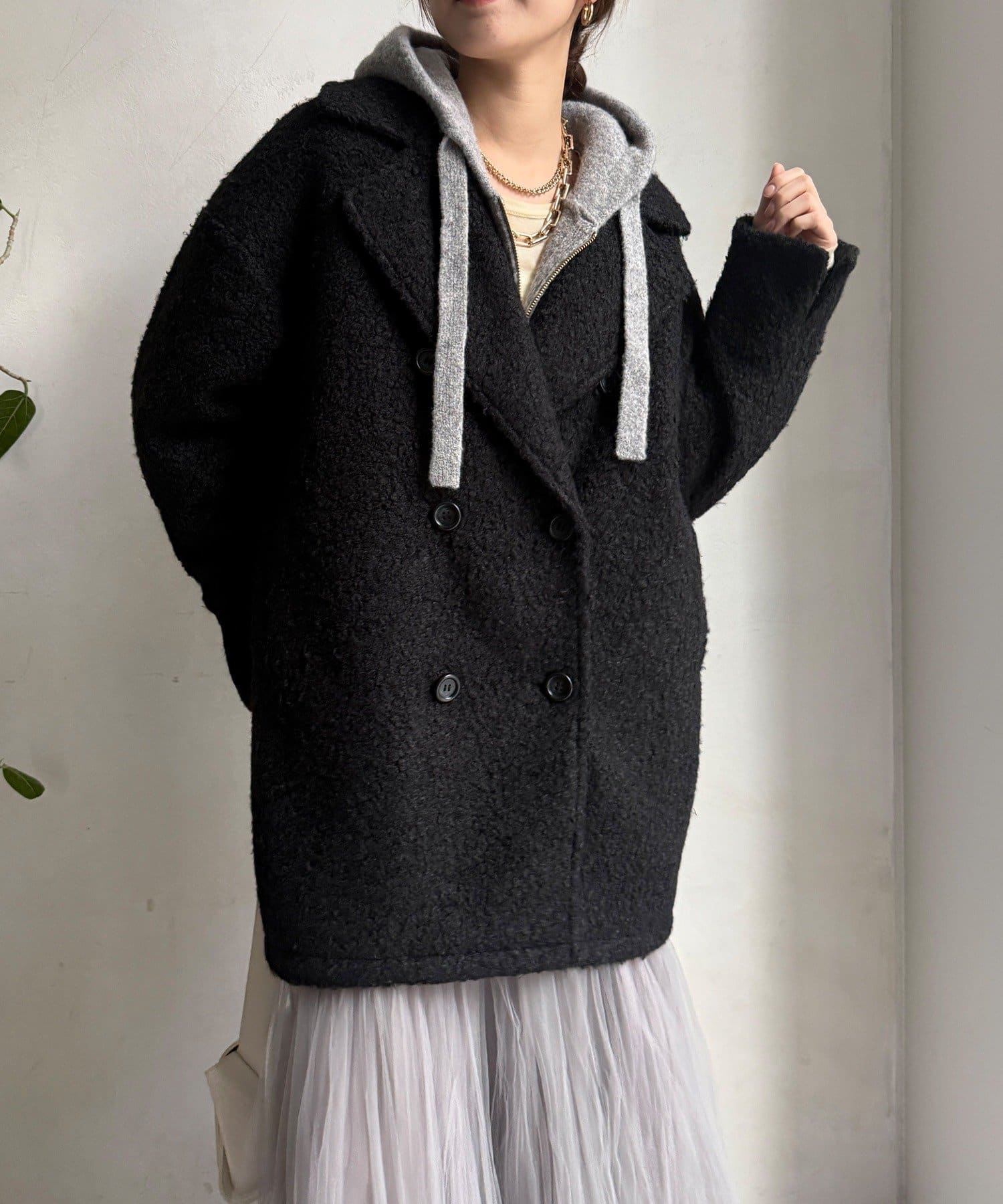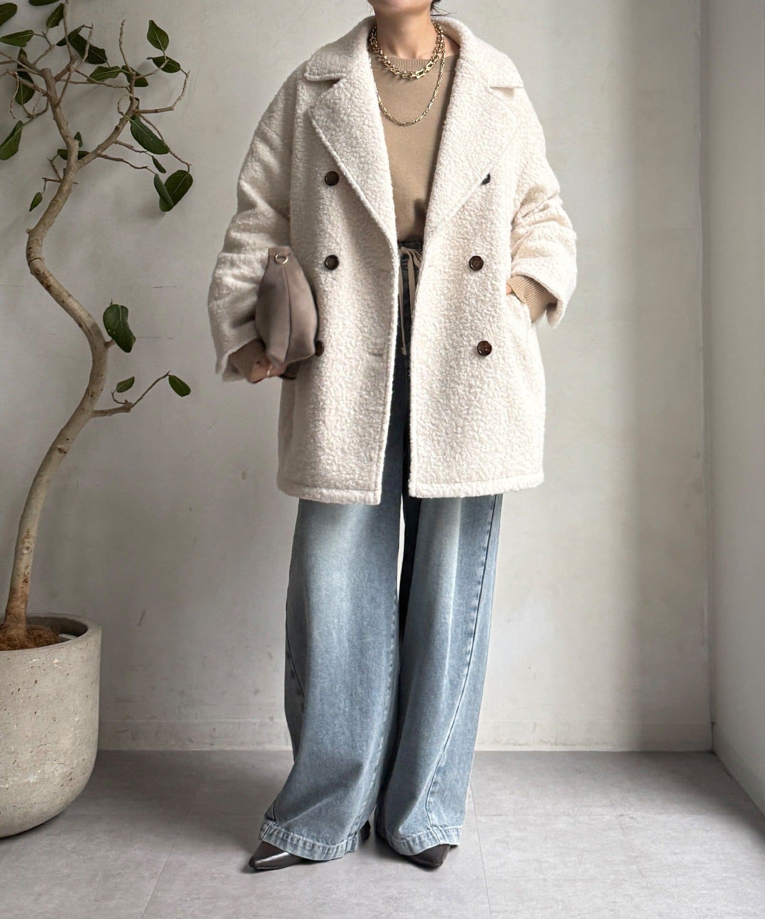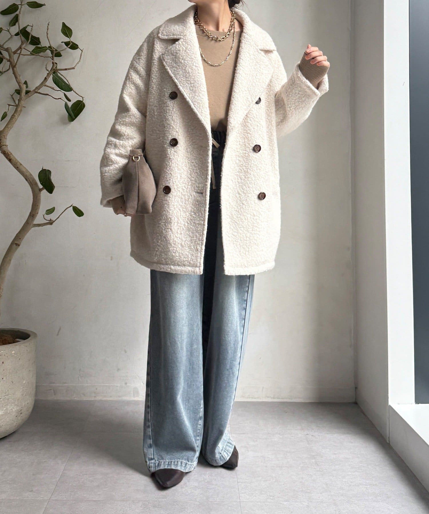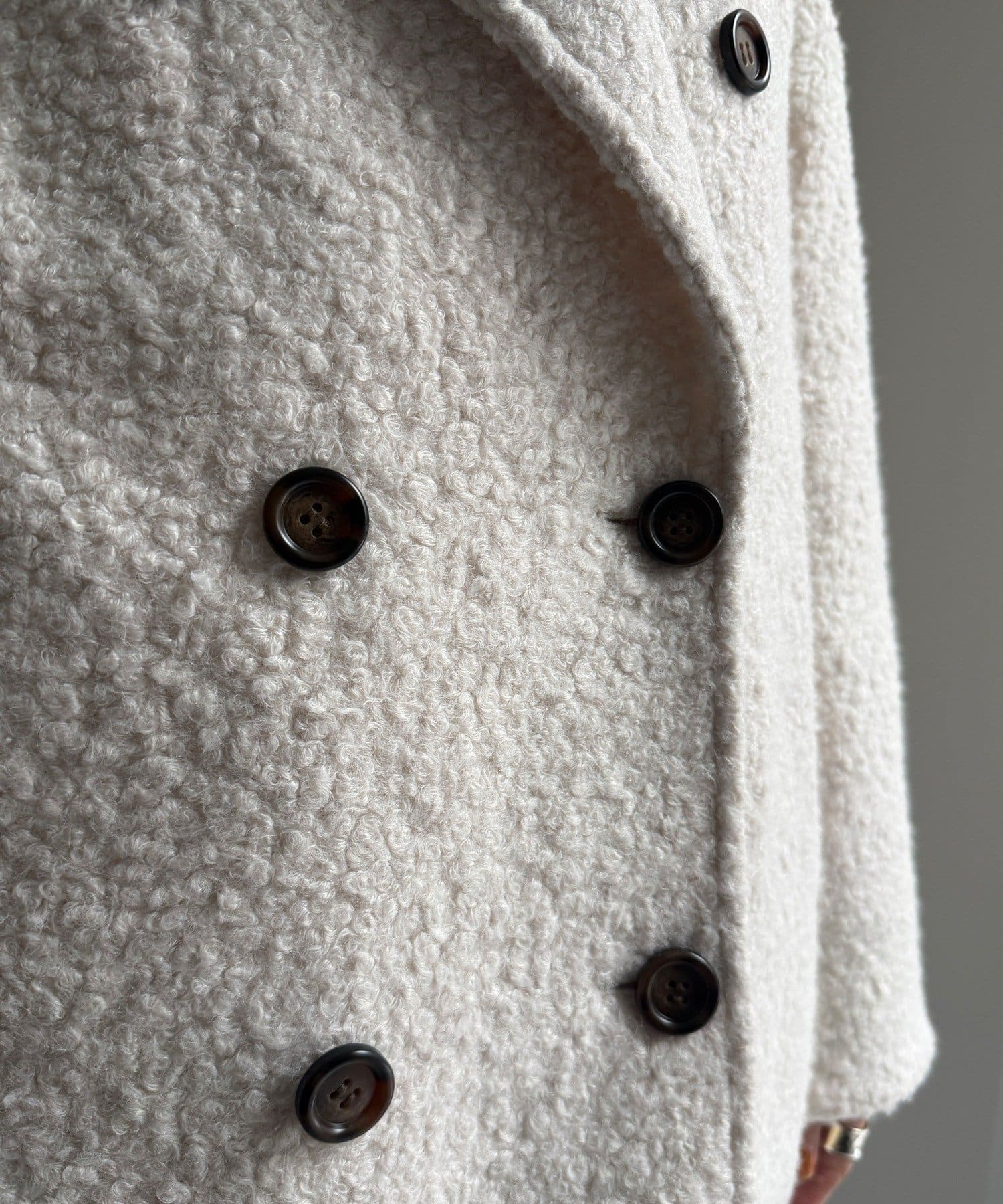 ふんわりとしたボアの質感と、きちんと感のあるテーラードデザインが融合した、今季注目のダブルコートが登場!