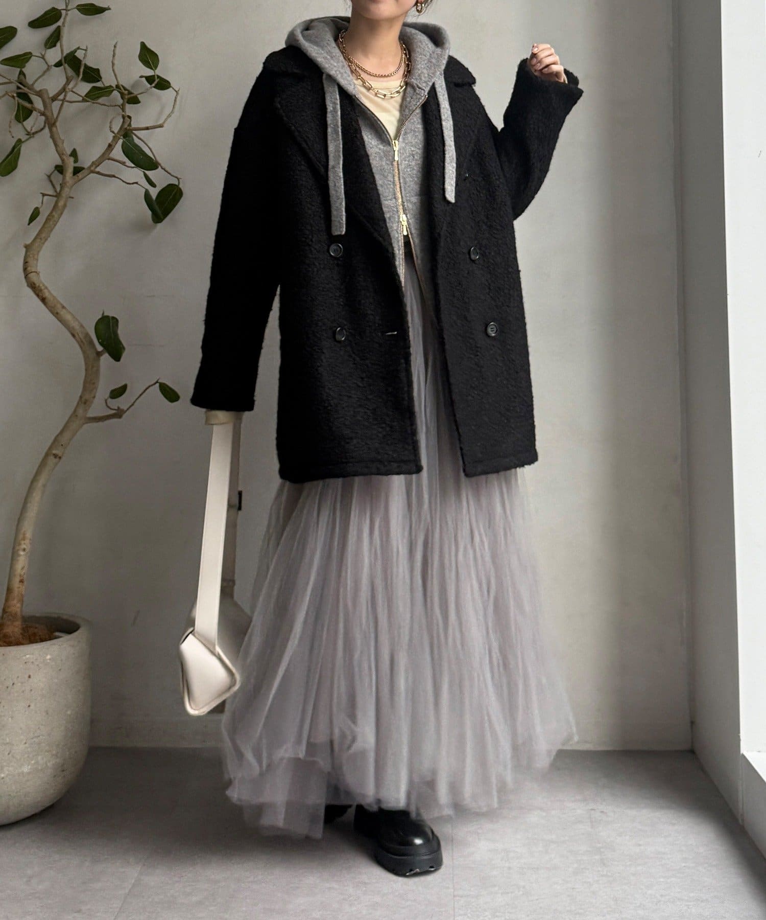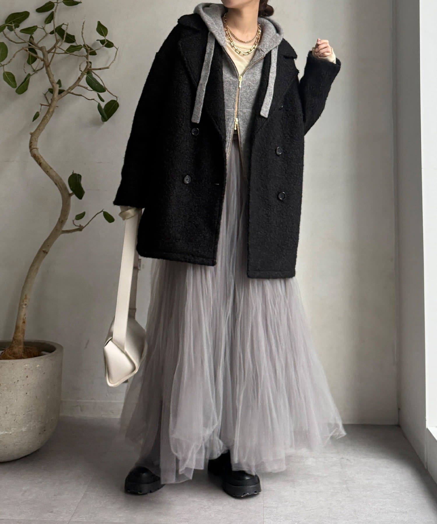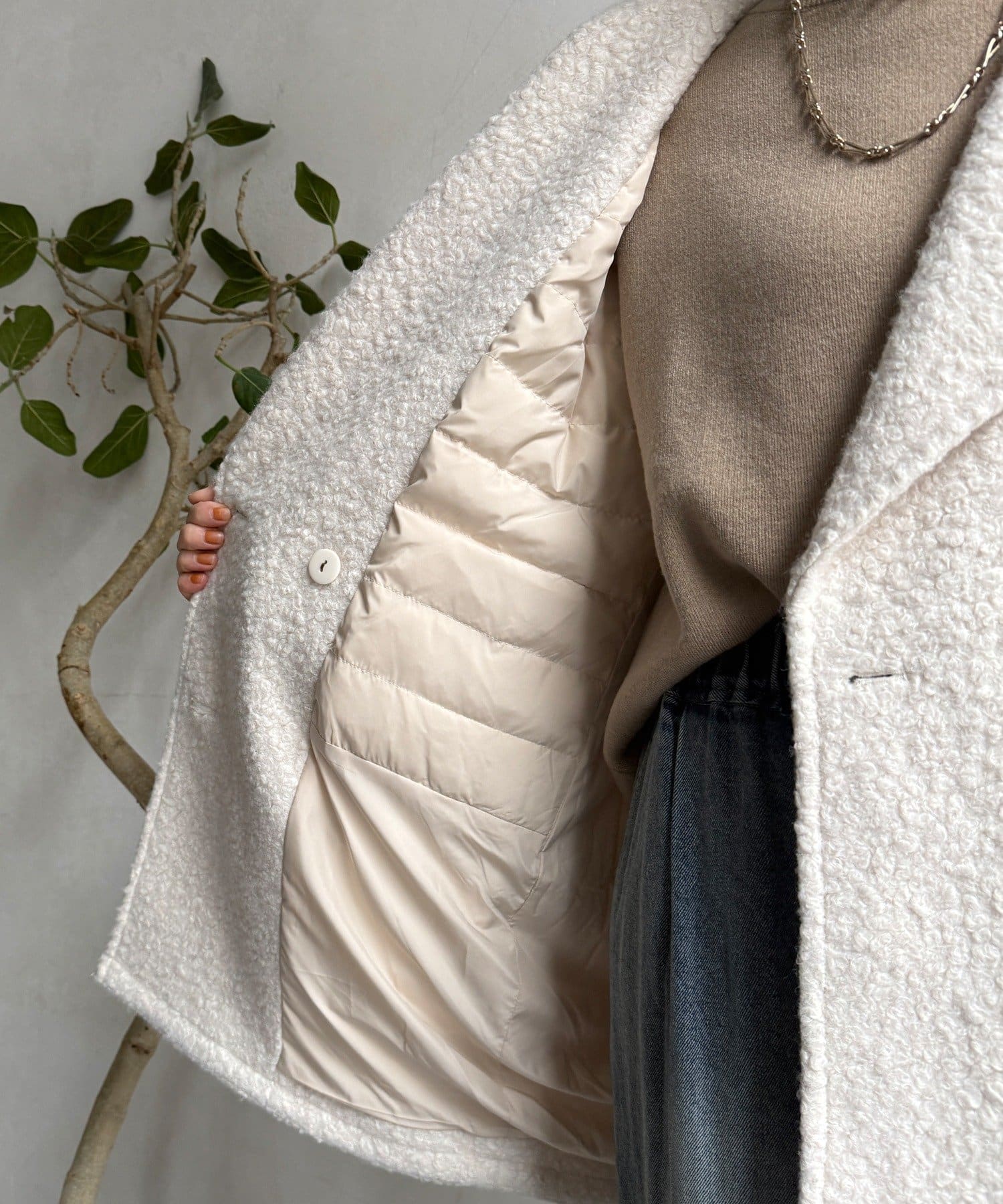 ボアのぬくもり×テーラードの品格。開けても締めても可愛いコート