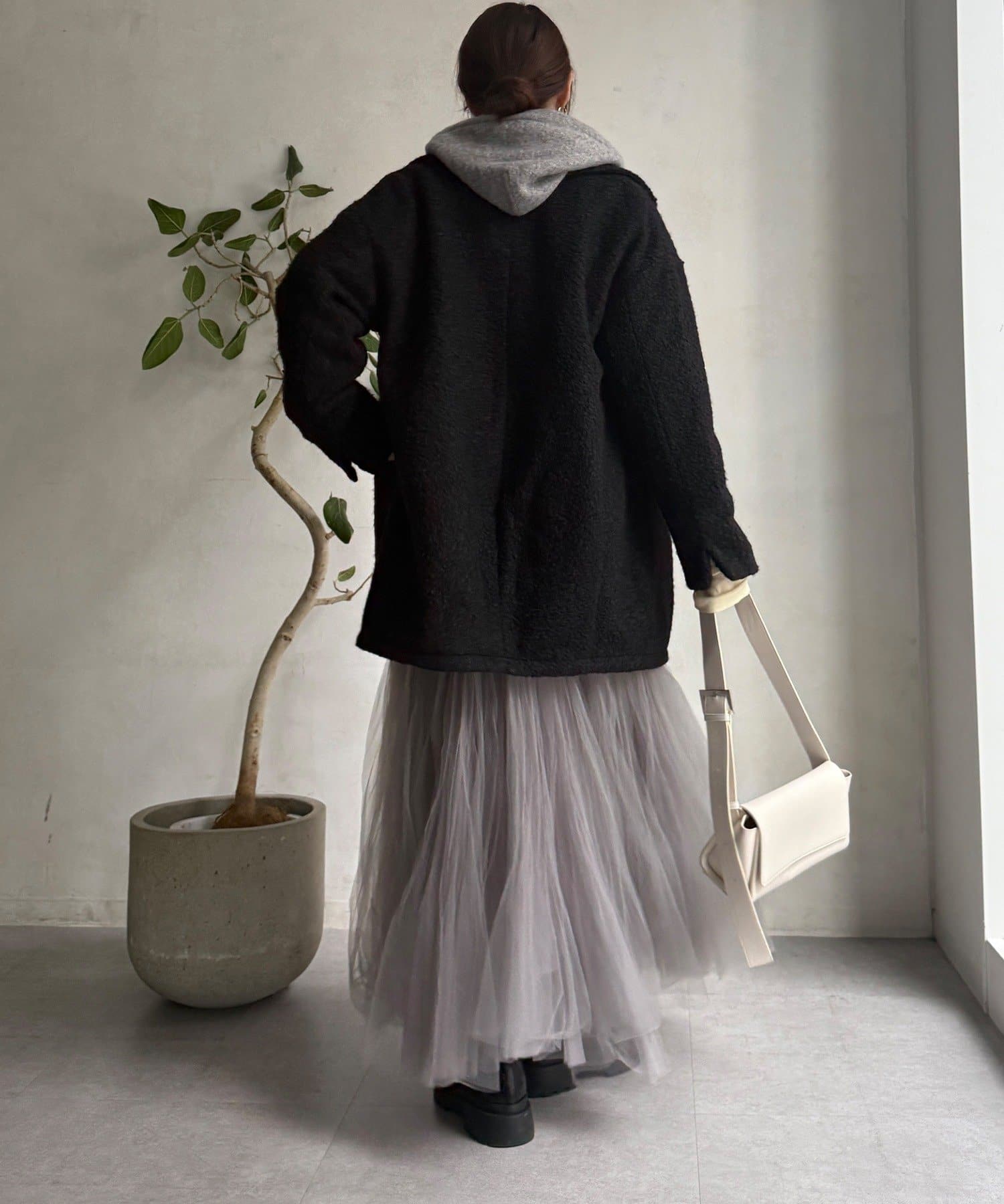 開けても締めても絵になる、冬の主役コートです。
