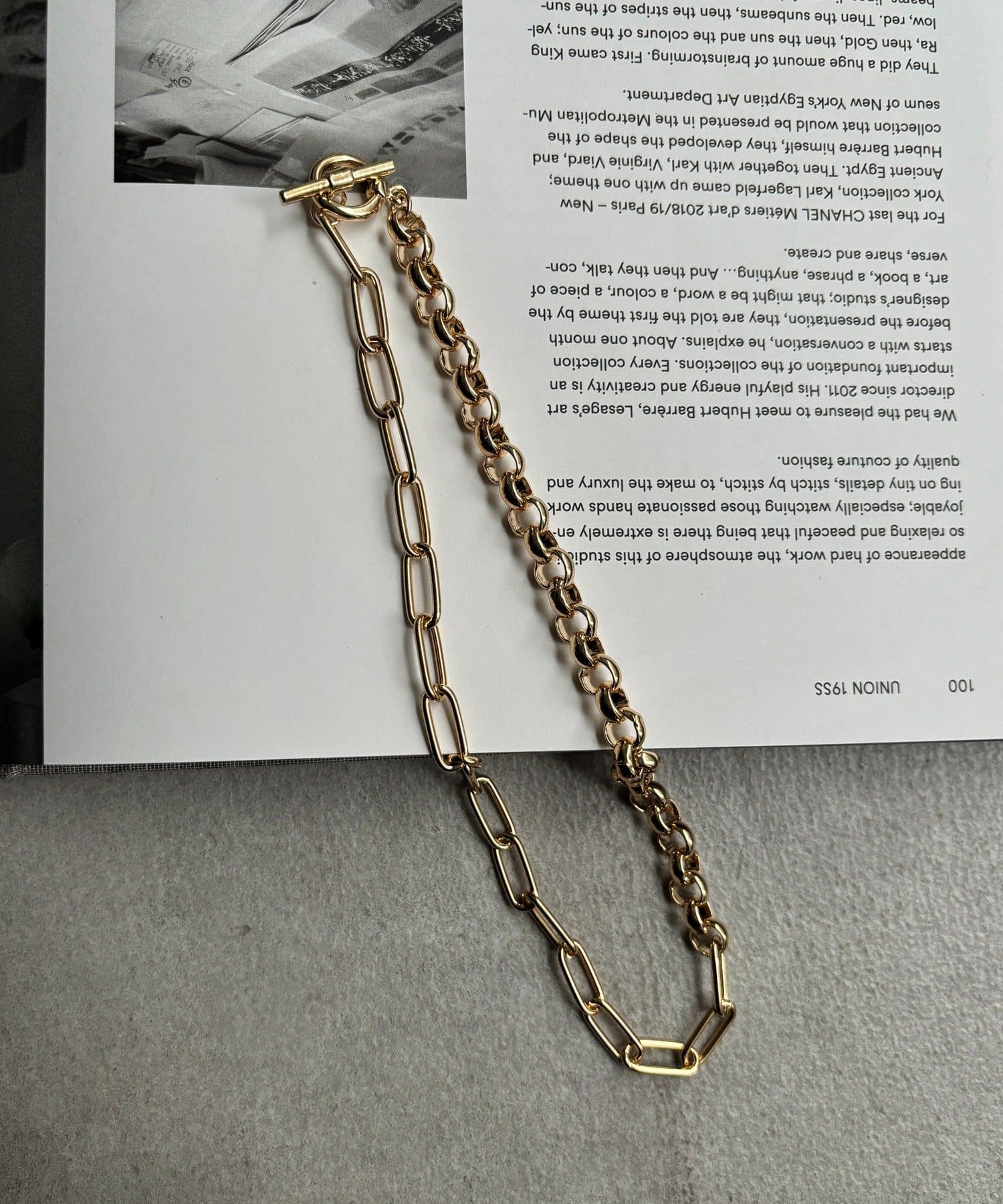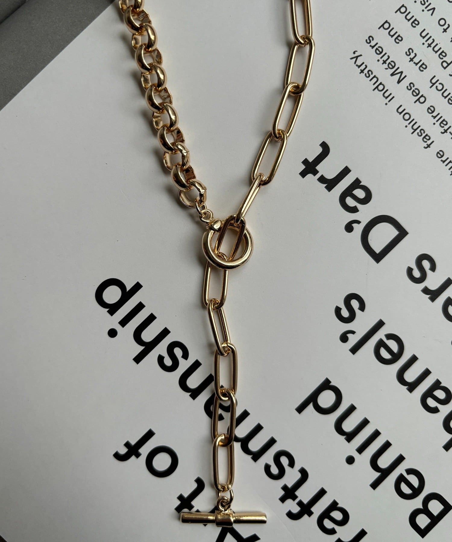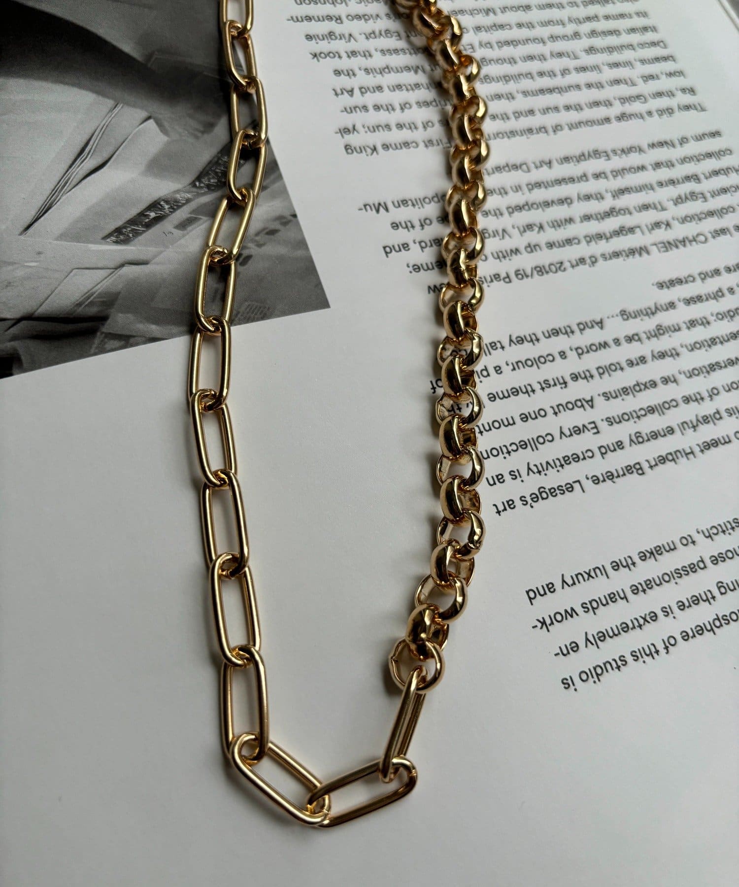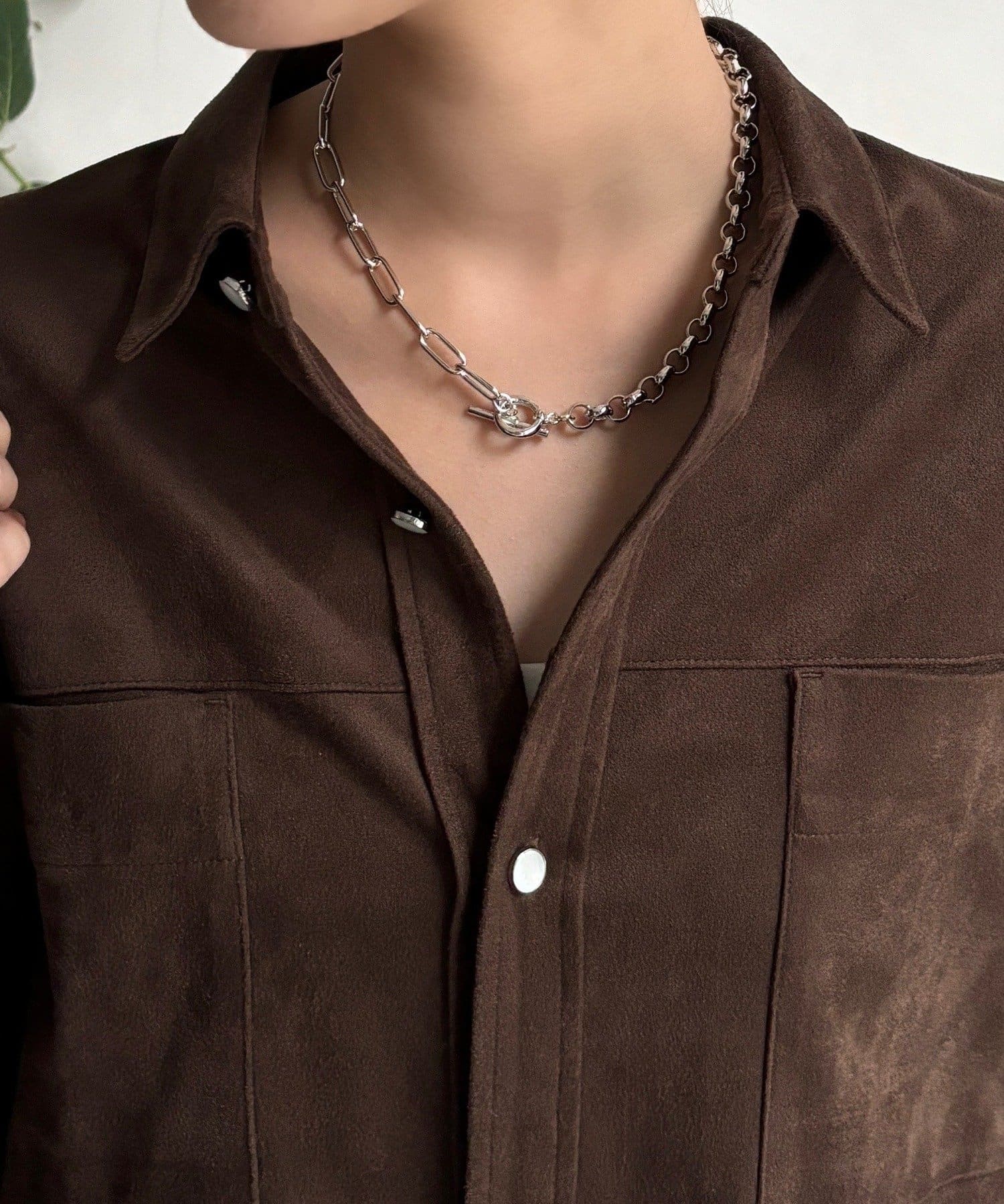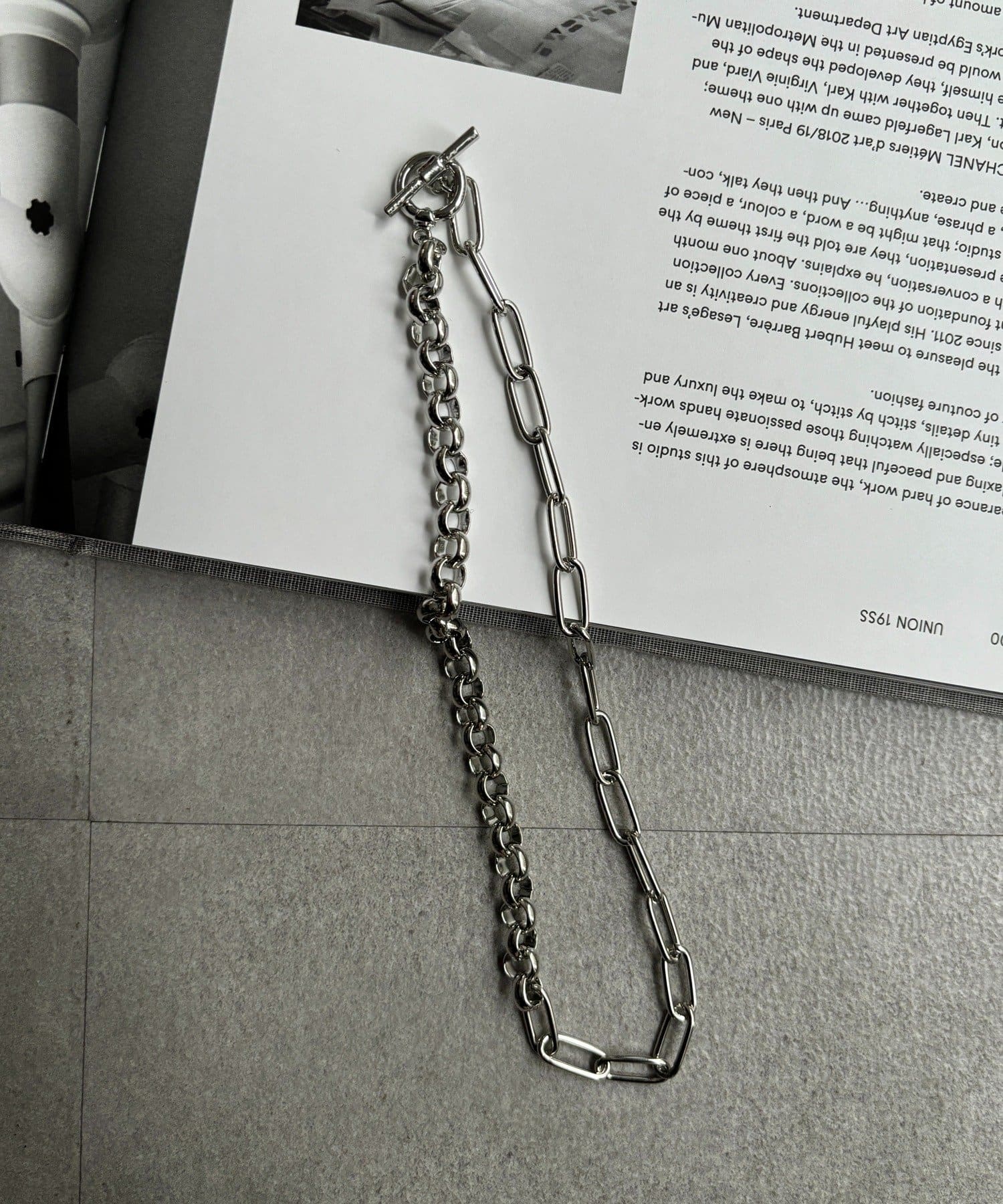 異なる形状のチェーンを組み合わせることで生まれる立体的な表情に。