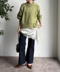 ラグランスリーブで肩まわりをスッキリ見せつつ