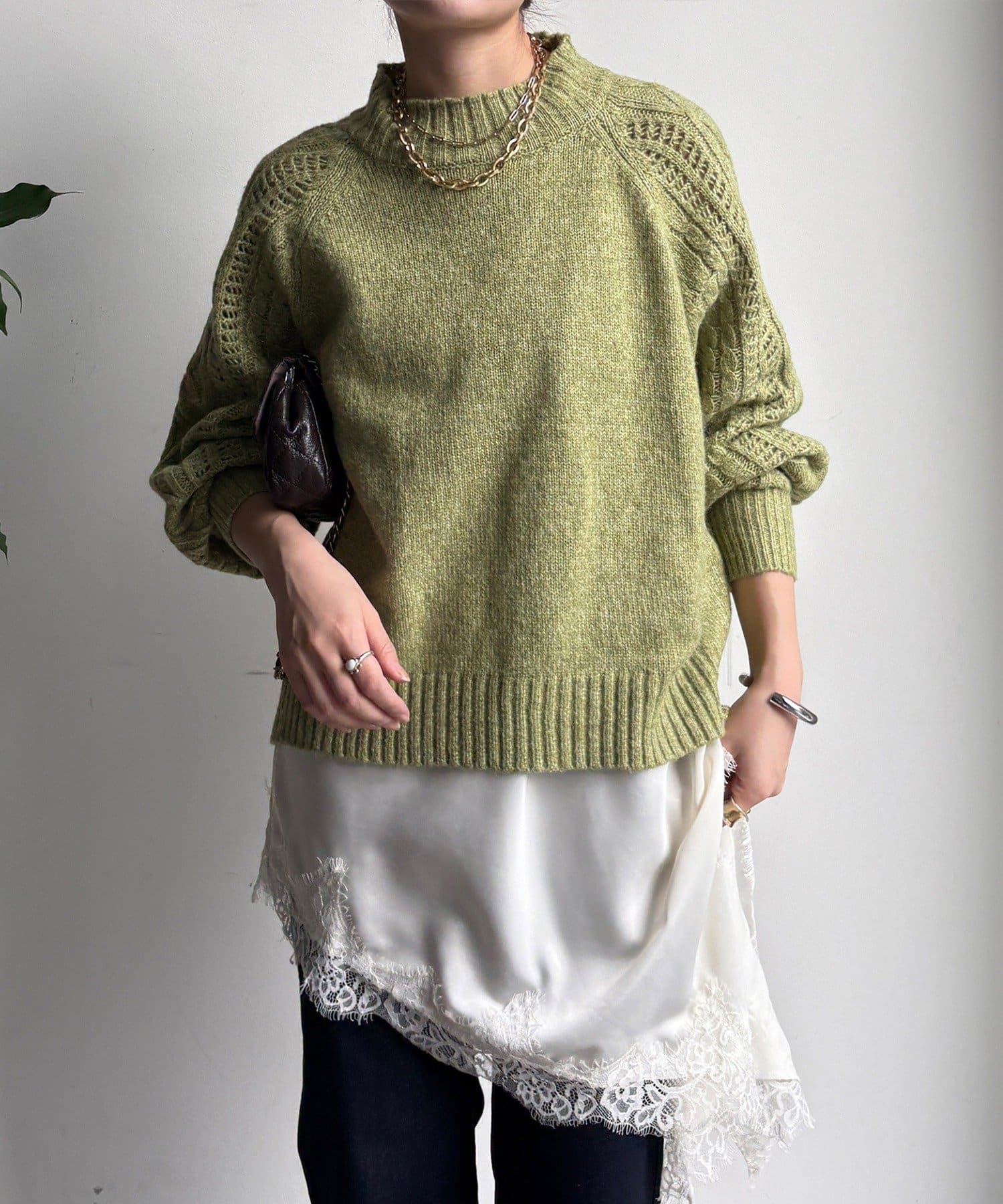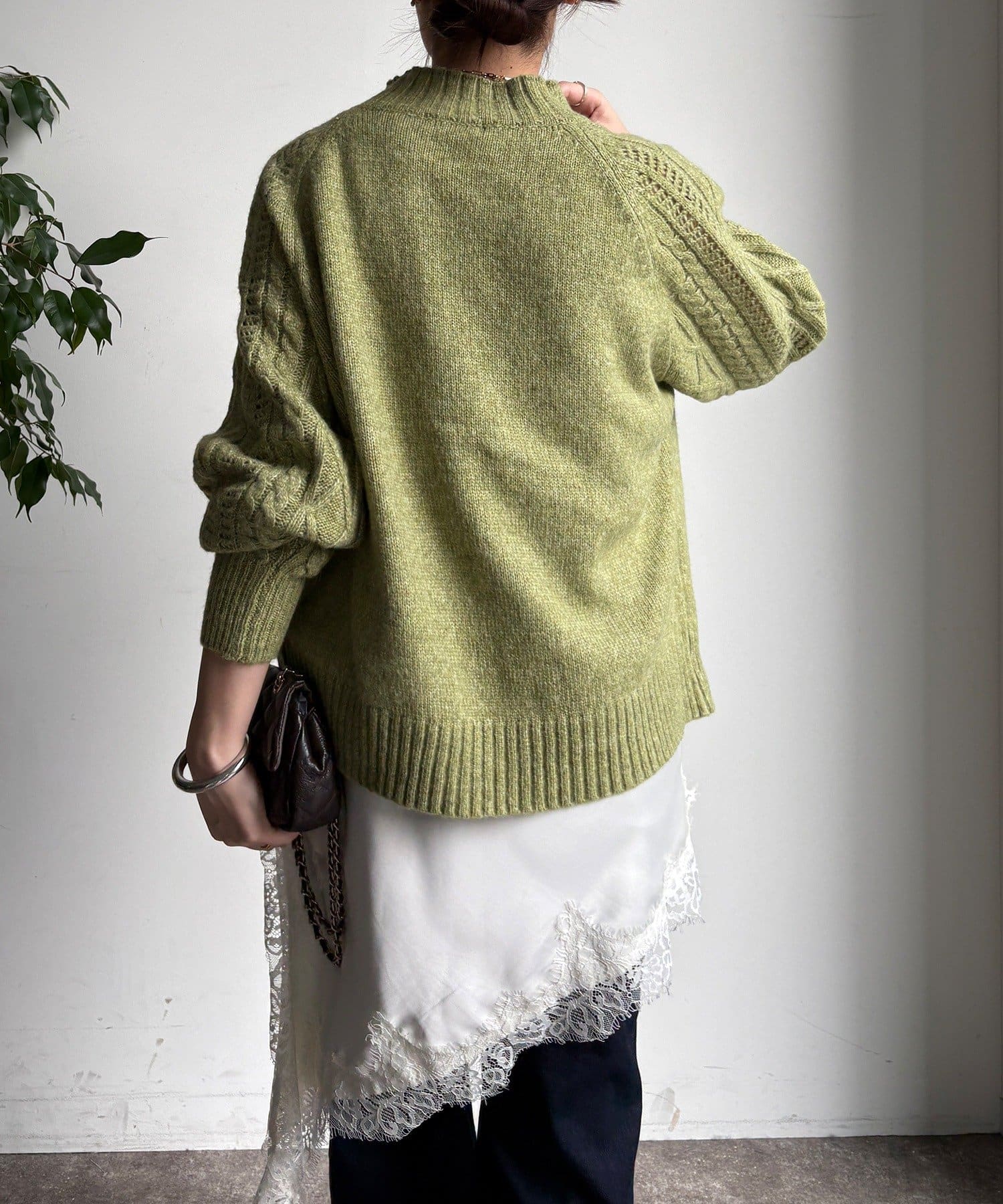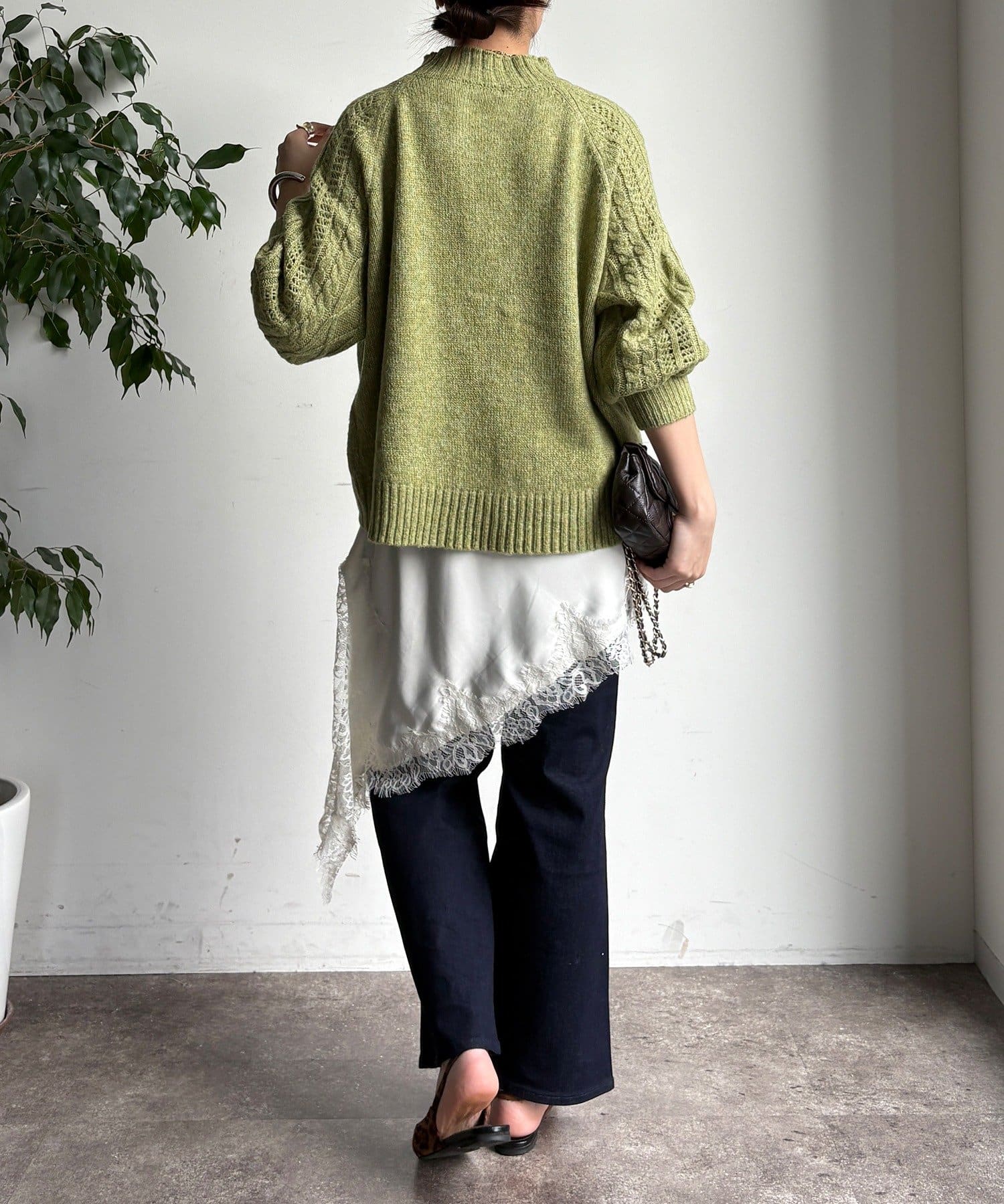 【WEB限定】透かしケーブル切替ラグランプルオーバー