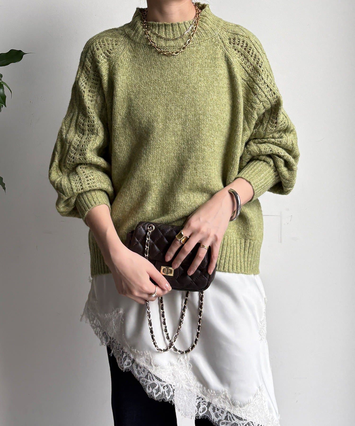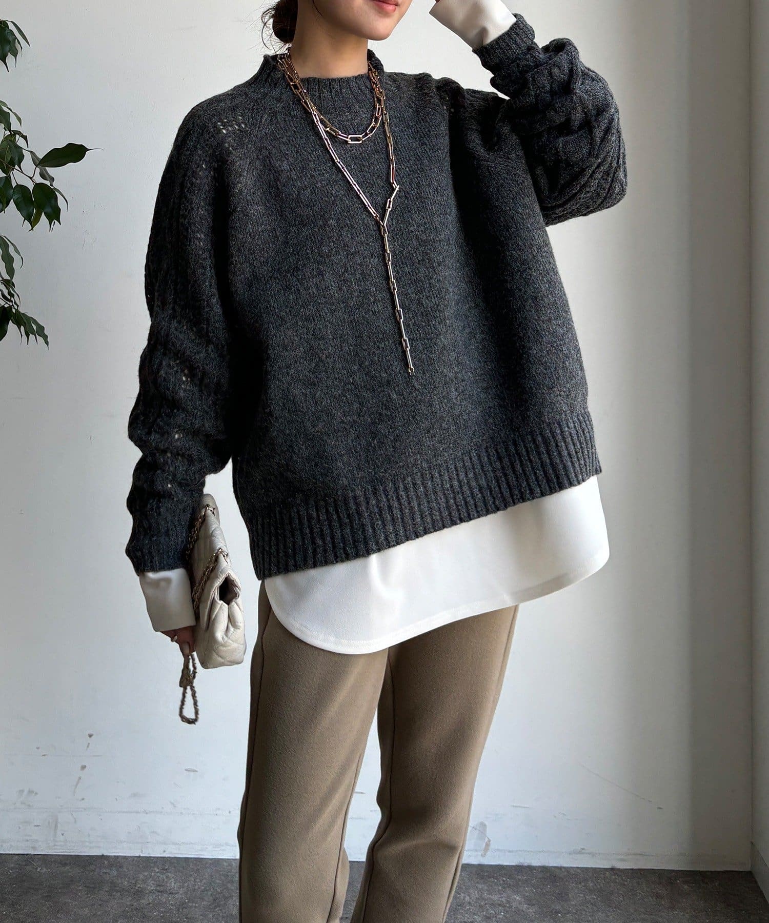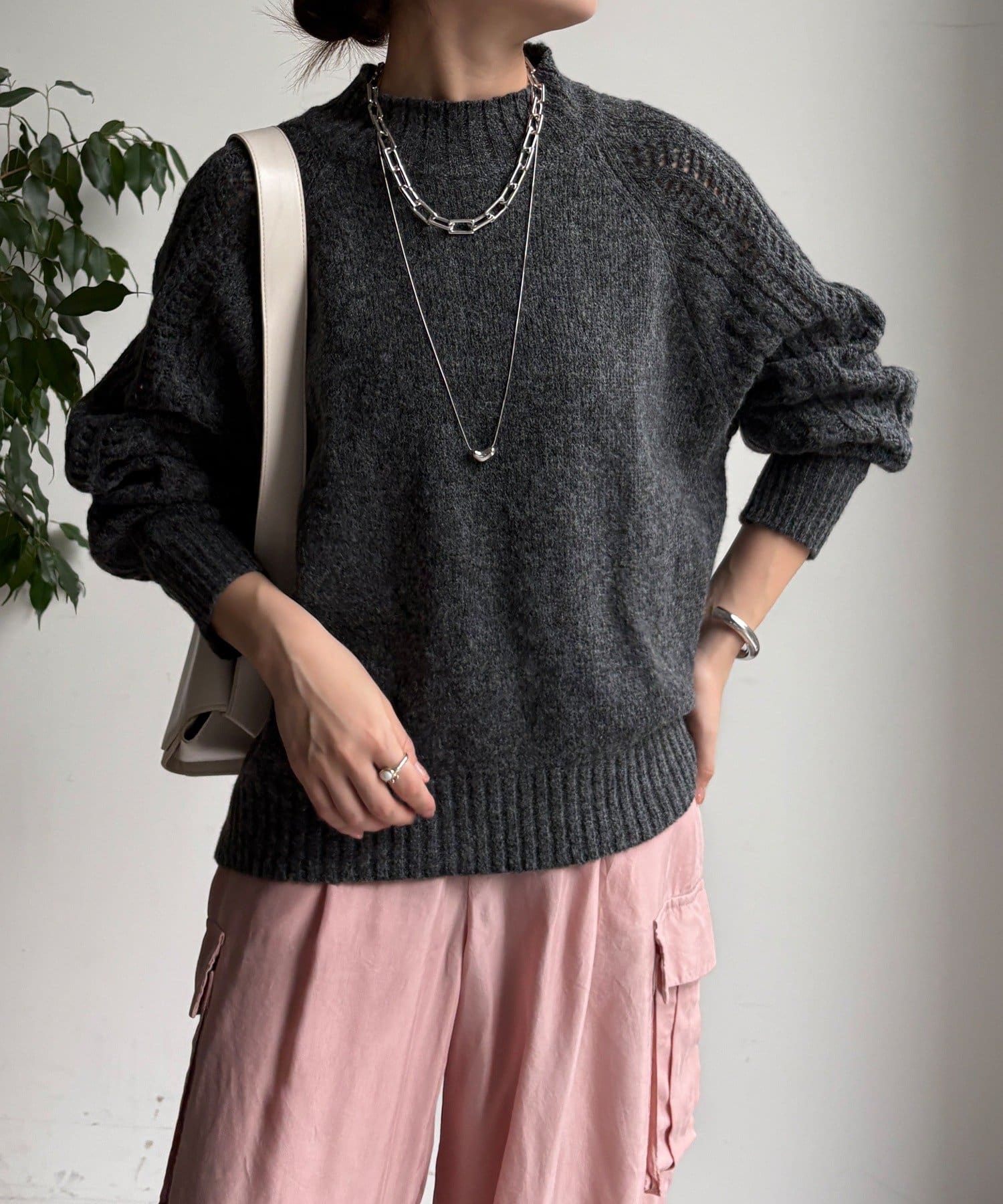 【WEB限定】透かしケーブル切替ラグランプルオーバー
