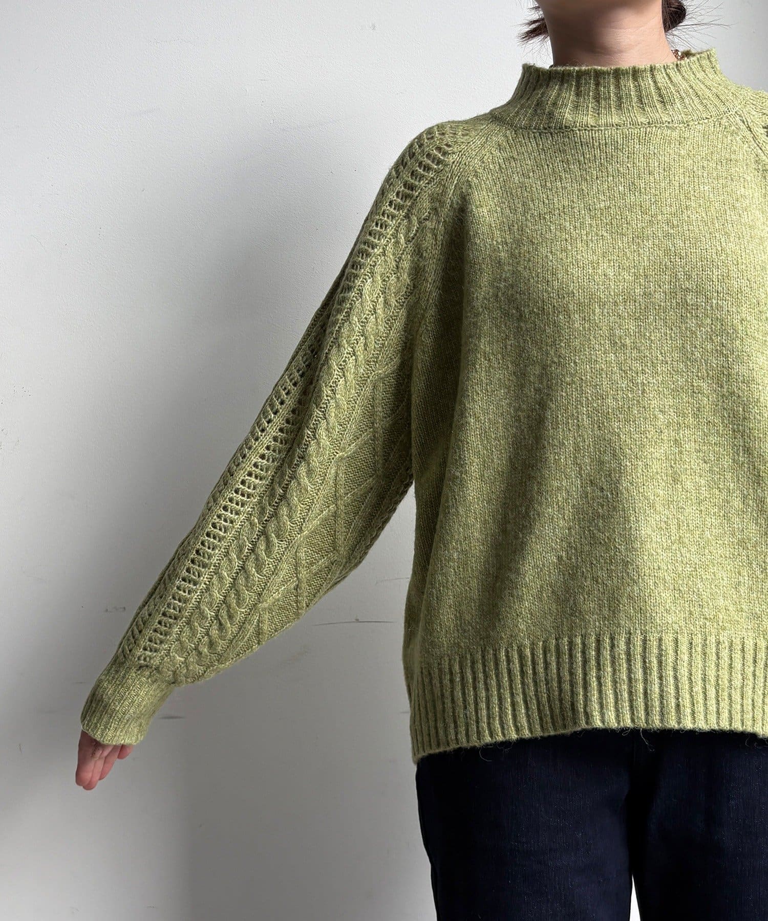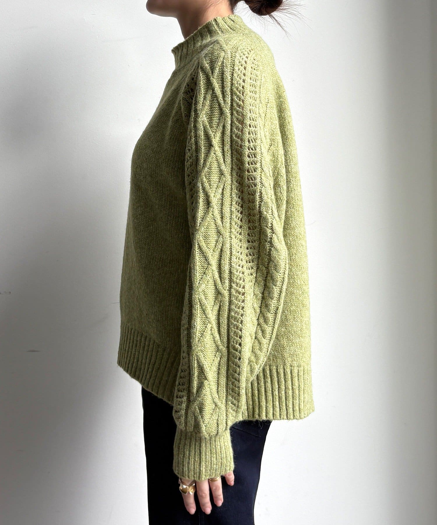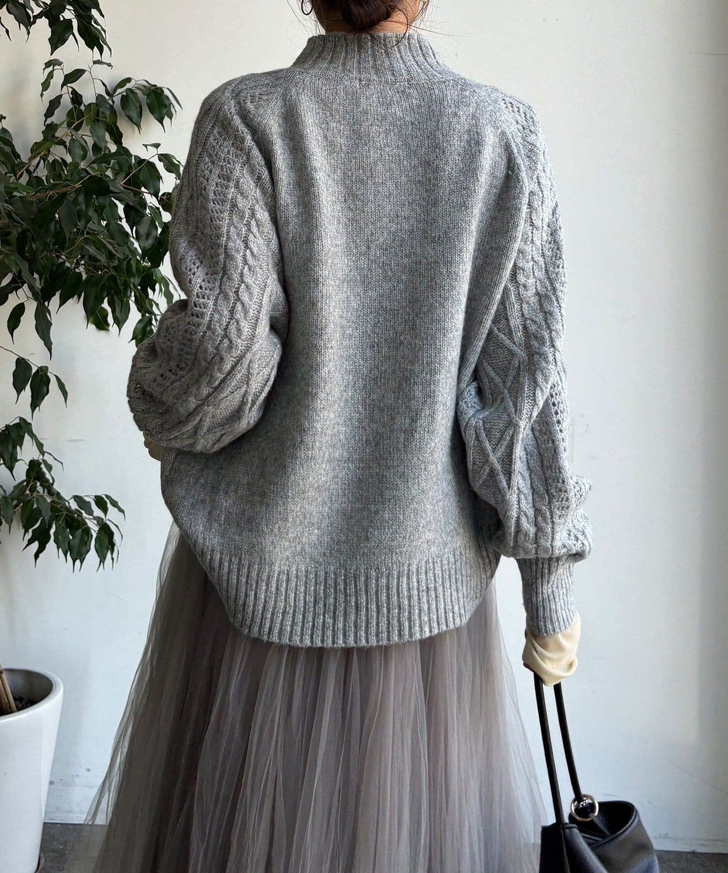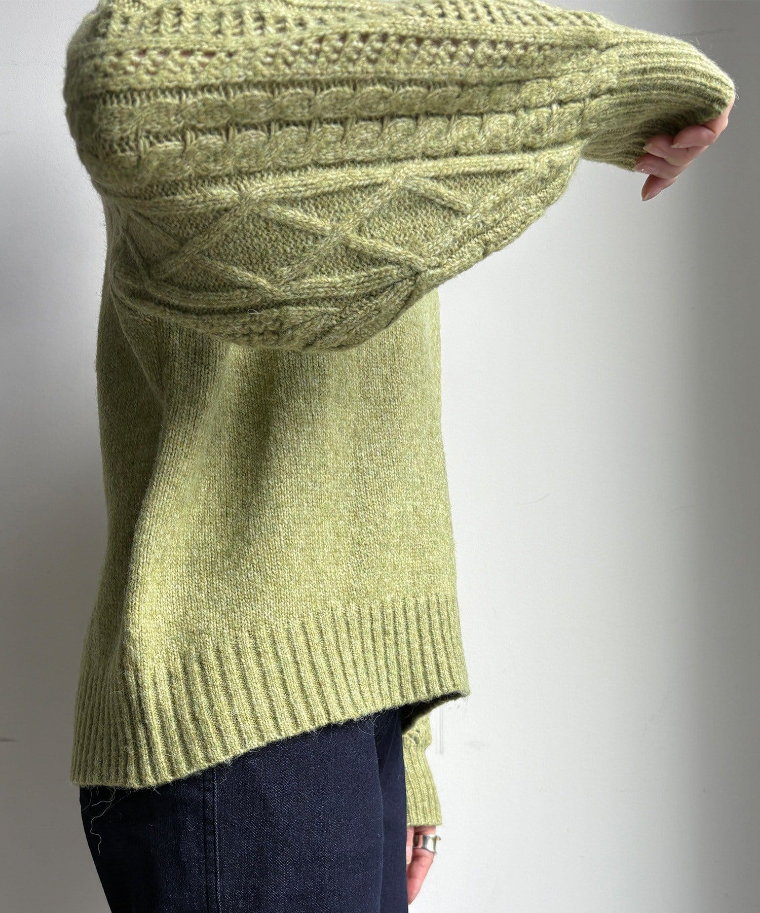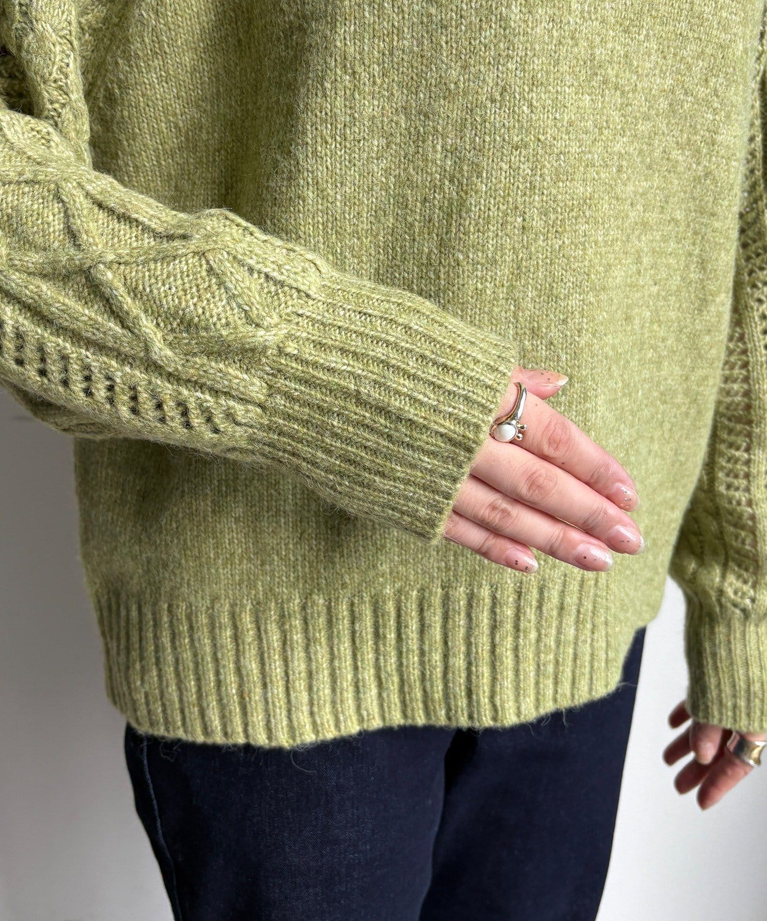 袖に立体感のあるケーブル編みと、程よく抜け感を生む