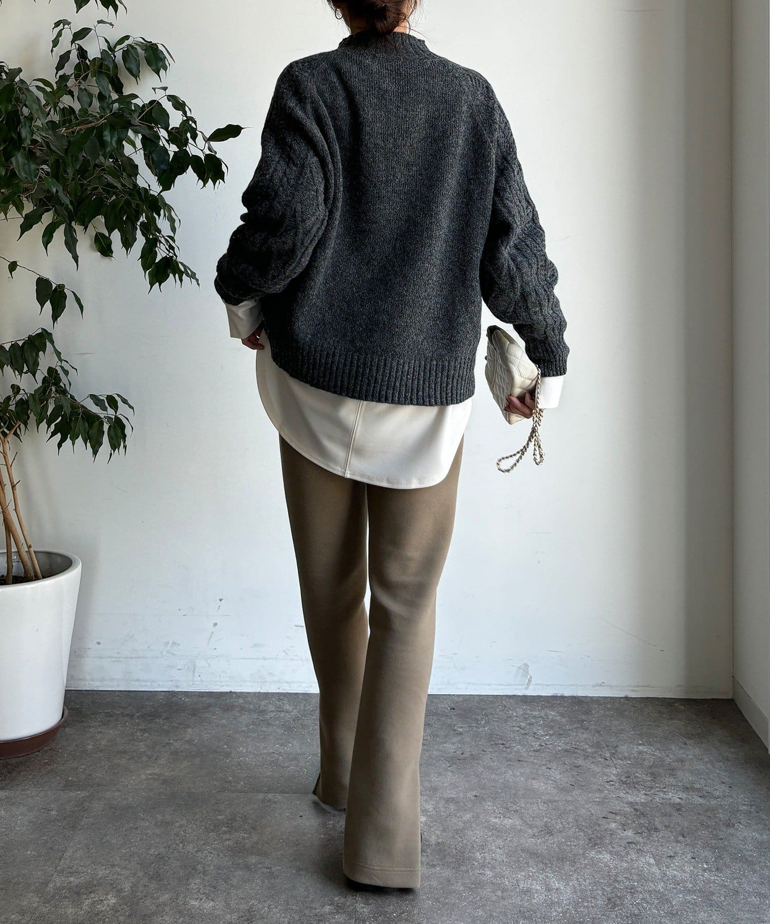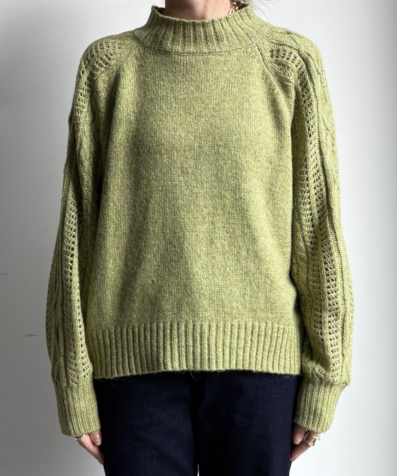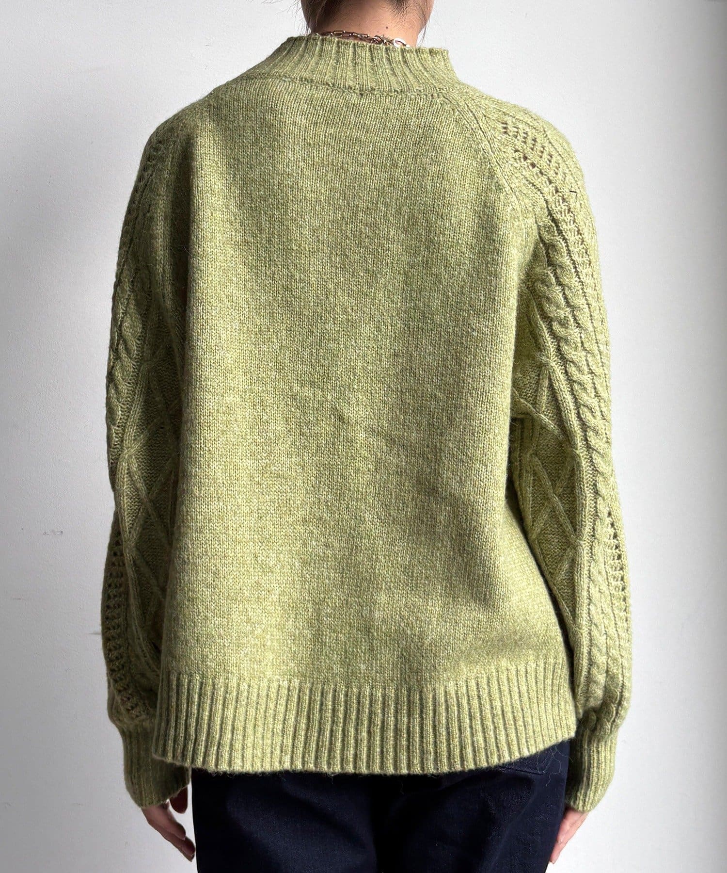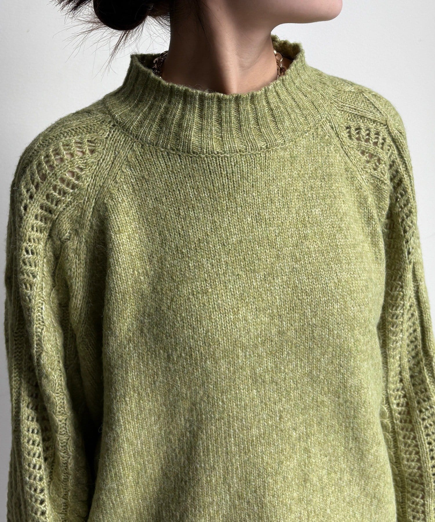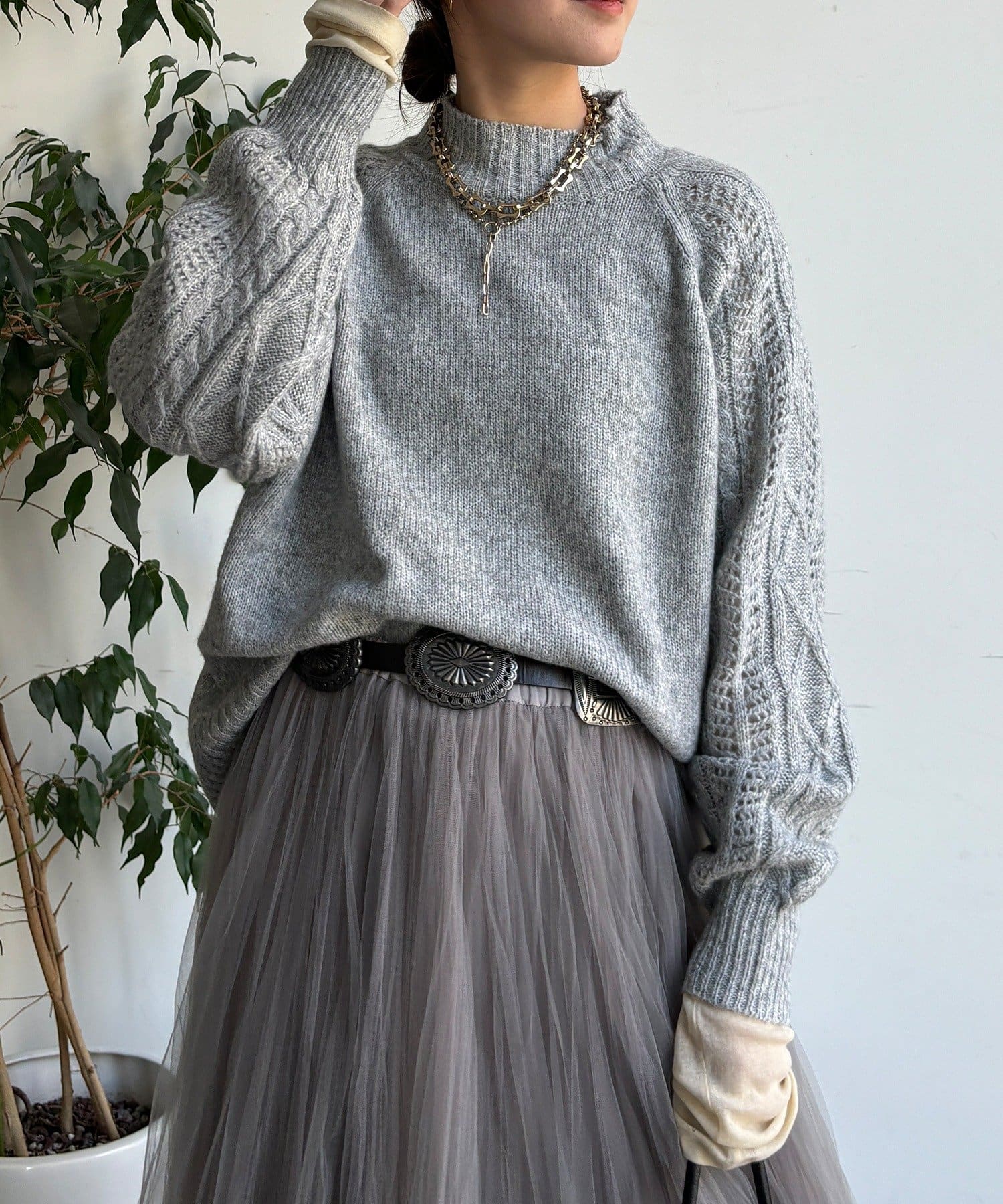 袖に立体感のあるケーブル編みと、程よく抜け感を生む