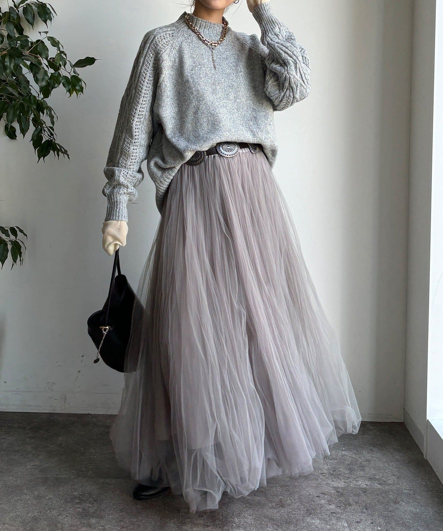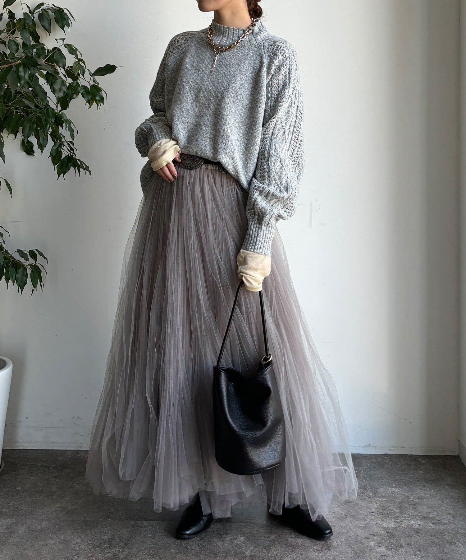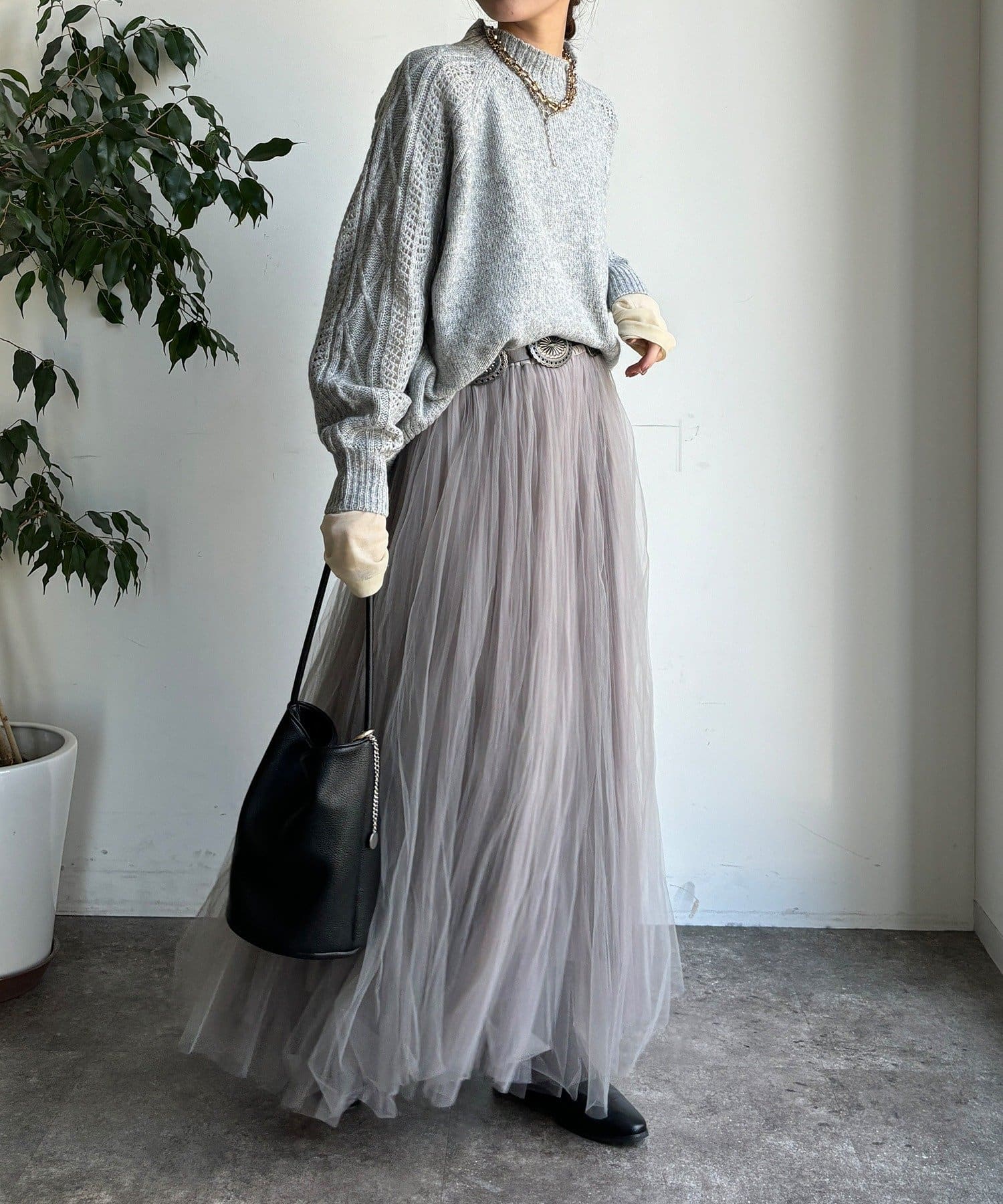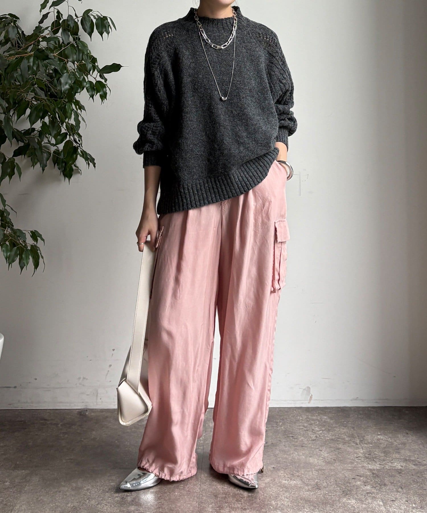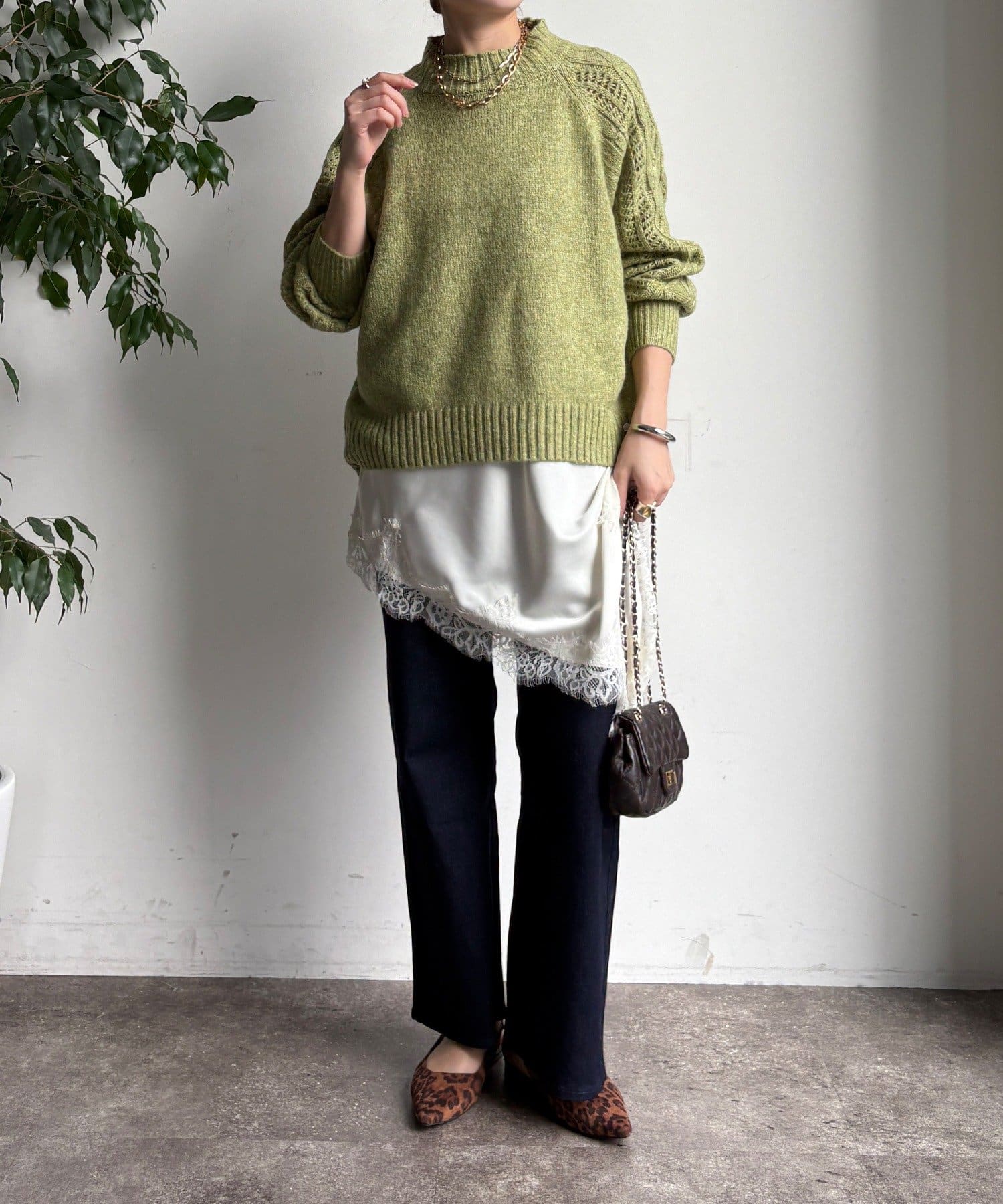 袖に立体感のあるケーブル編みと、程よく抜け感を生む