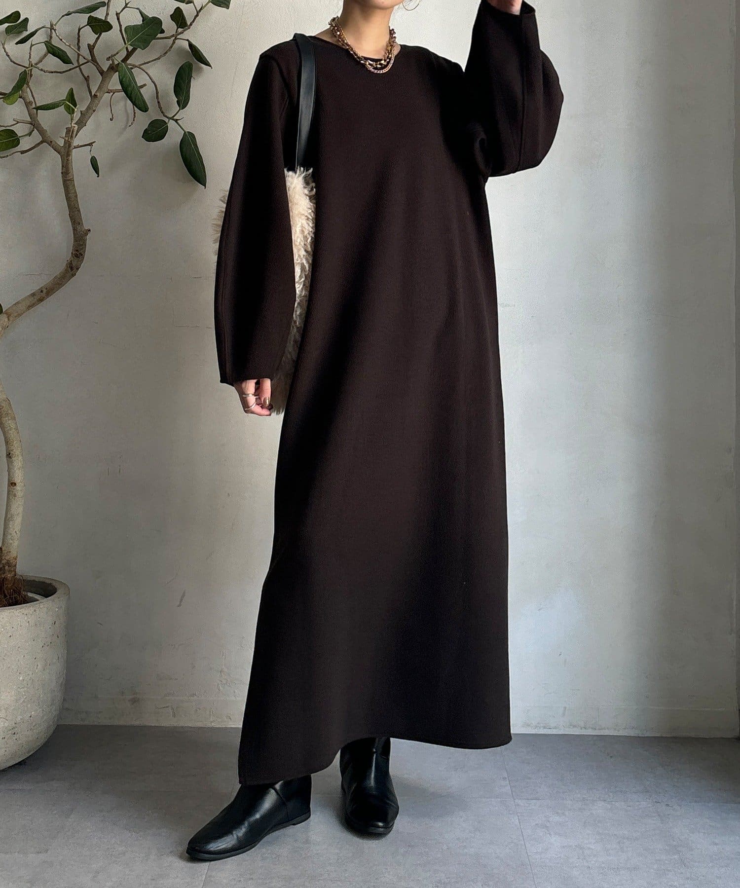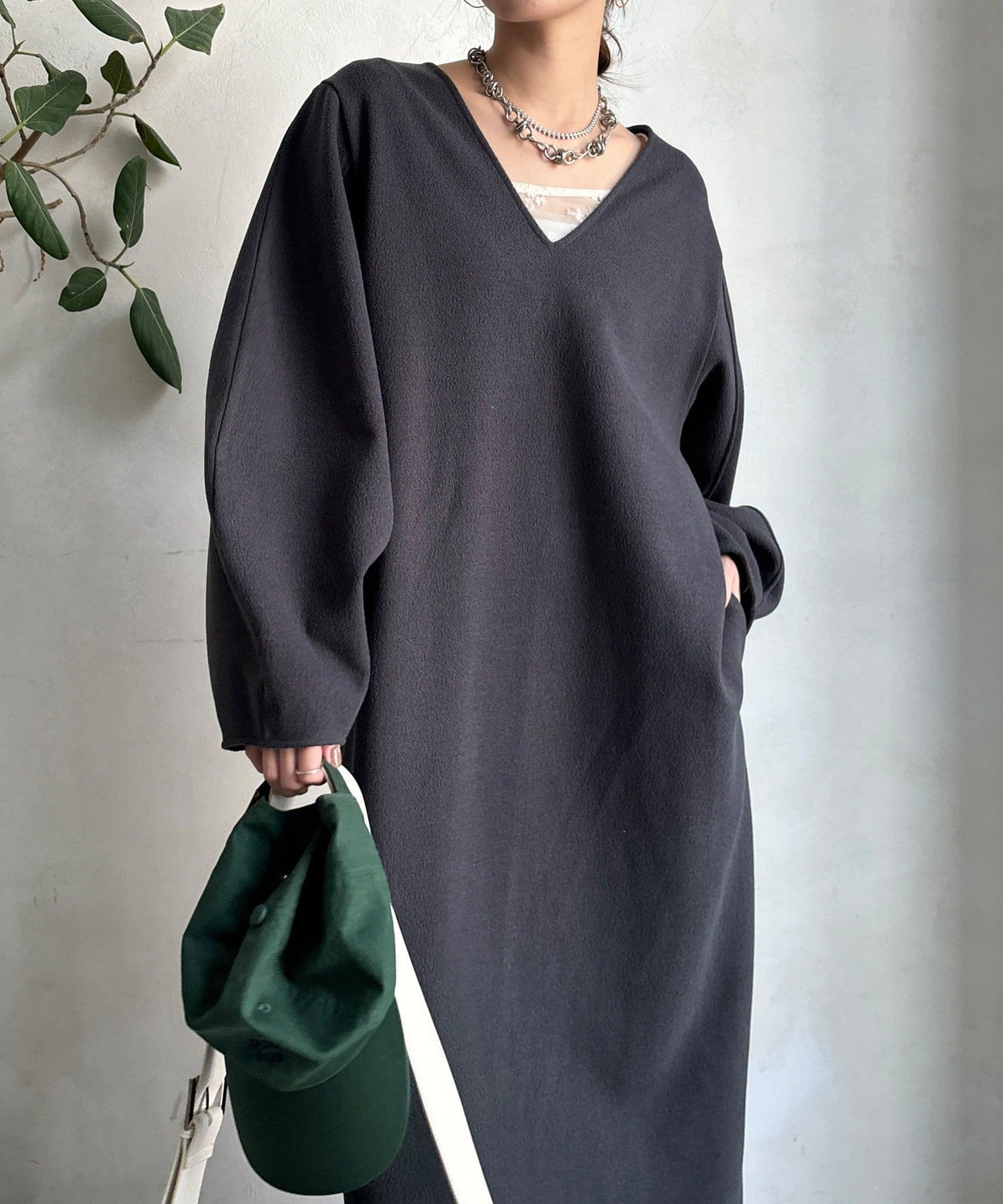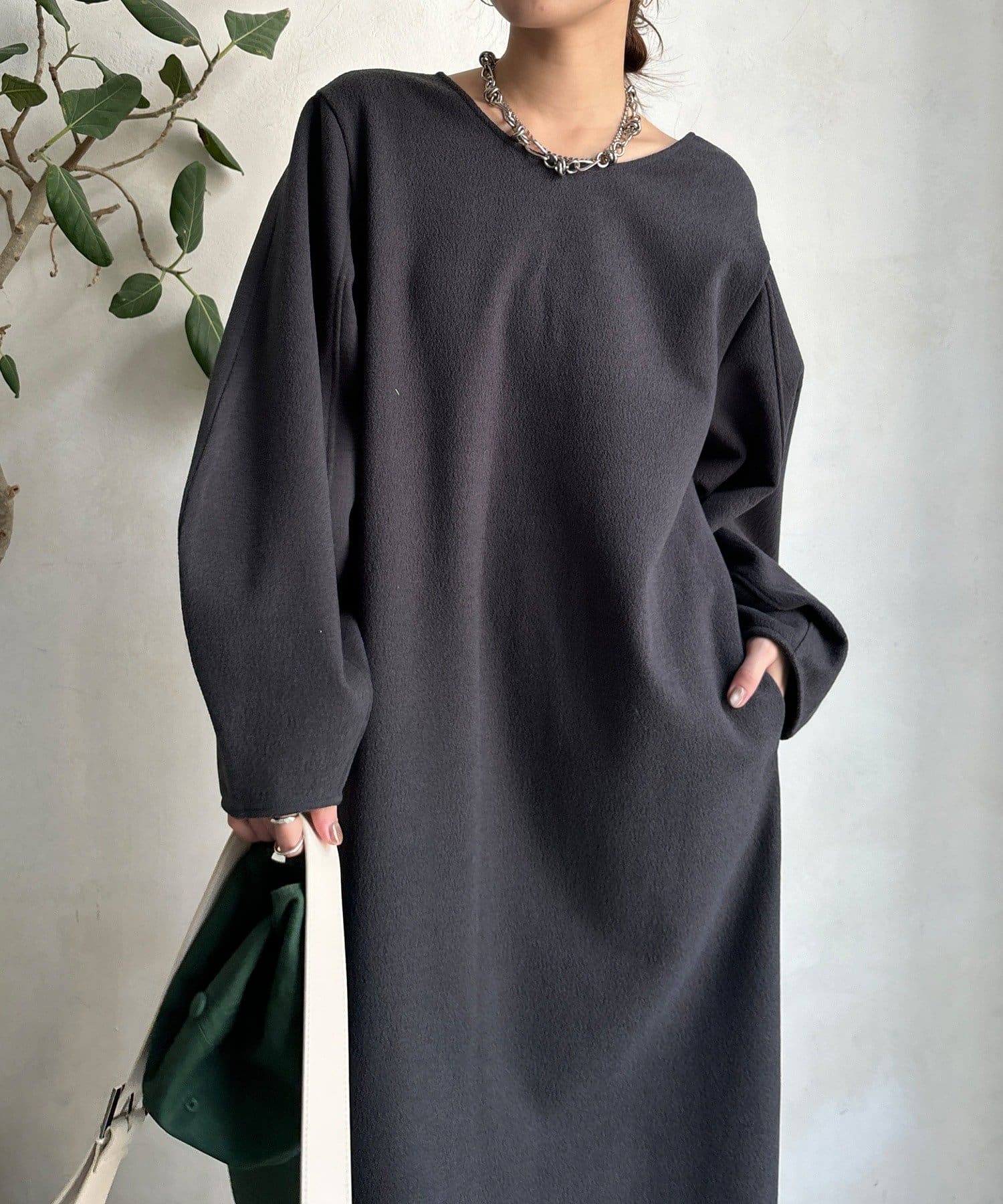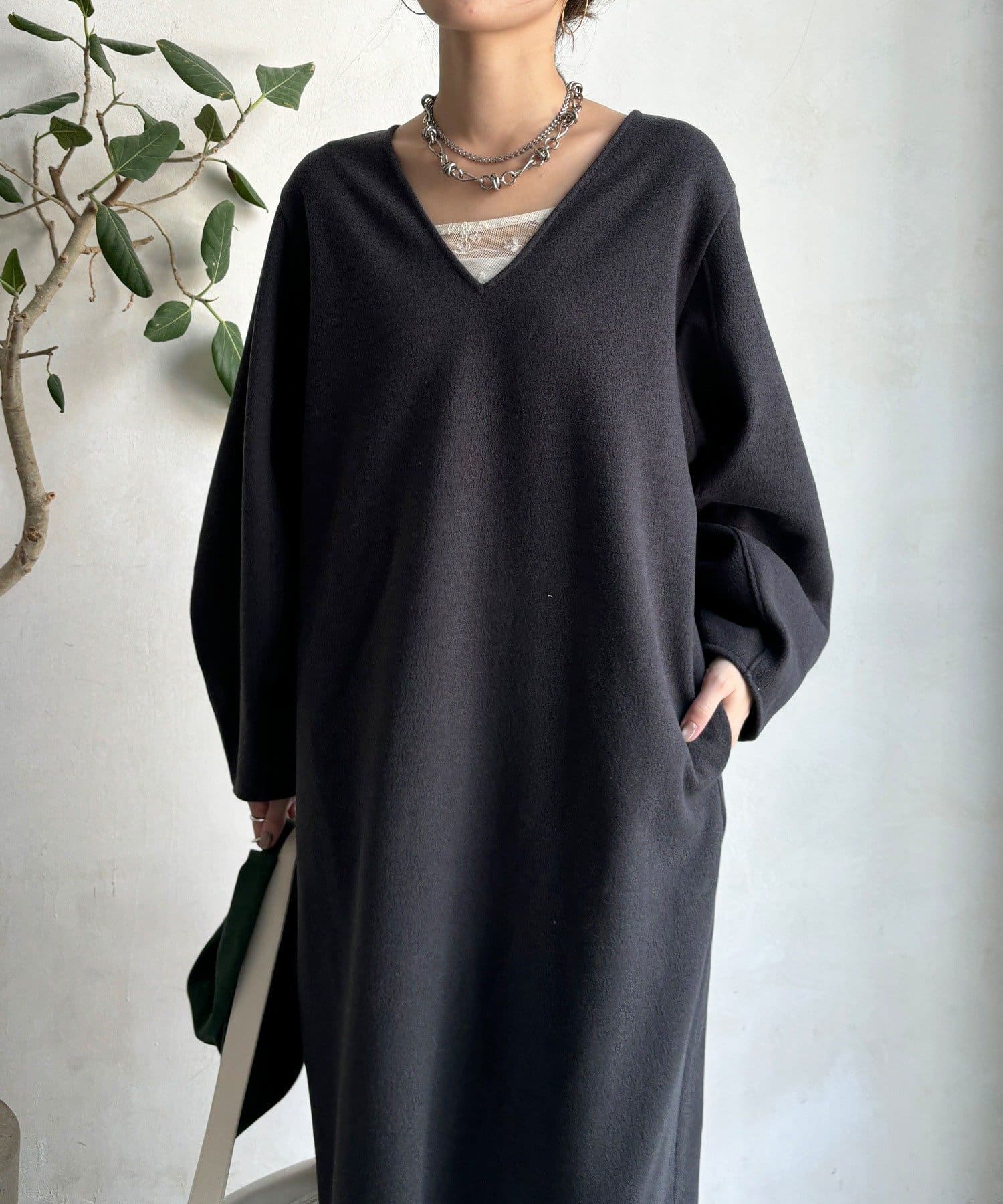 ふんわりと暖かな裏起毛素材を使用した、1枚でスタイリングが完成するロングワンピース。