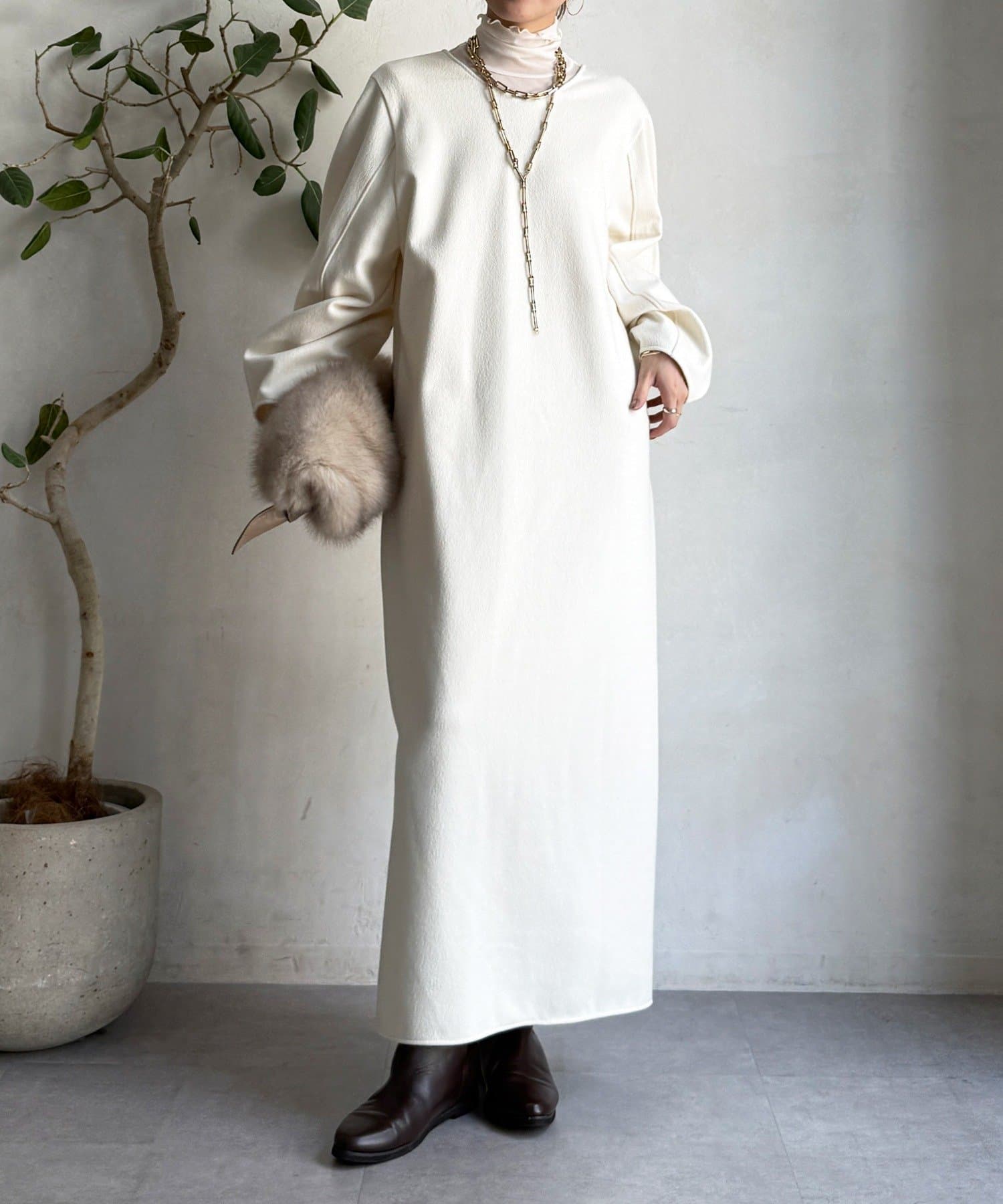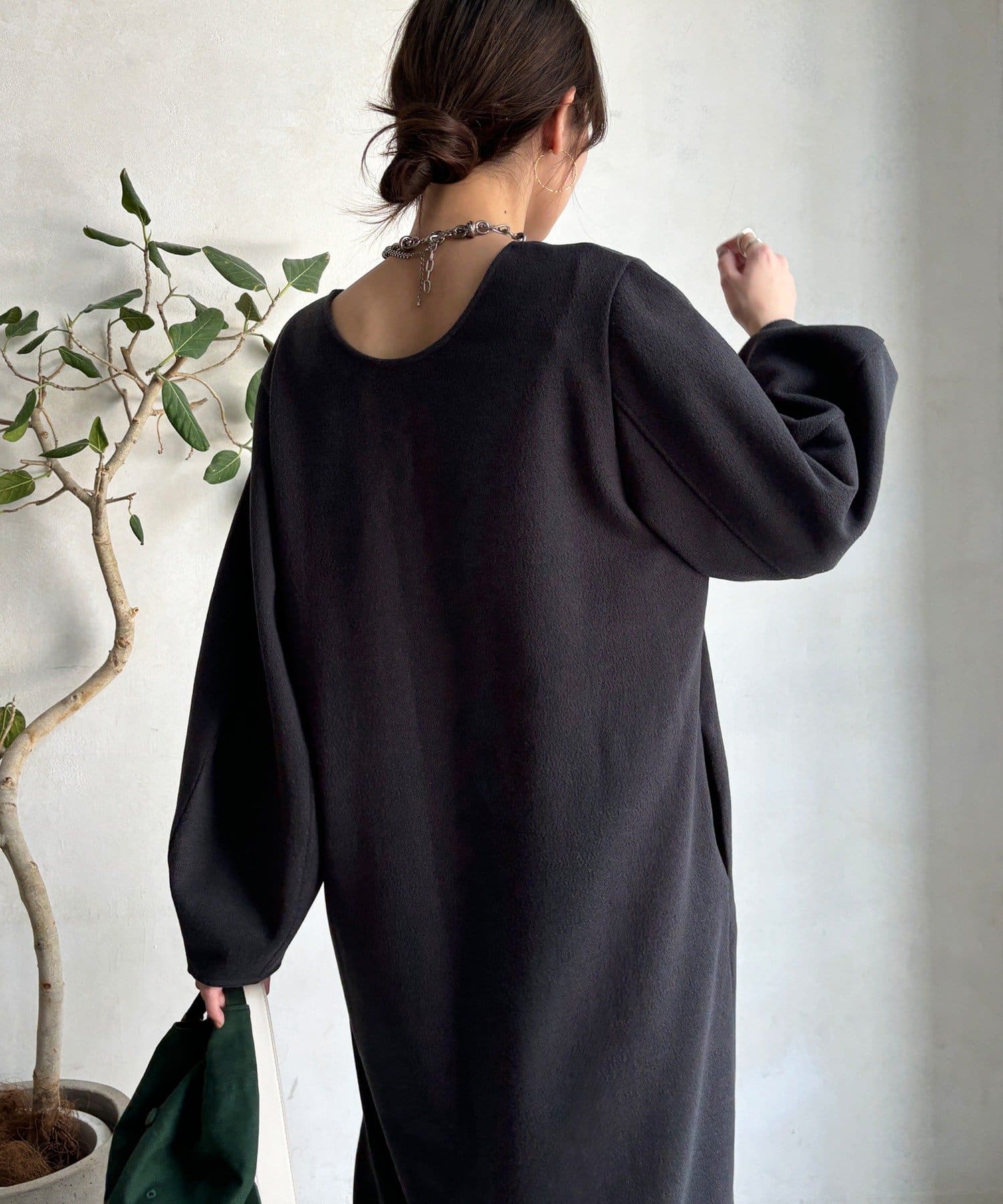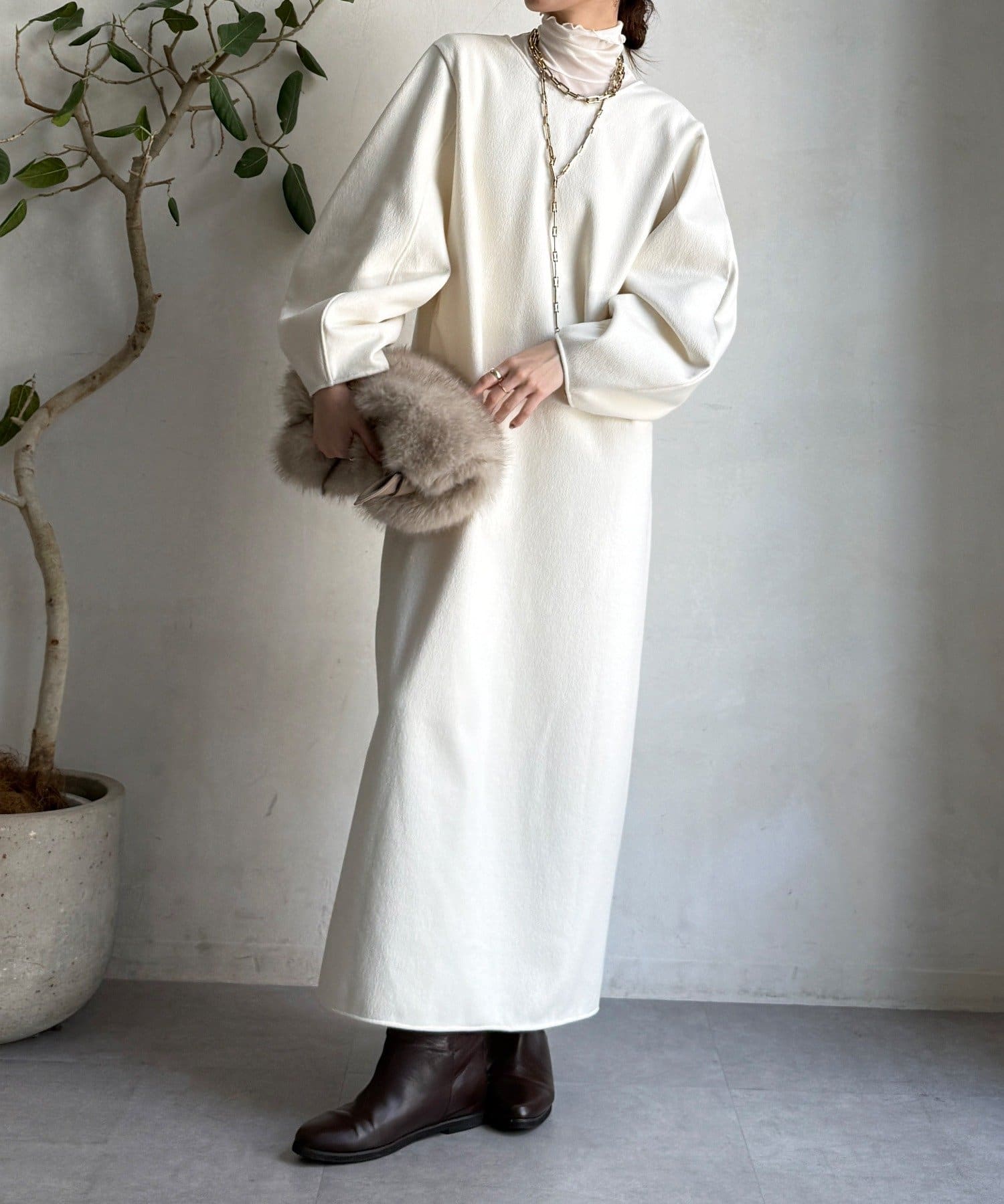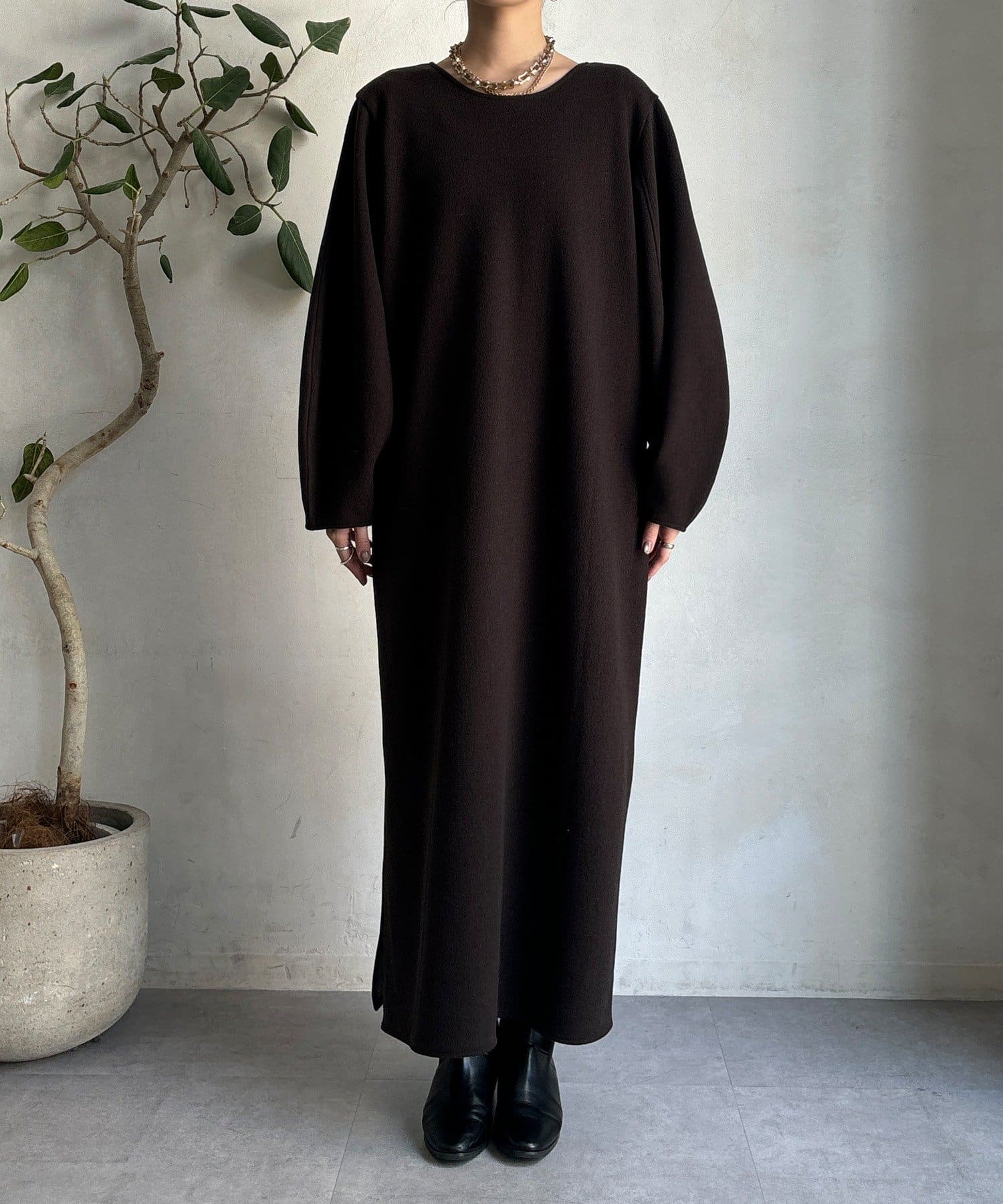 ふんわりと暖かな裏起毛素材を使用した、1枚でスタイリングが完成するロングワンピース。