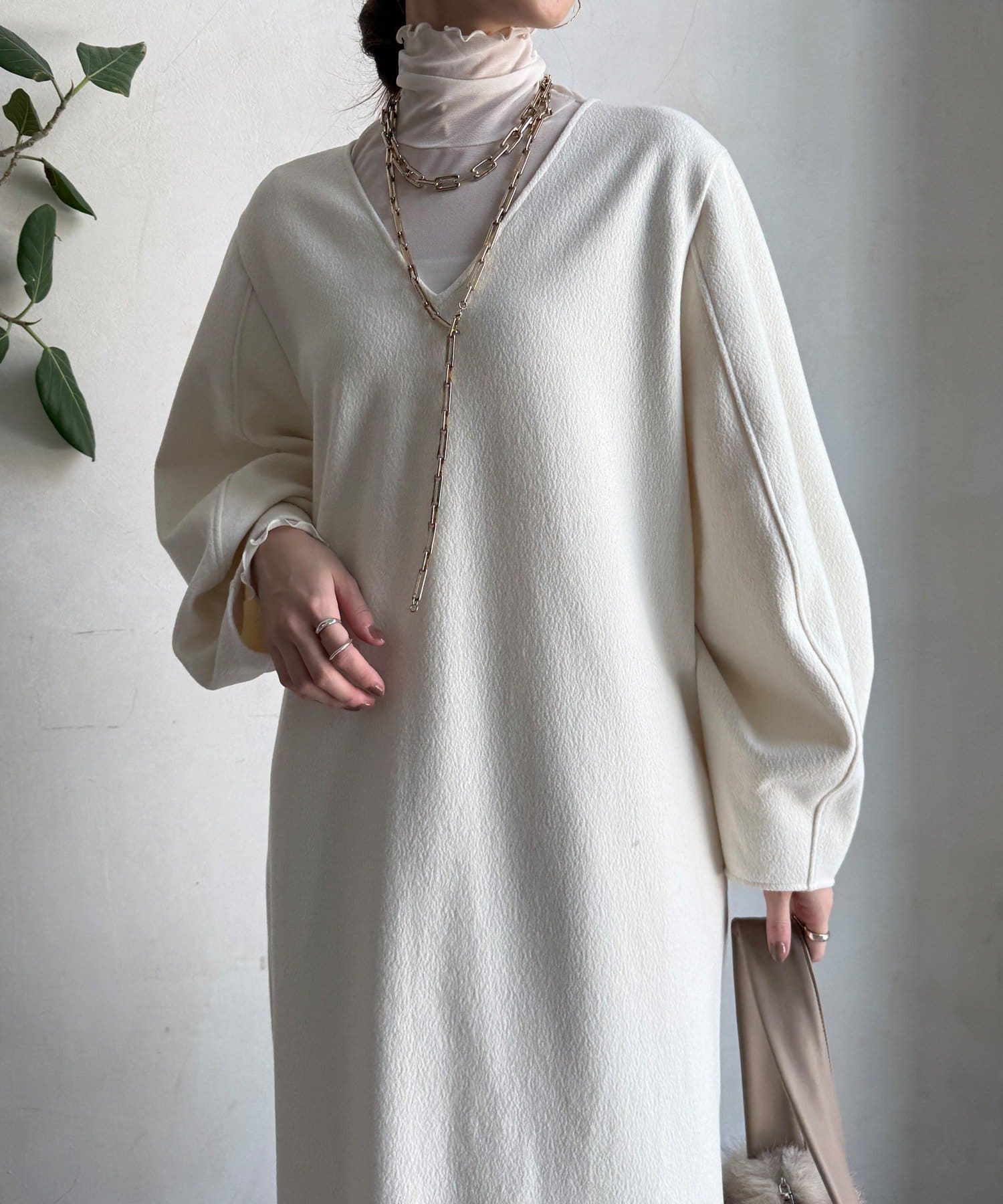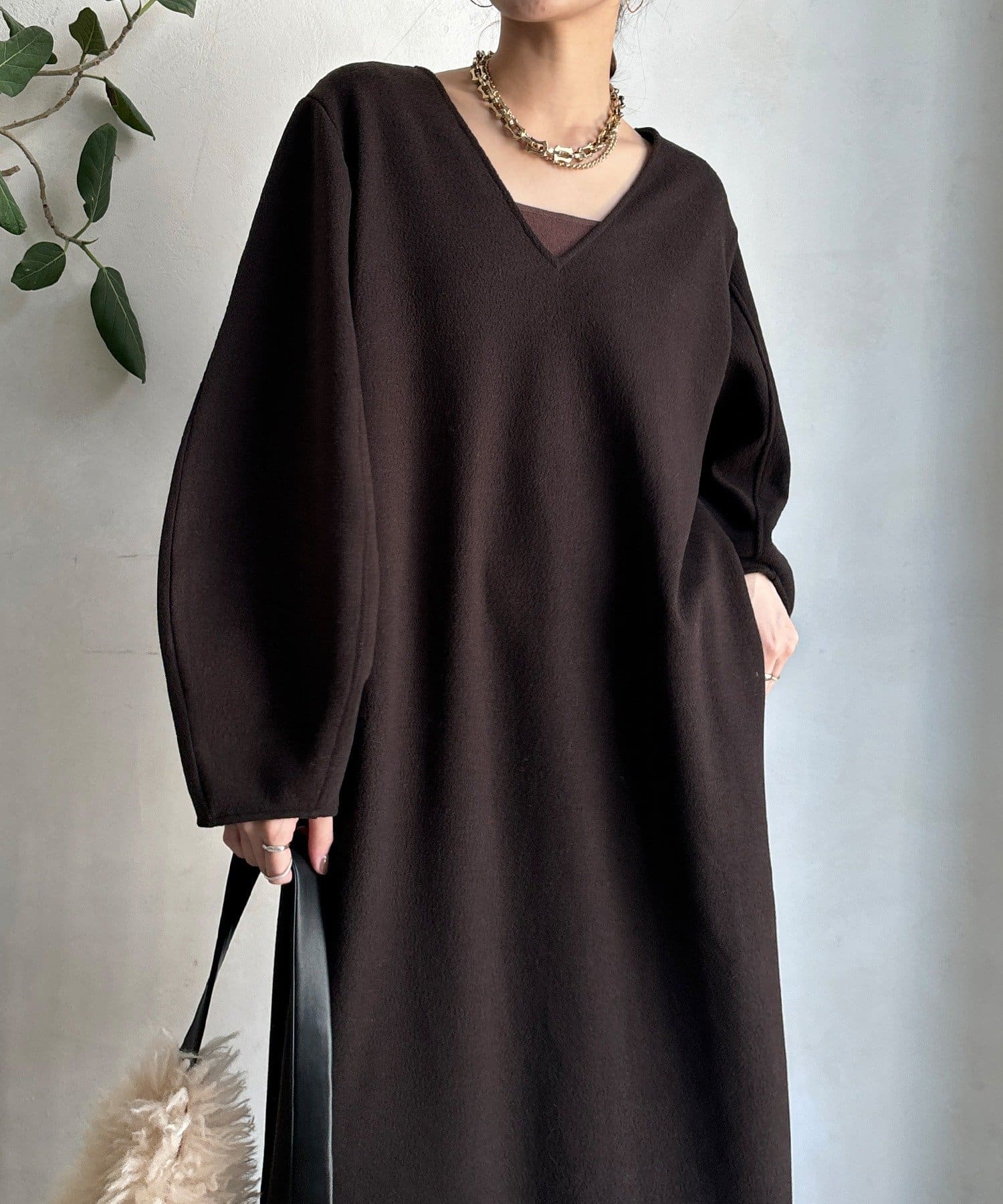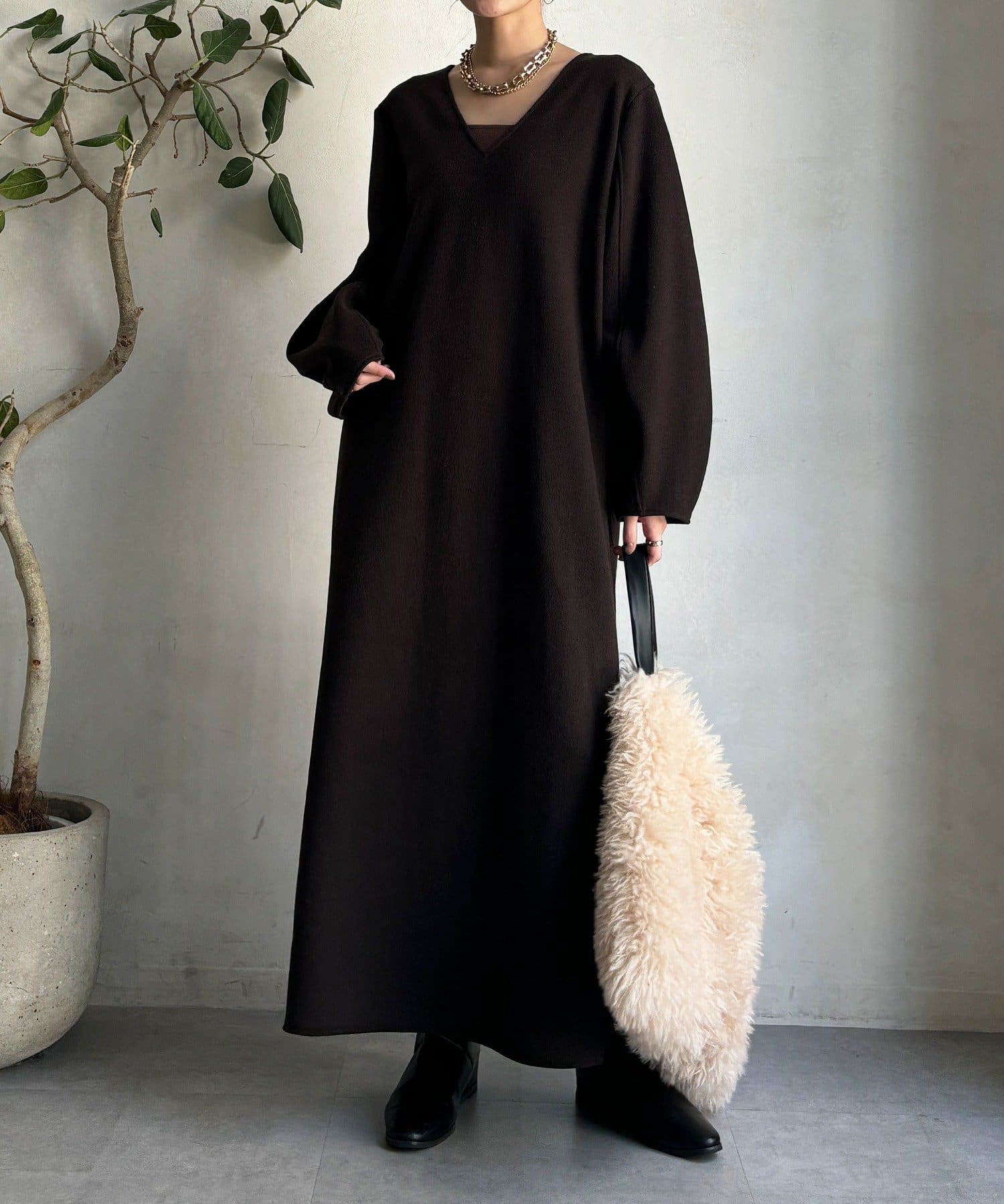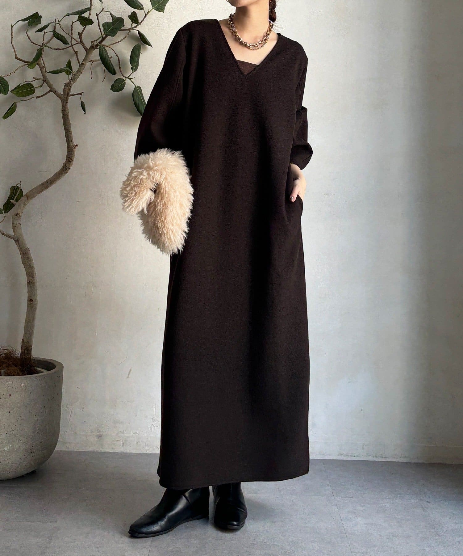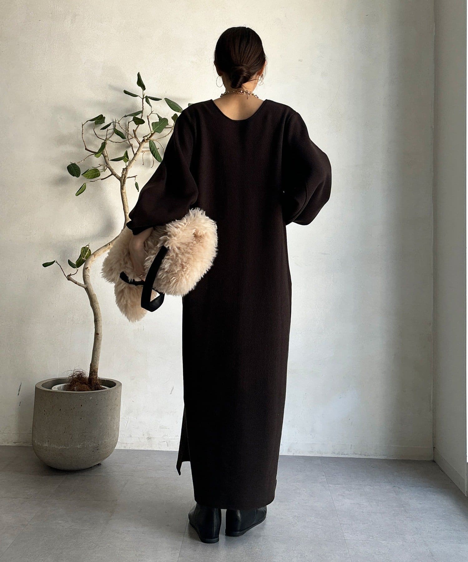 ふんわりと暖かな裏起毛素材を使用した、1枚でスタイリングが完成するロングワンピース。