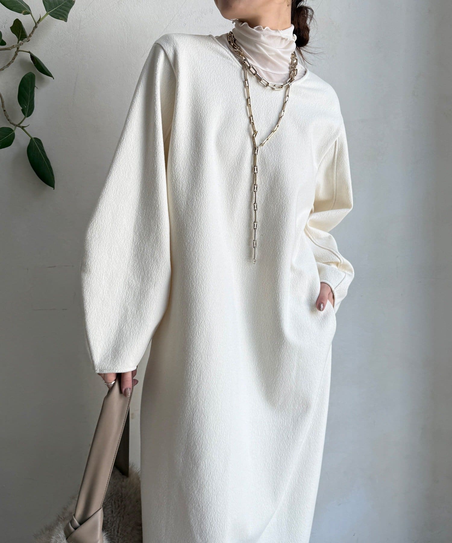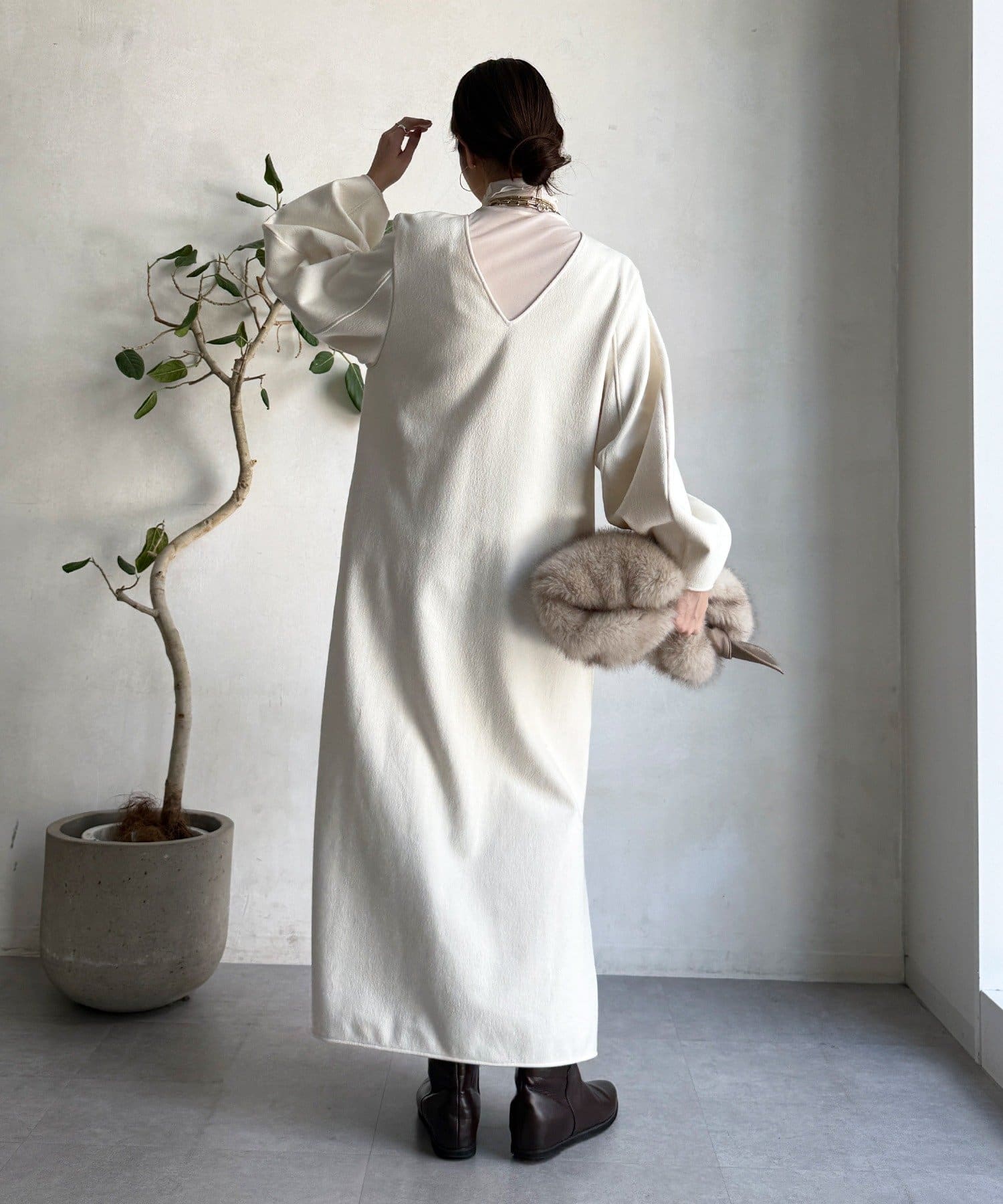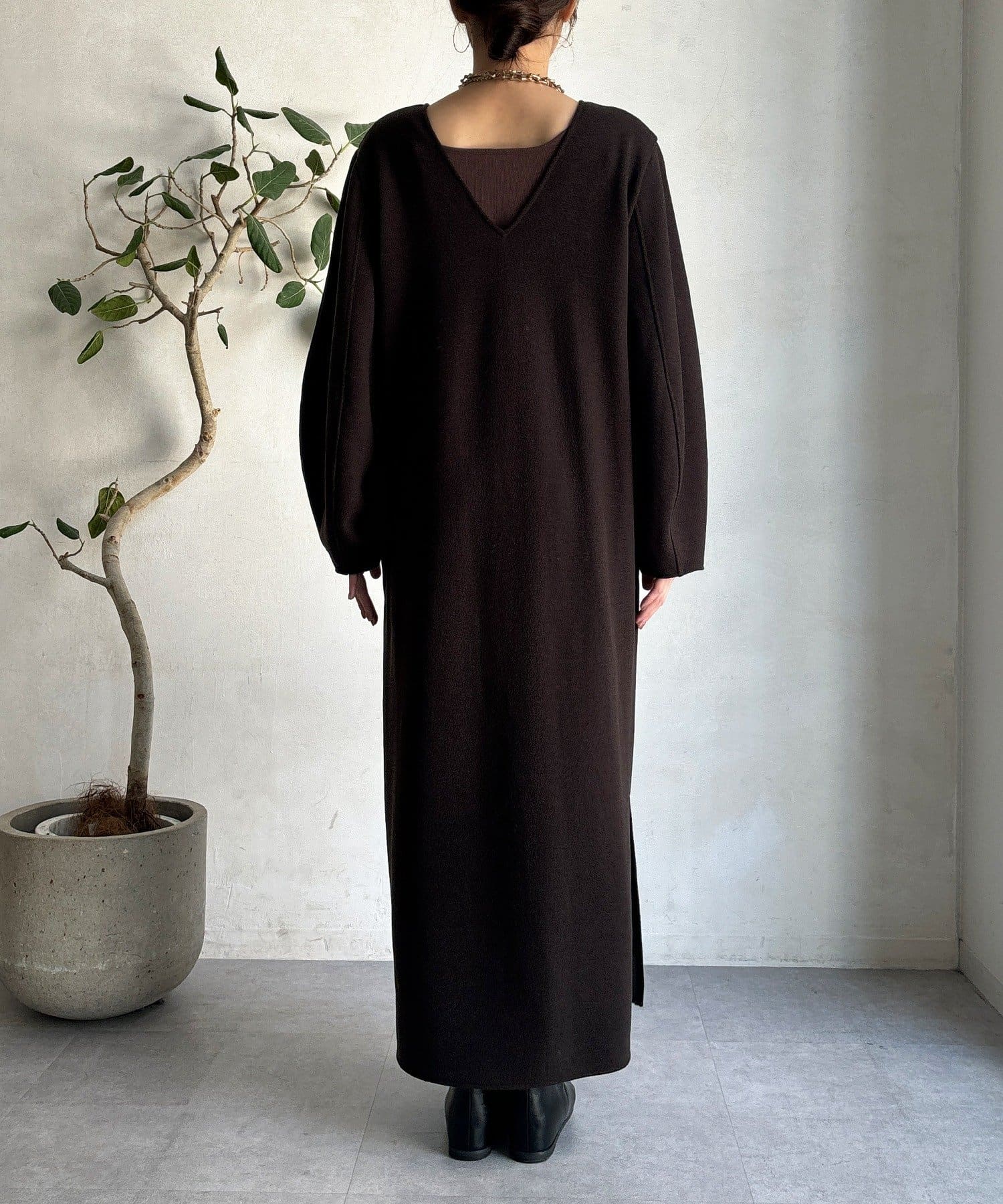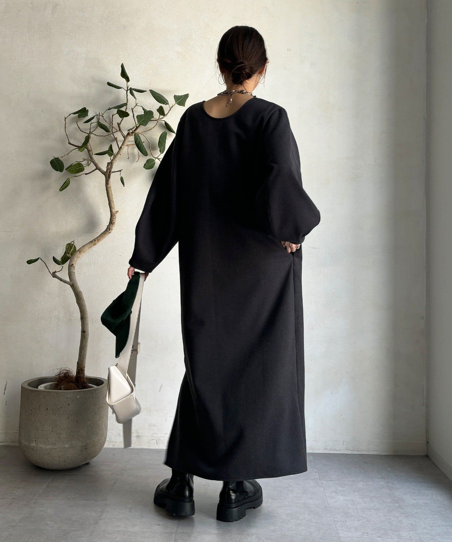 ふんわりと暖かな裏起毛素材を使用した、1枚でスタイリングが完成するロングワンピース。