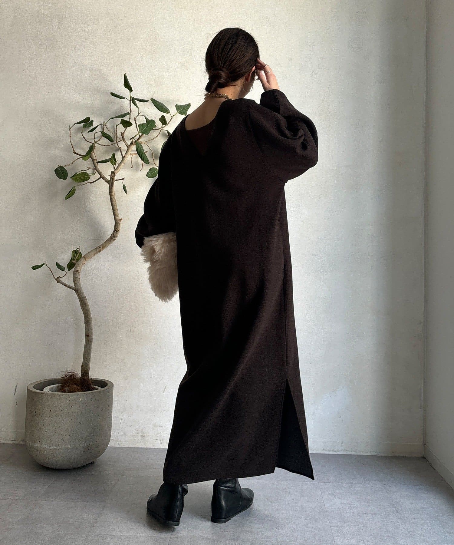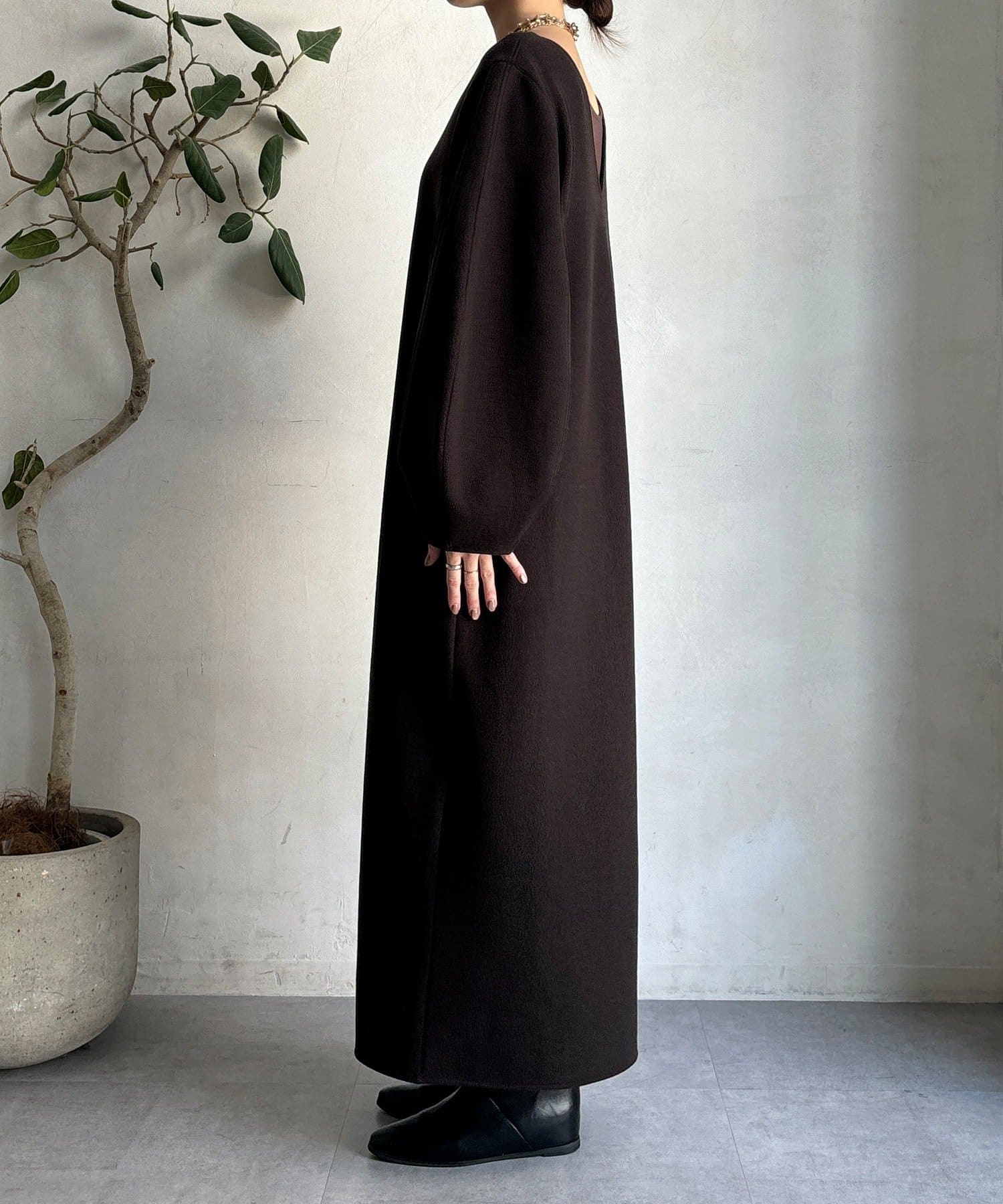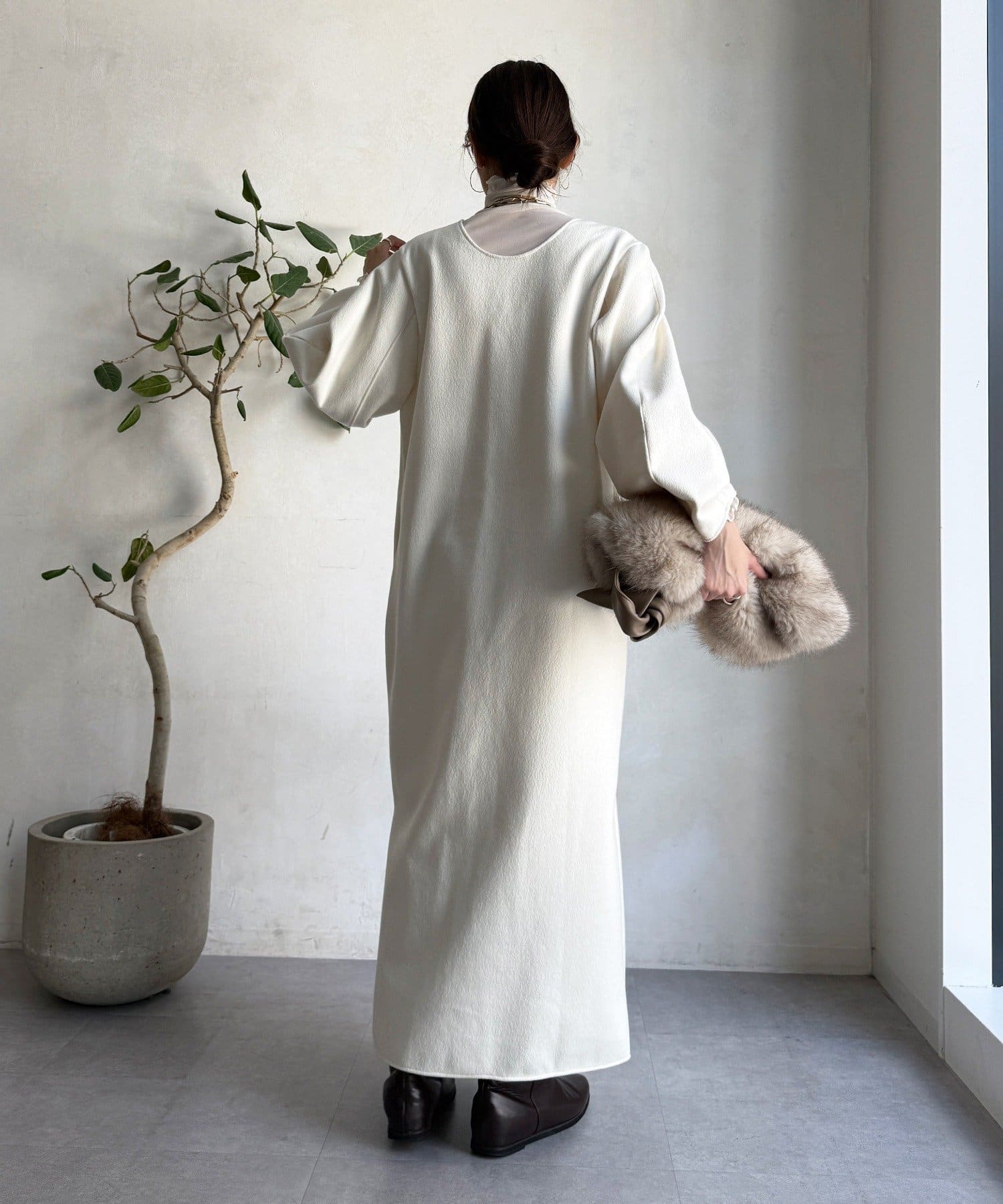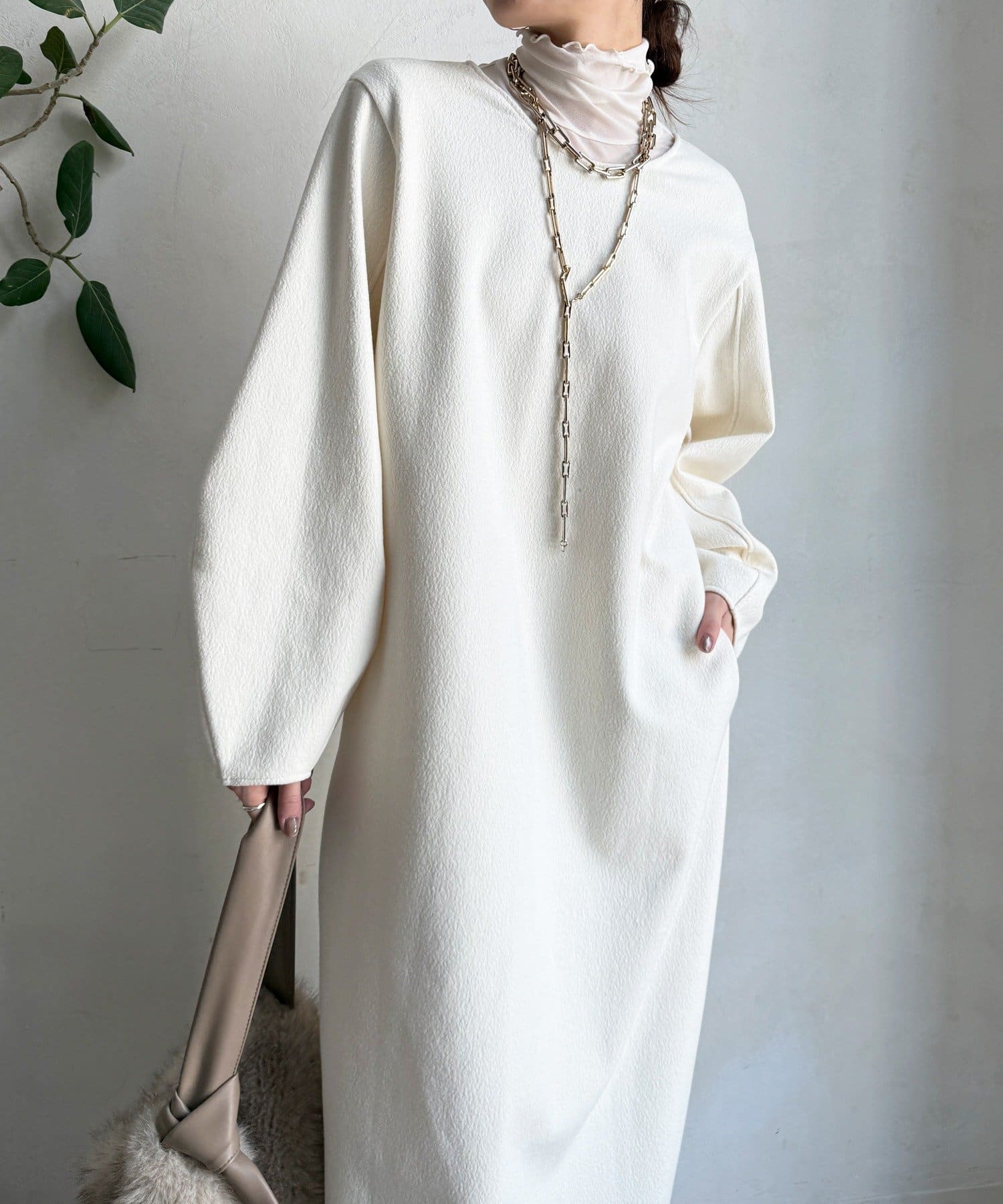 ふんわりと暖かな裏起毛素材を使用した、1枚でスタイリングが完成するロングワンピース。