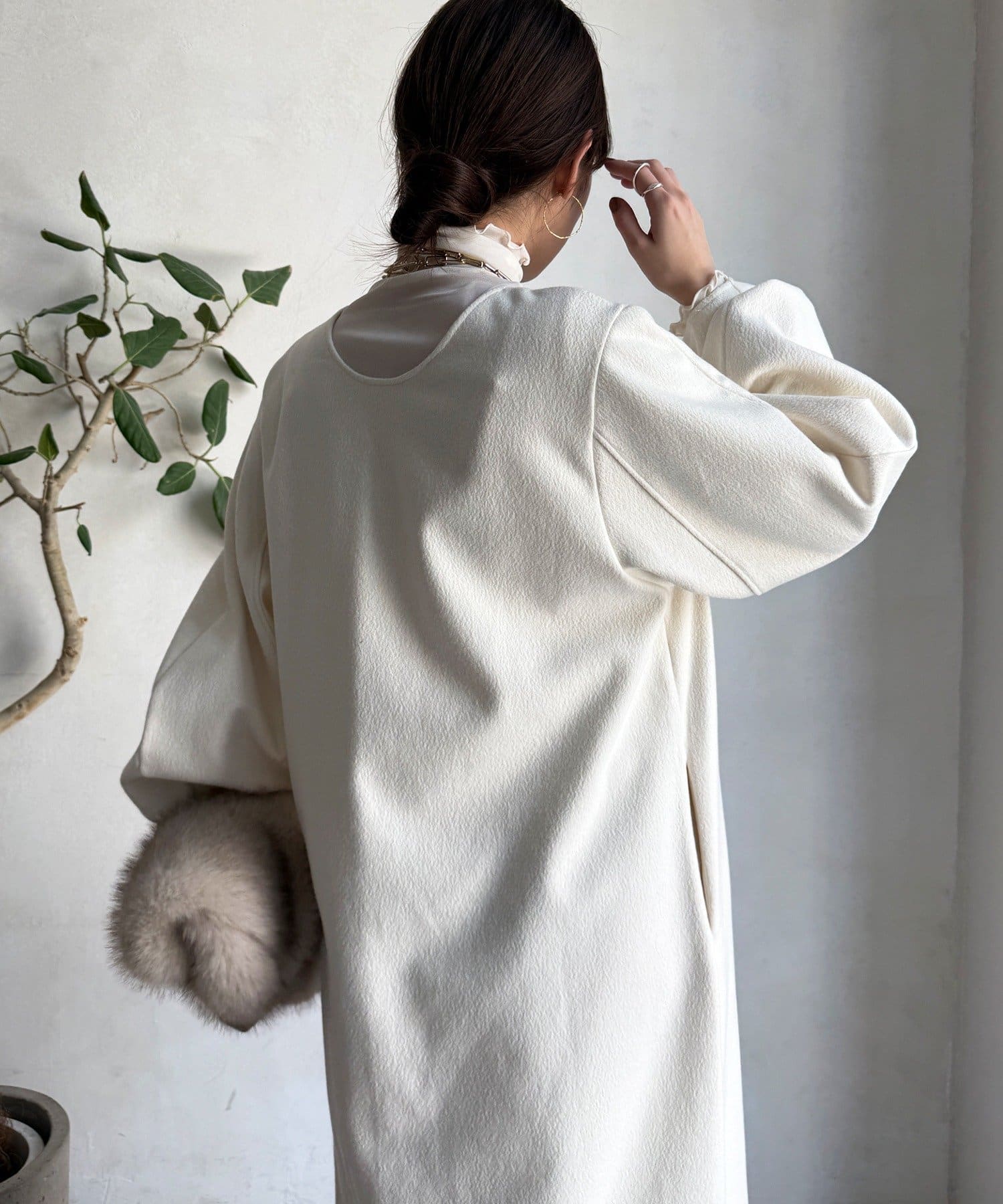 デザインのポイントは前後2WAYで着られるネックラインと、お袖のボリューム感。
