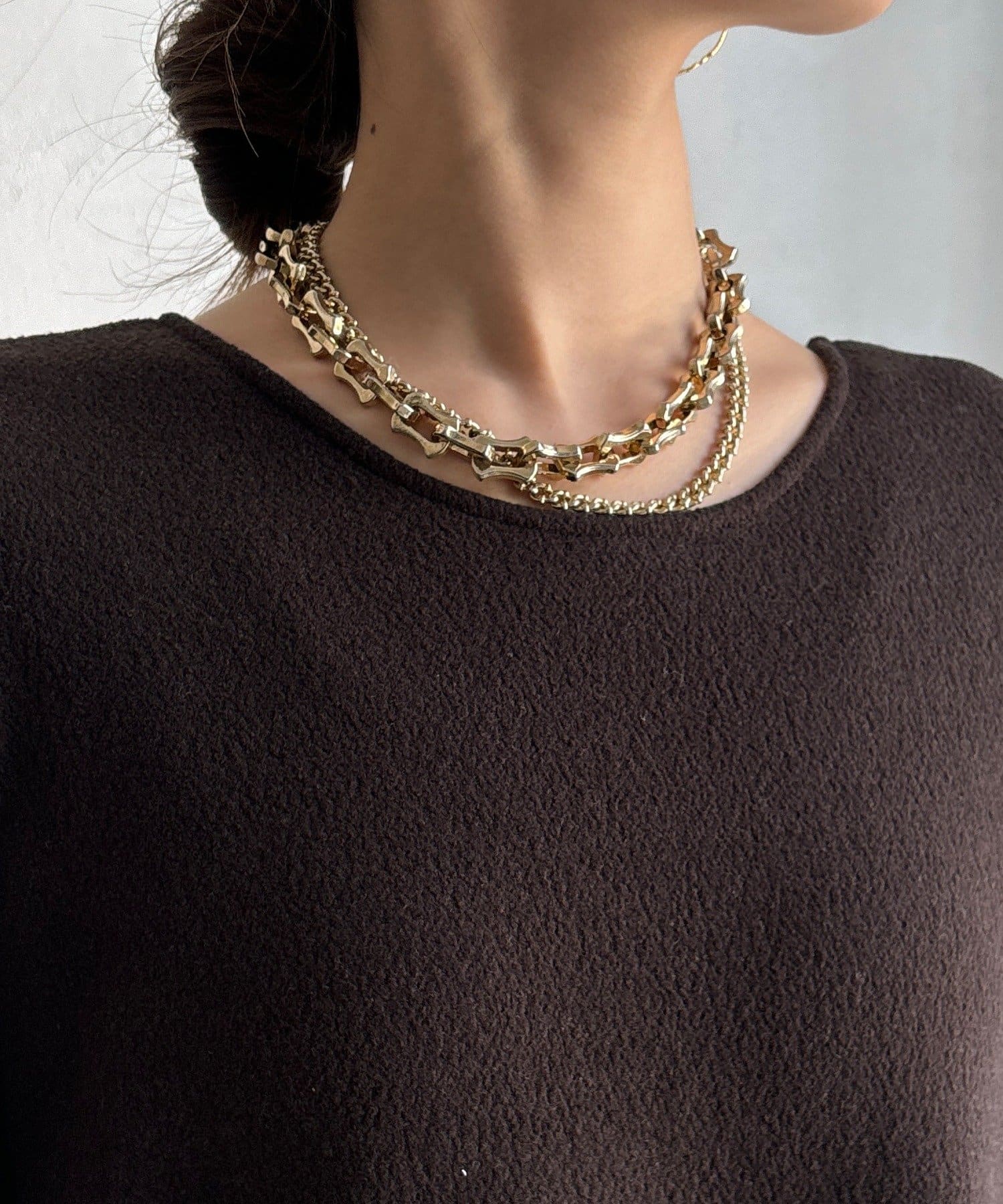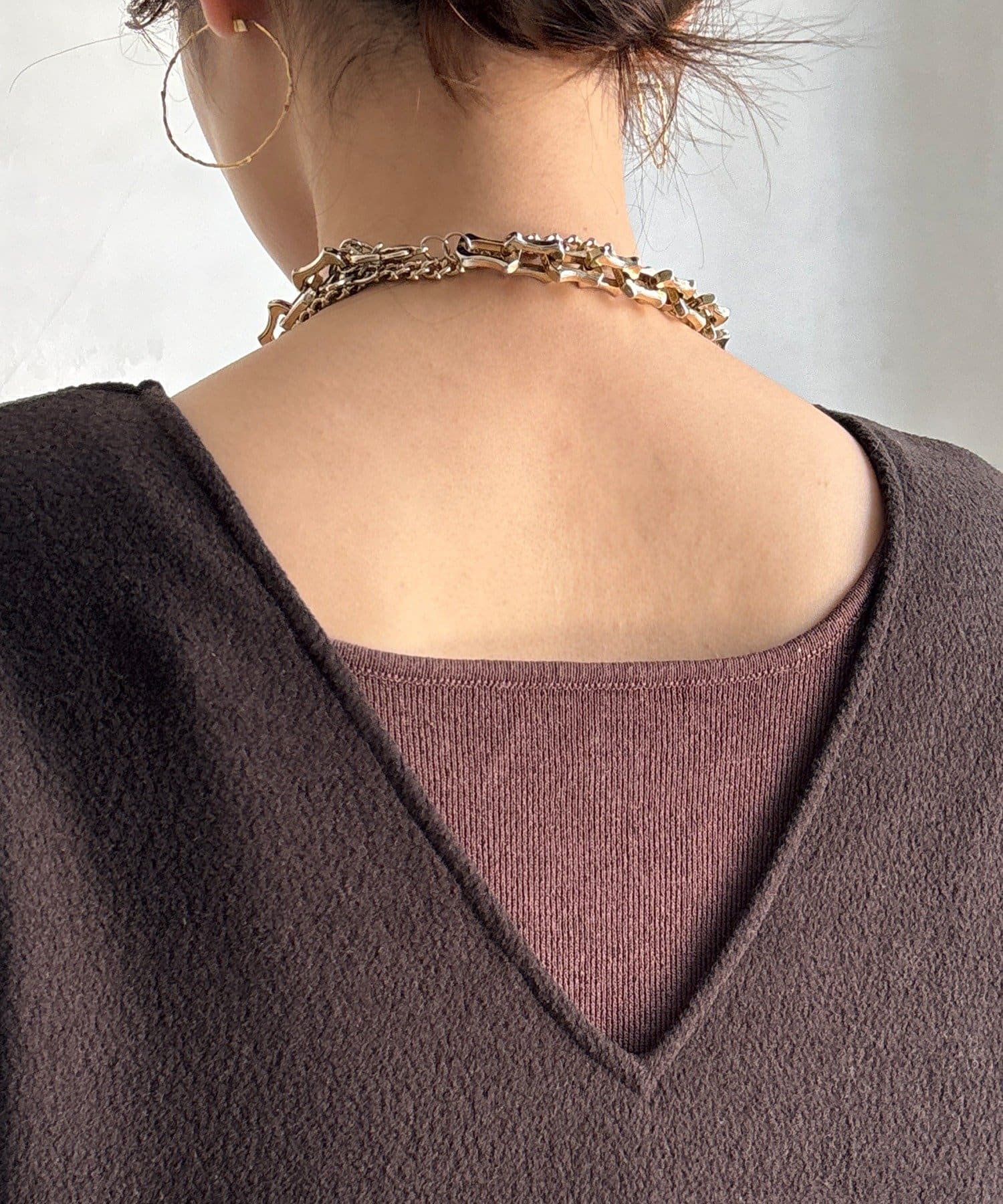 クルーネックとVネックの仕様にすることで、その日の気分やレイヤードするインナーに合わせて印象を変えていただけます。