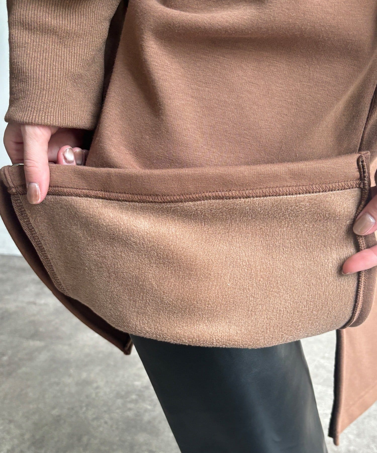 ふっくらとした裏毛素材の内側に裏起毛を施し、やさしい肌触りと高い保温性を両立します。