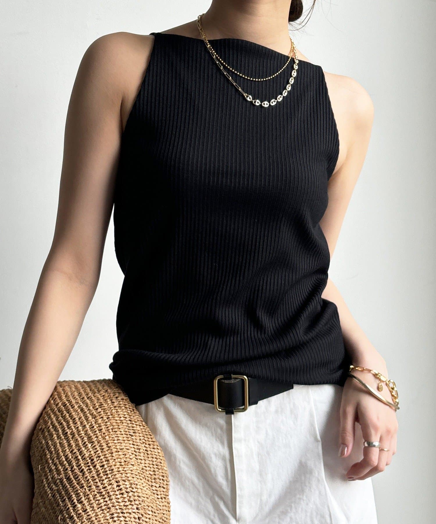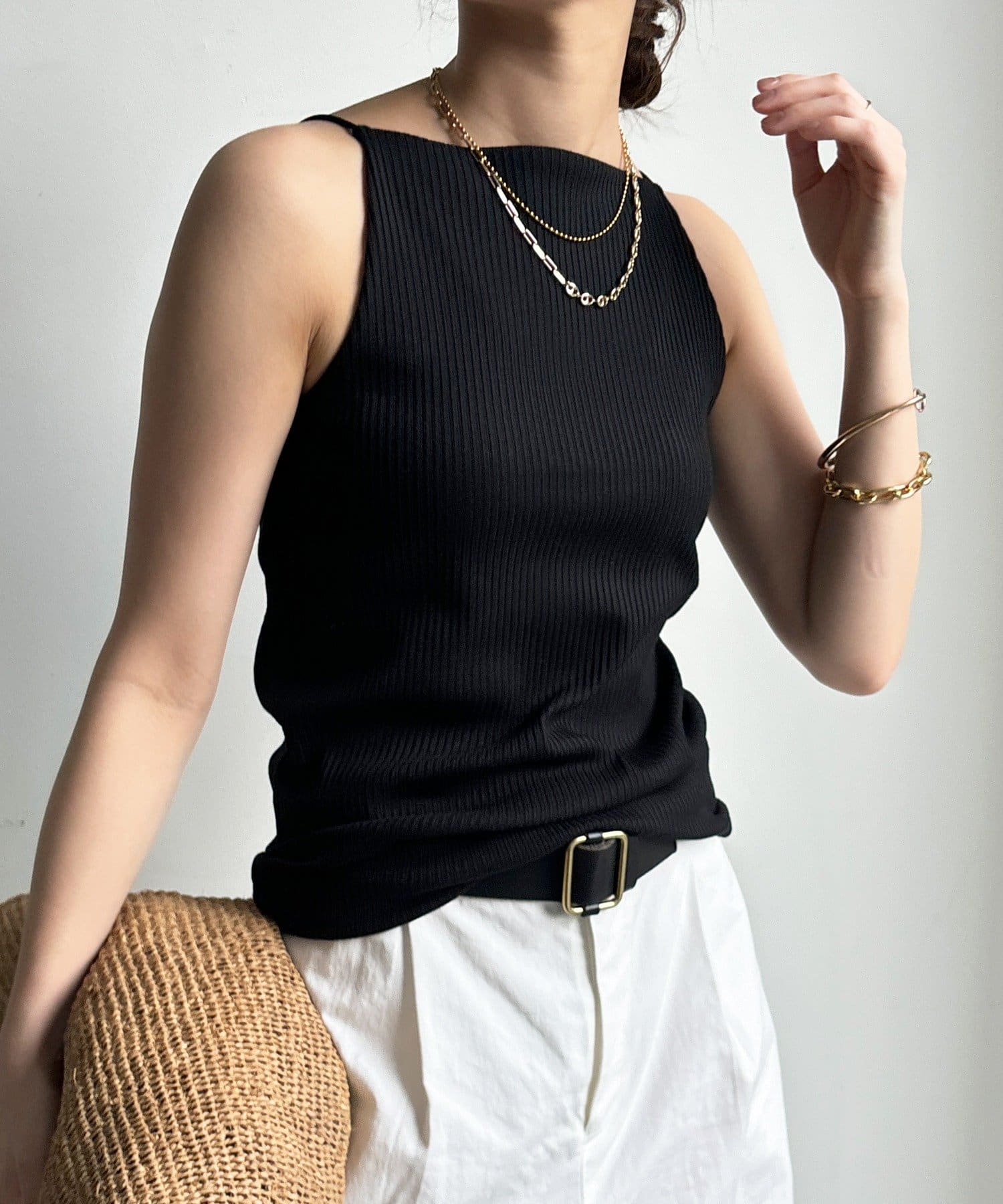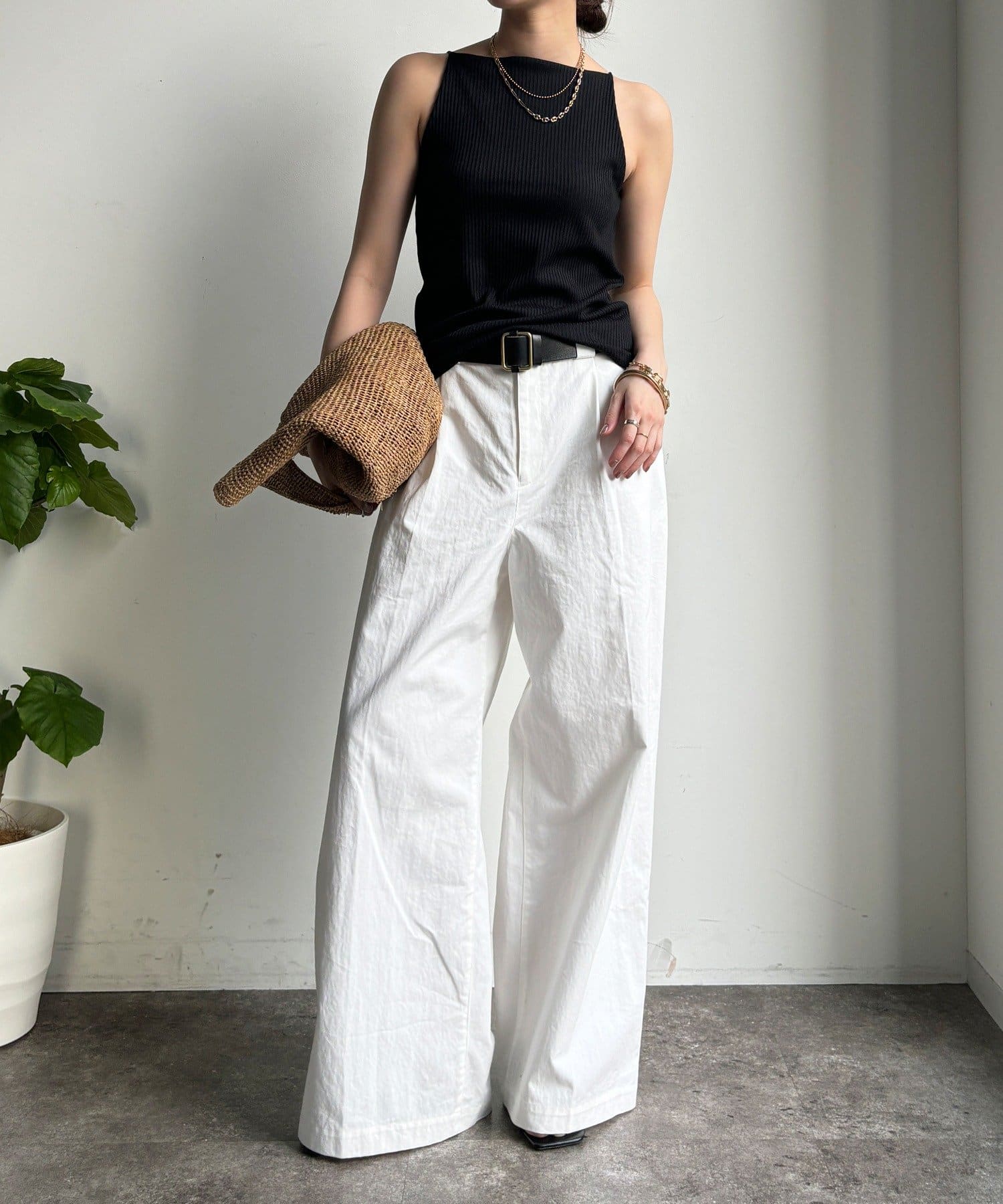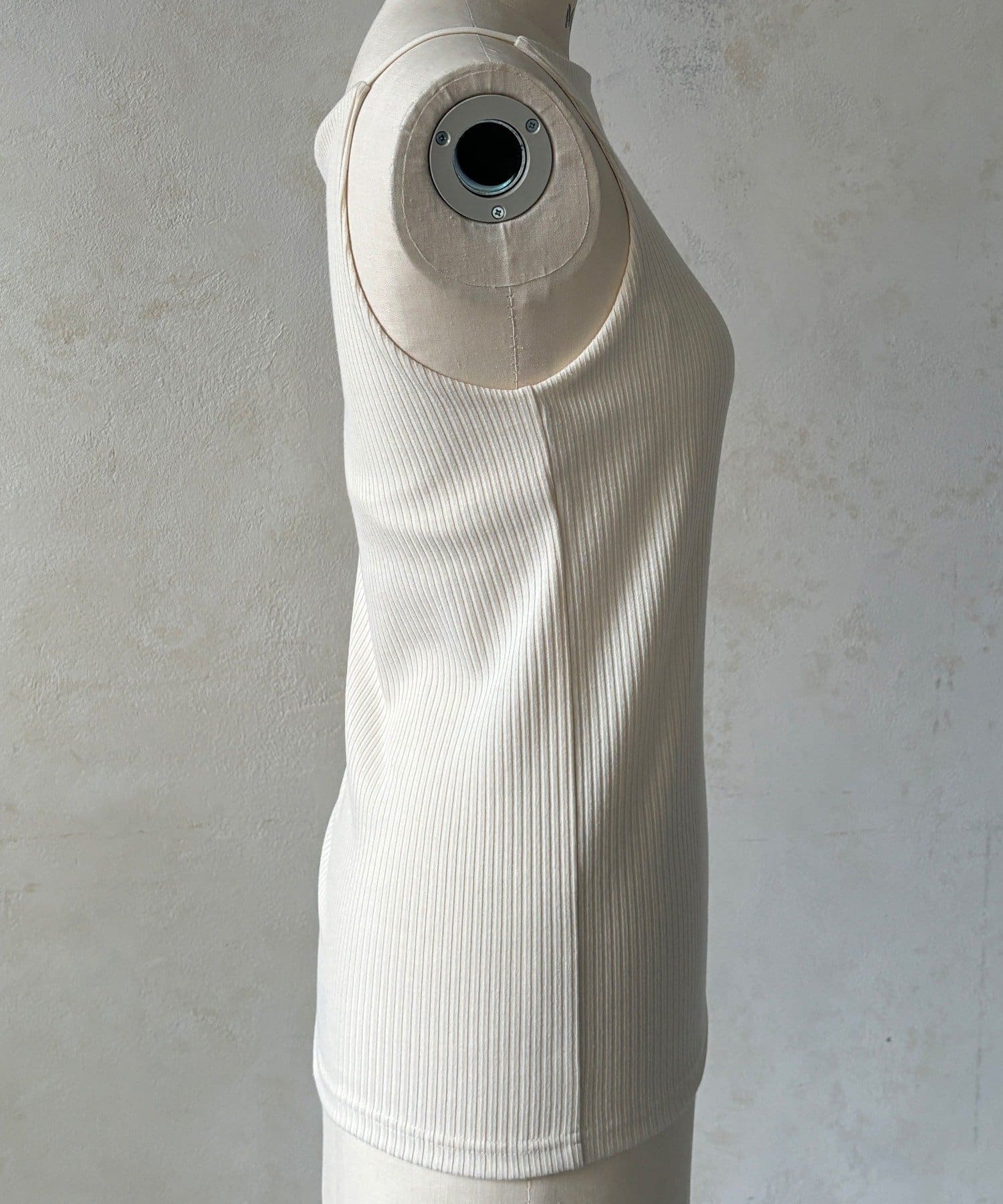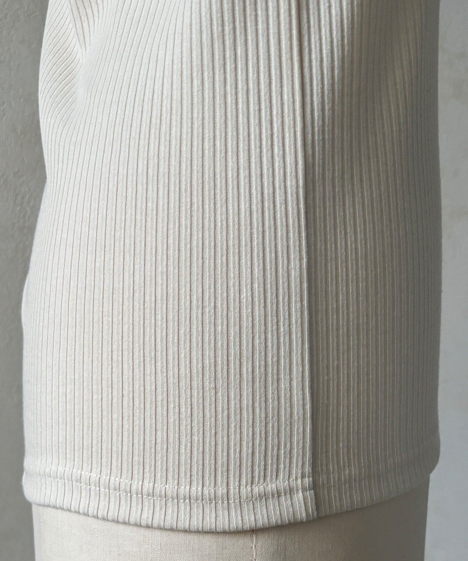 細めのリブ素材で、程よいフィット感とすっきり見えを叶える一枚。