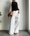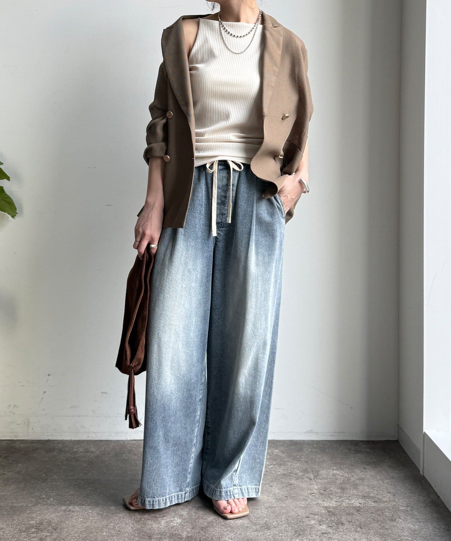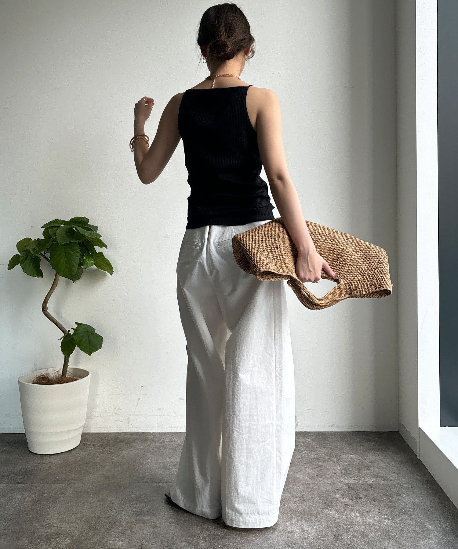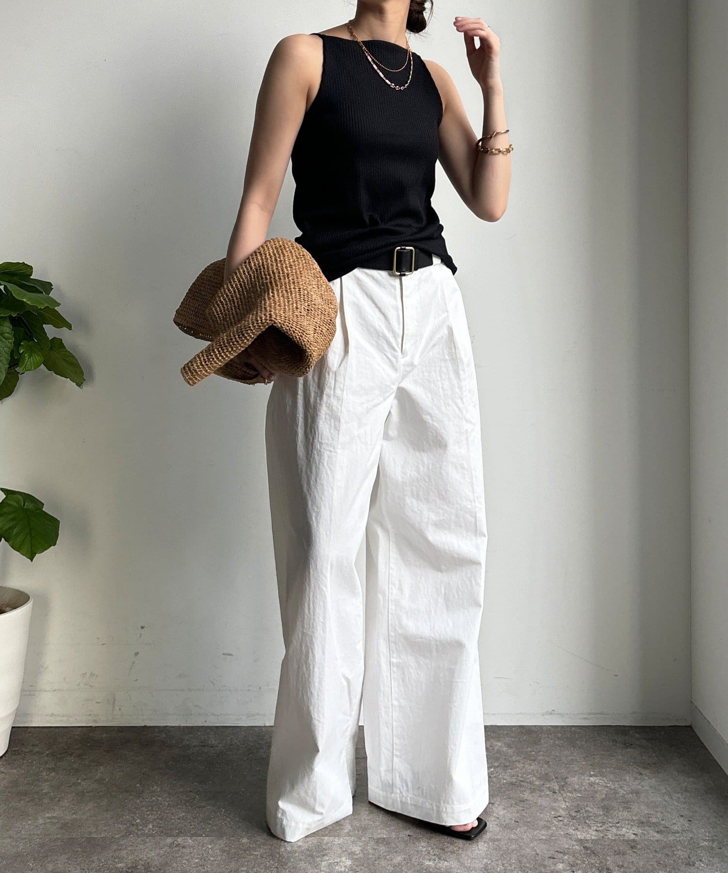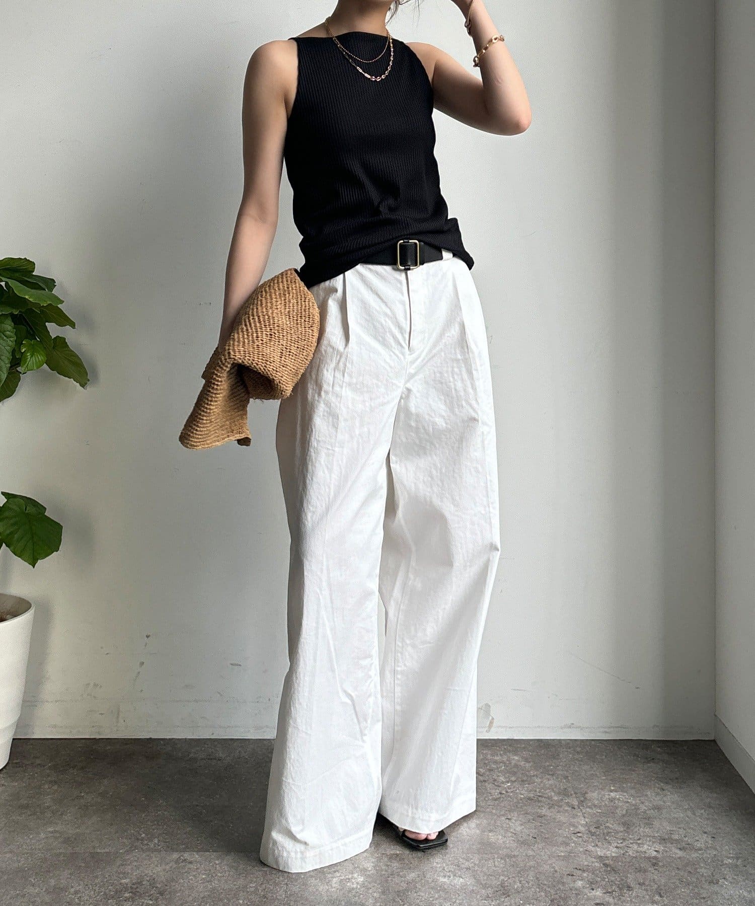 細めのリブ素材で、程よいフィット感とすっきり見えを叶える一枚。