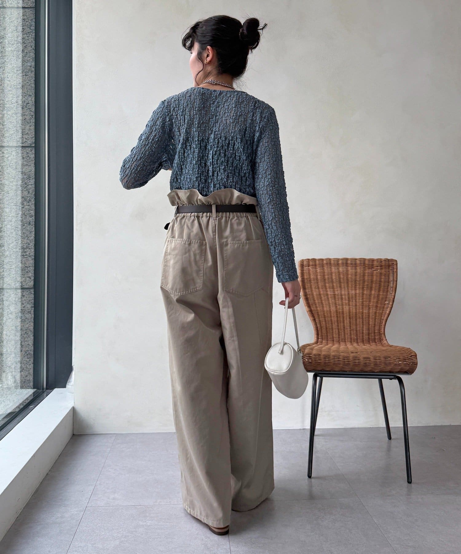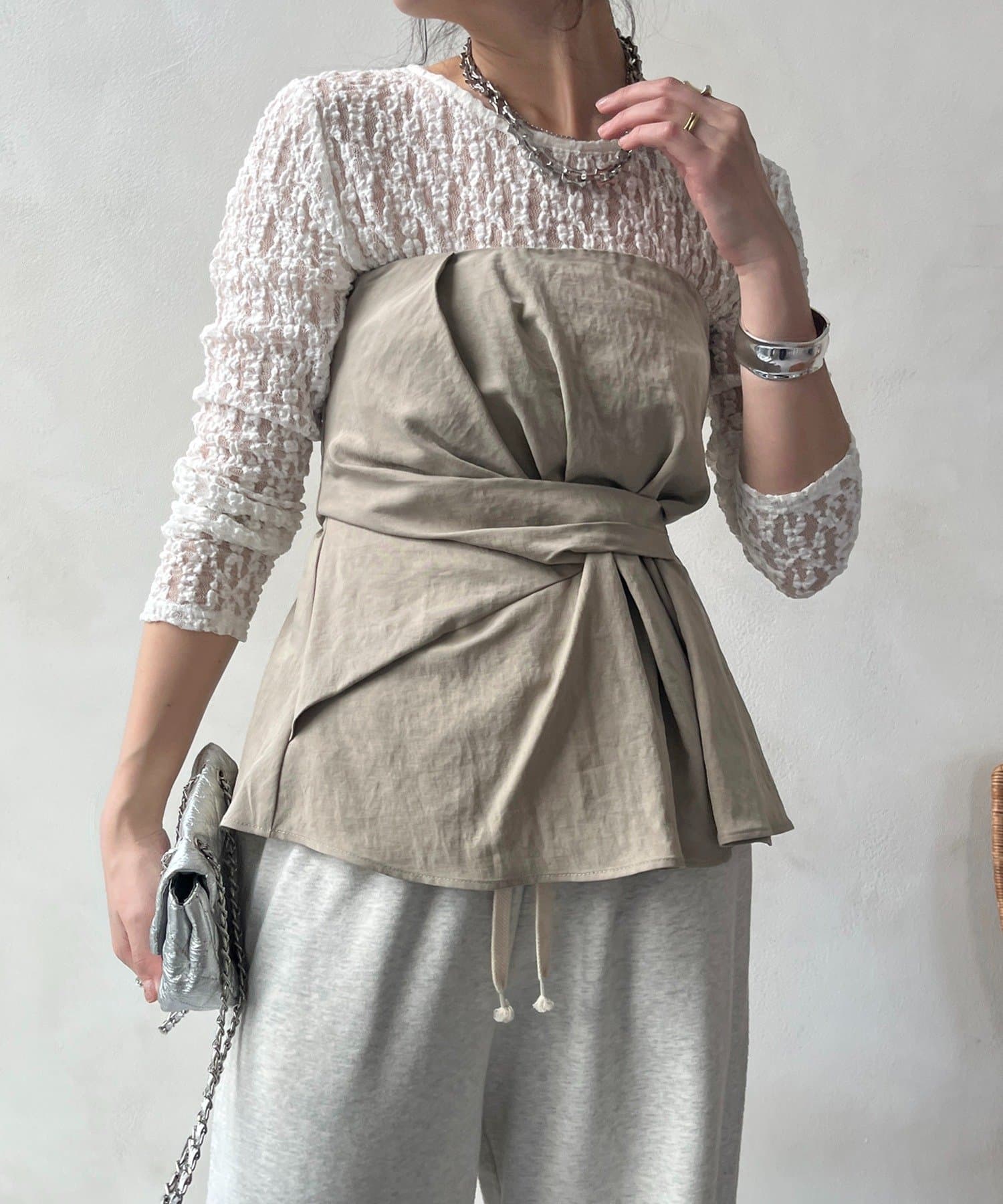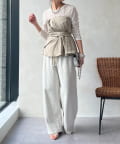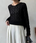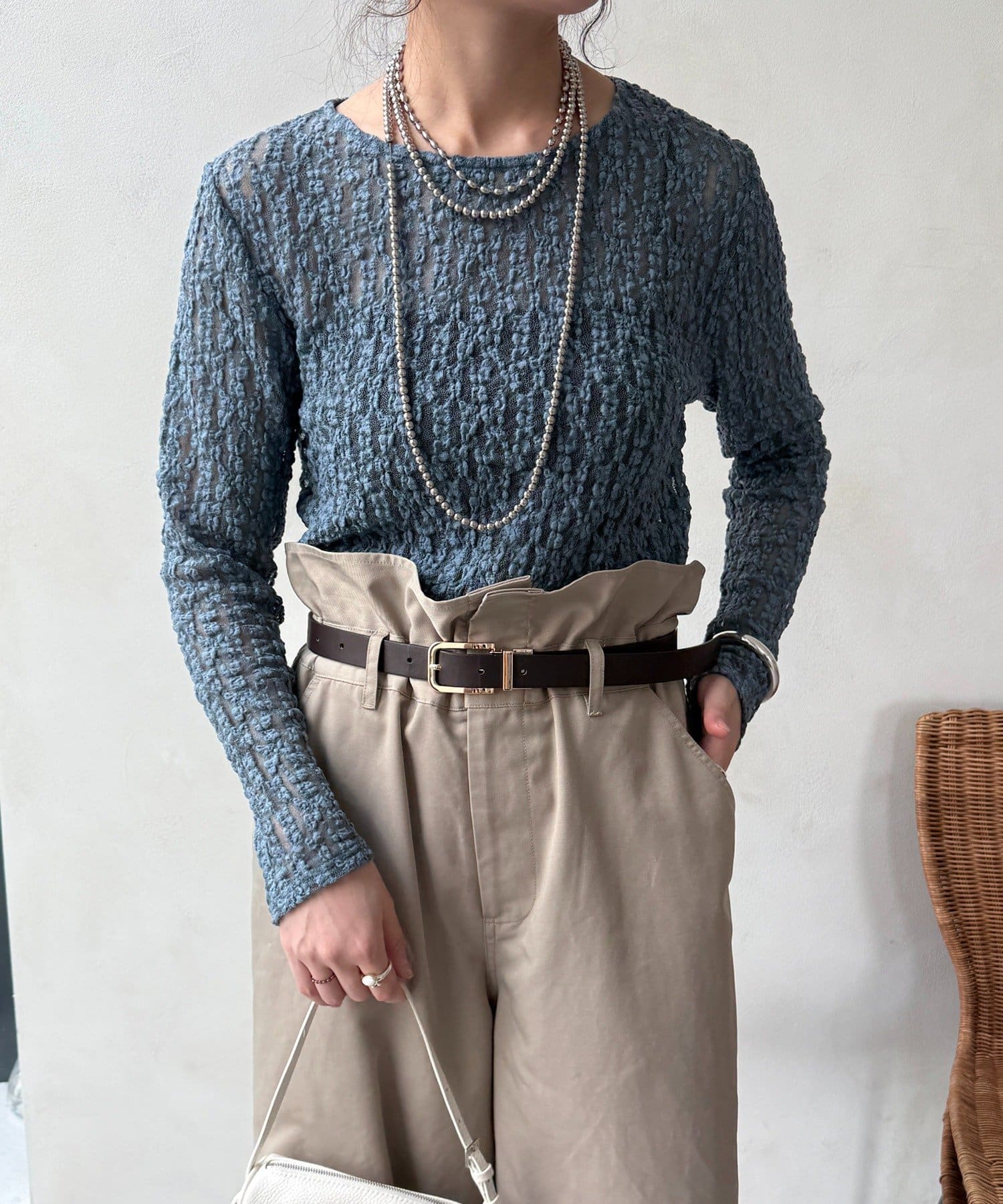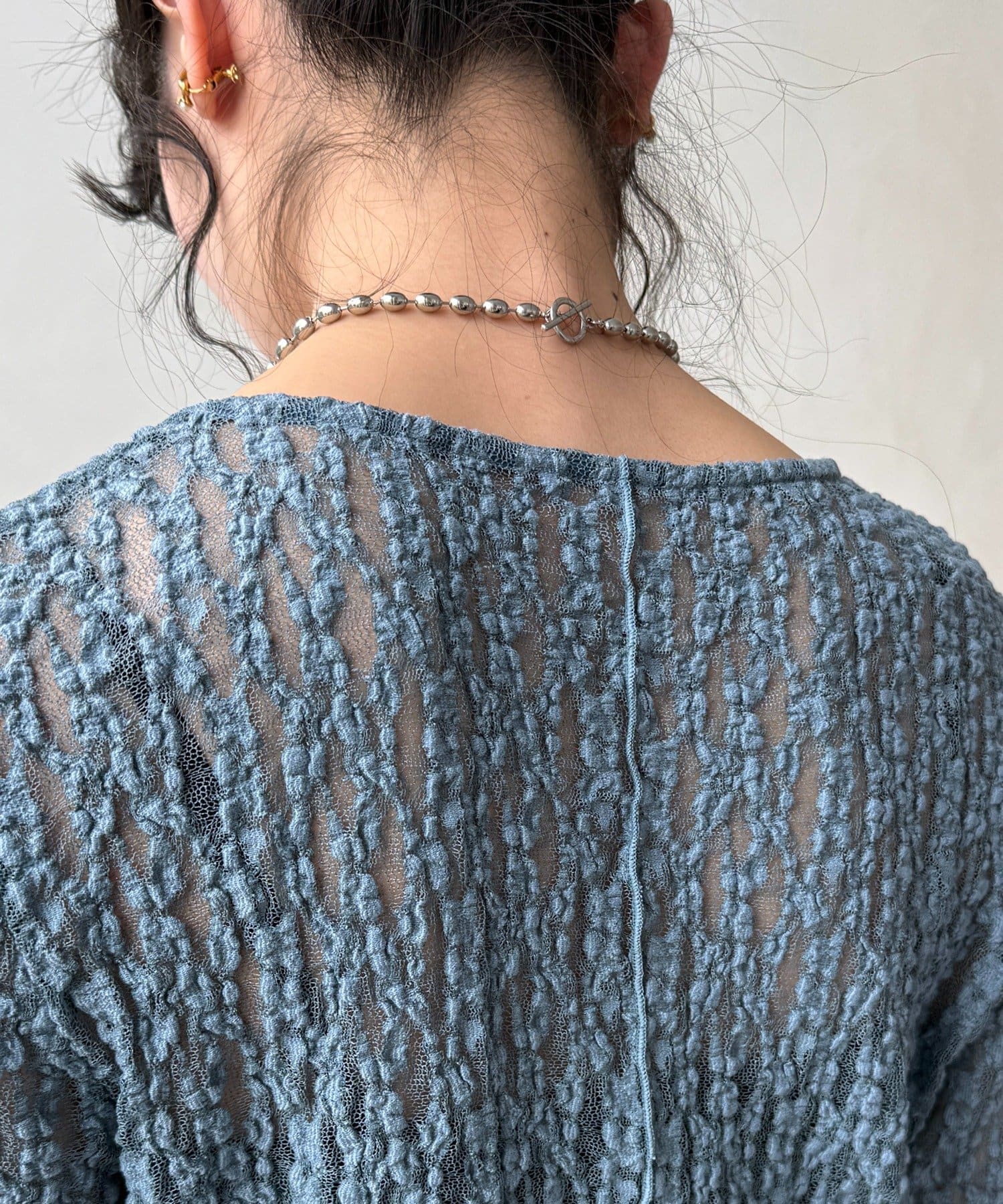 全体に施された凹凸感のあるレースがコーディネートに立体感をプラス。