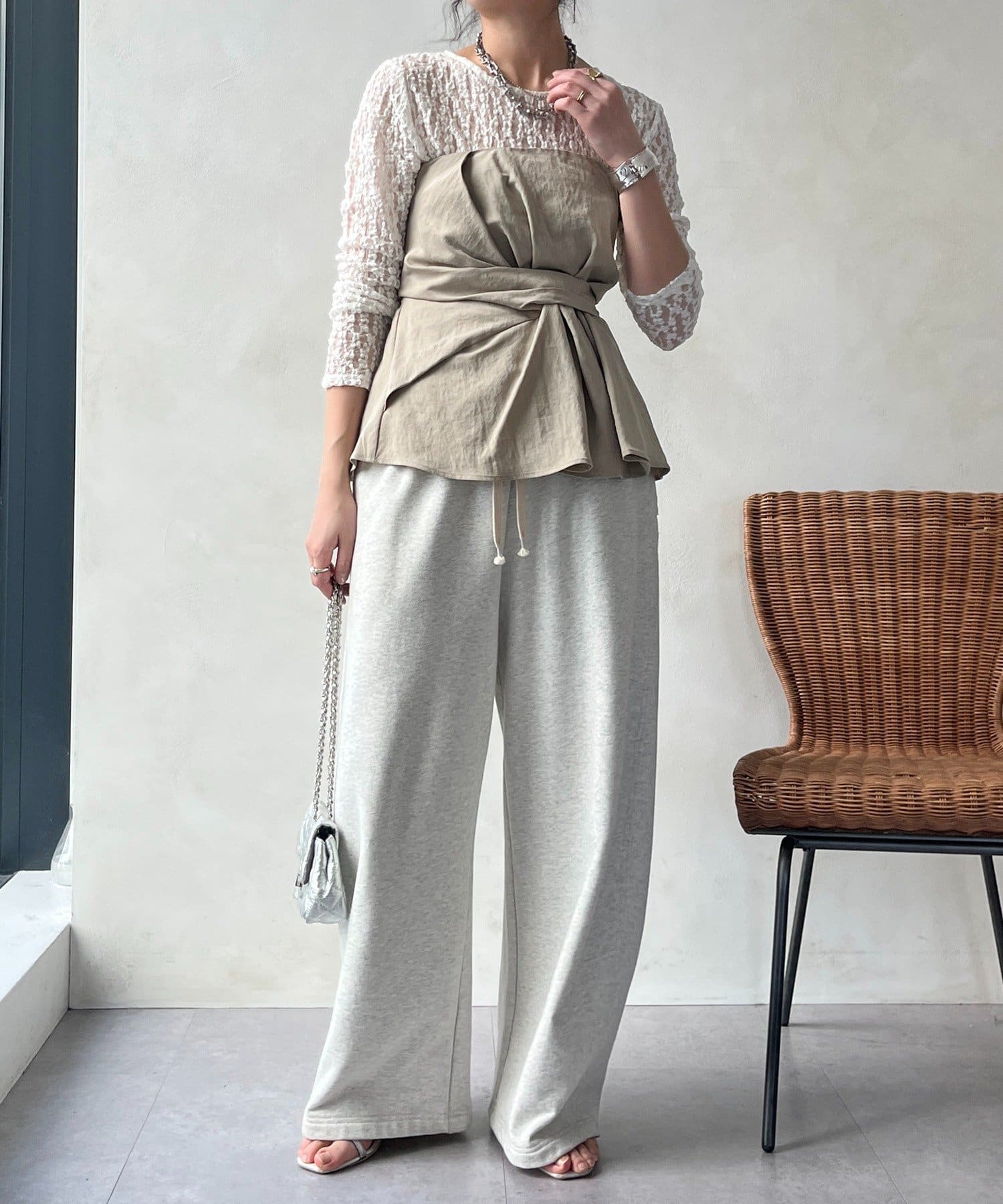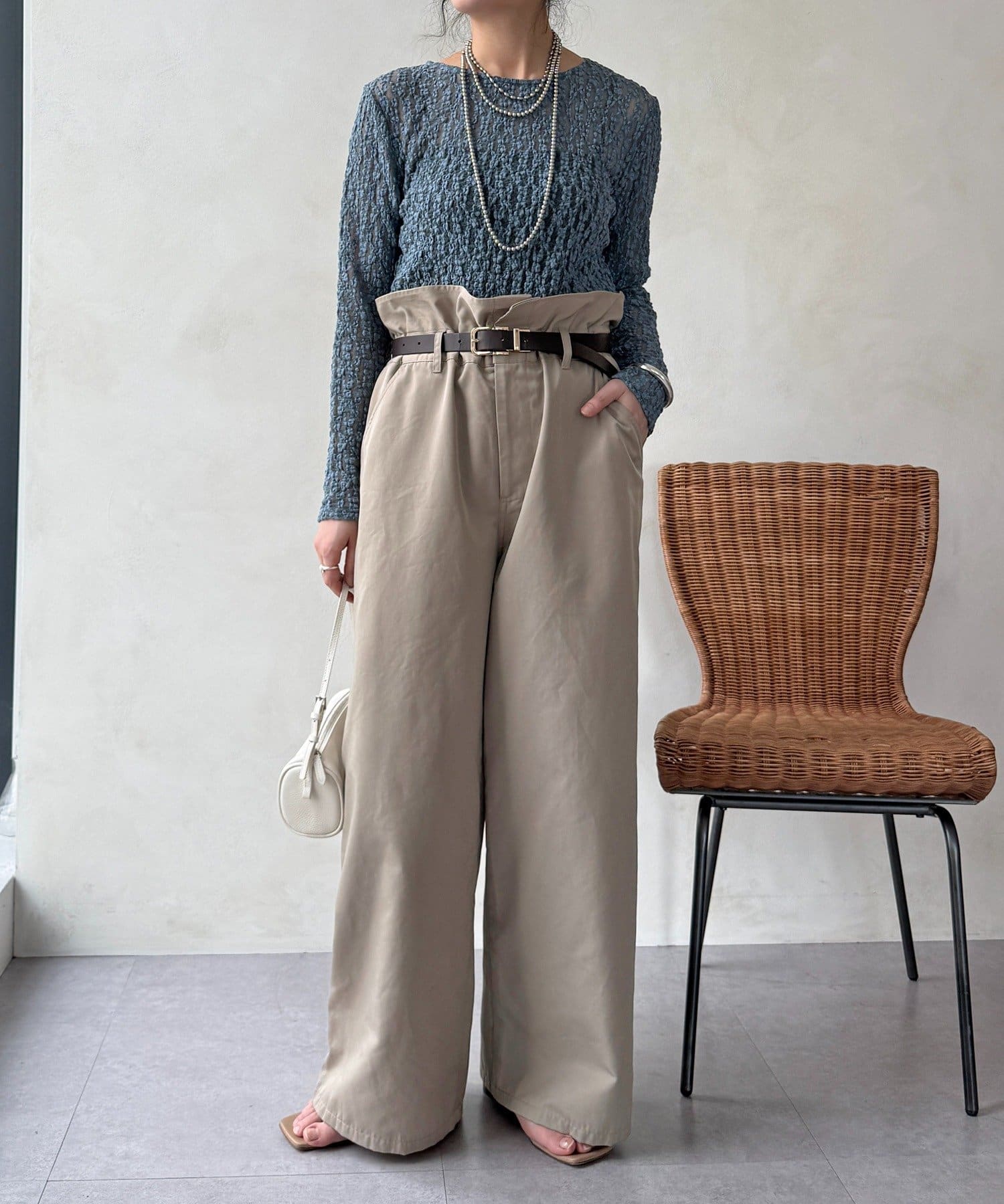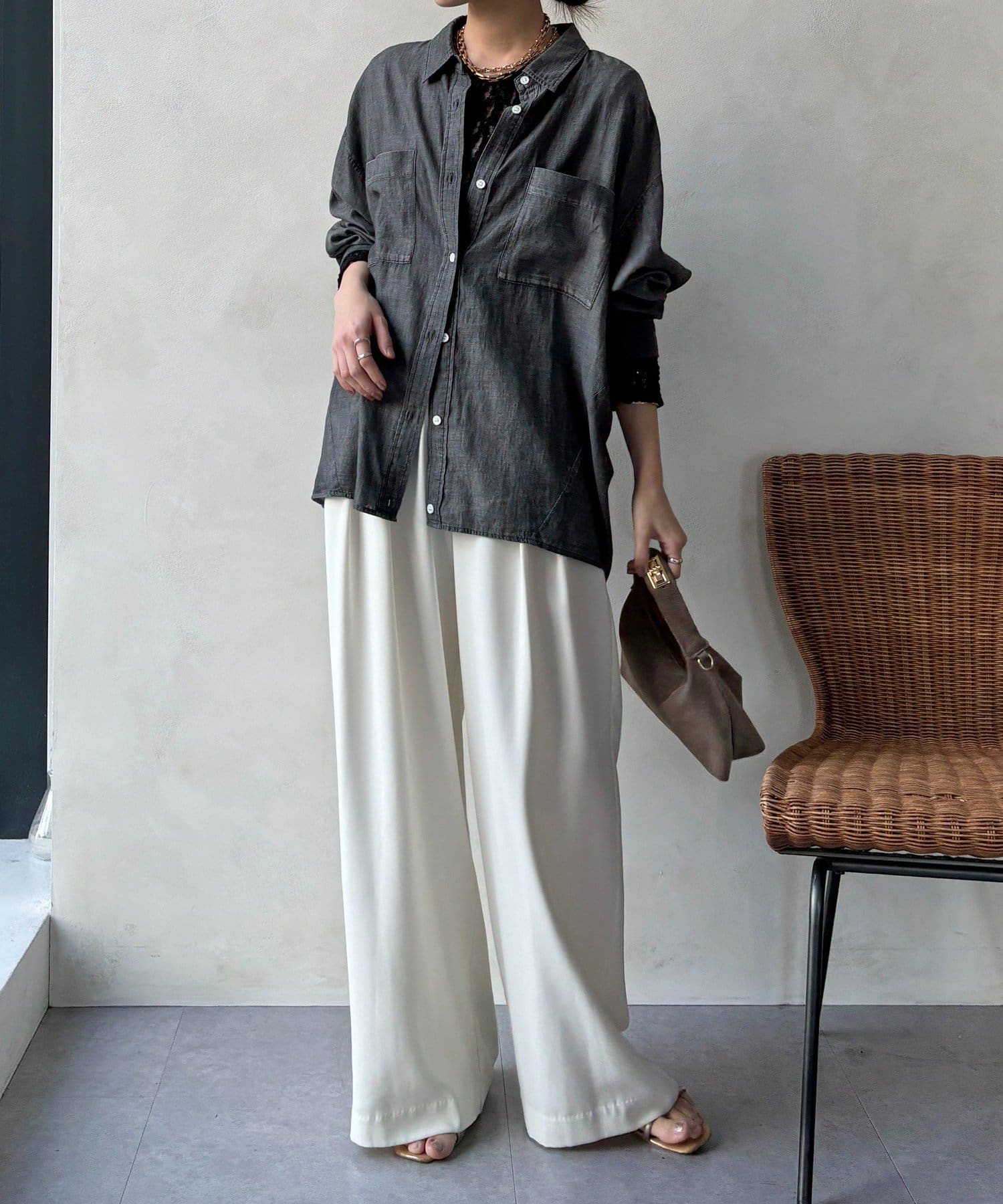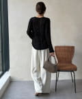 首元はすっきりとしたラインに仕上げ、レースアイテムにありがちな“甘さ”を程よく中和してくれます。