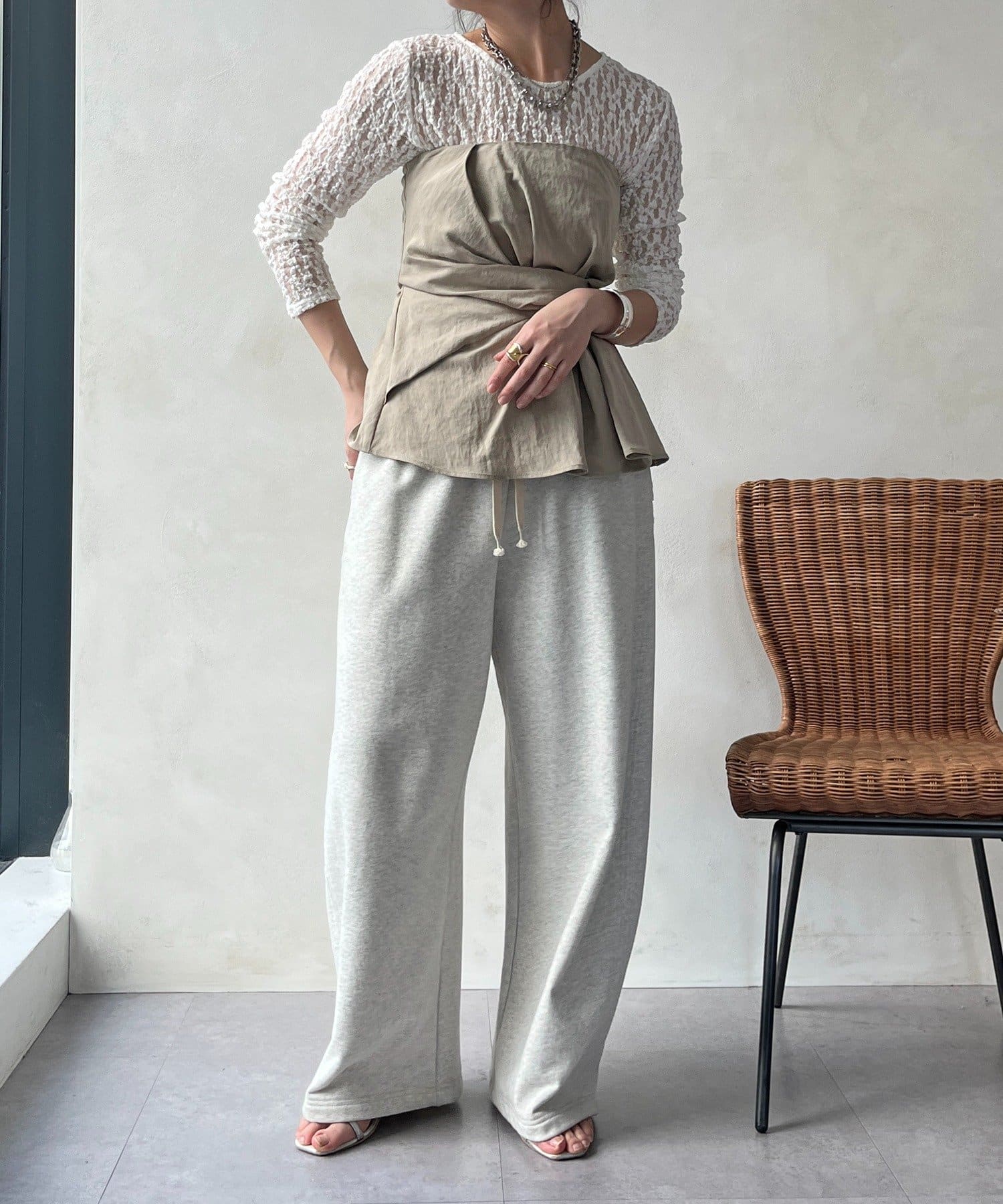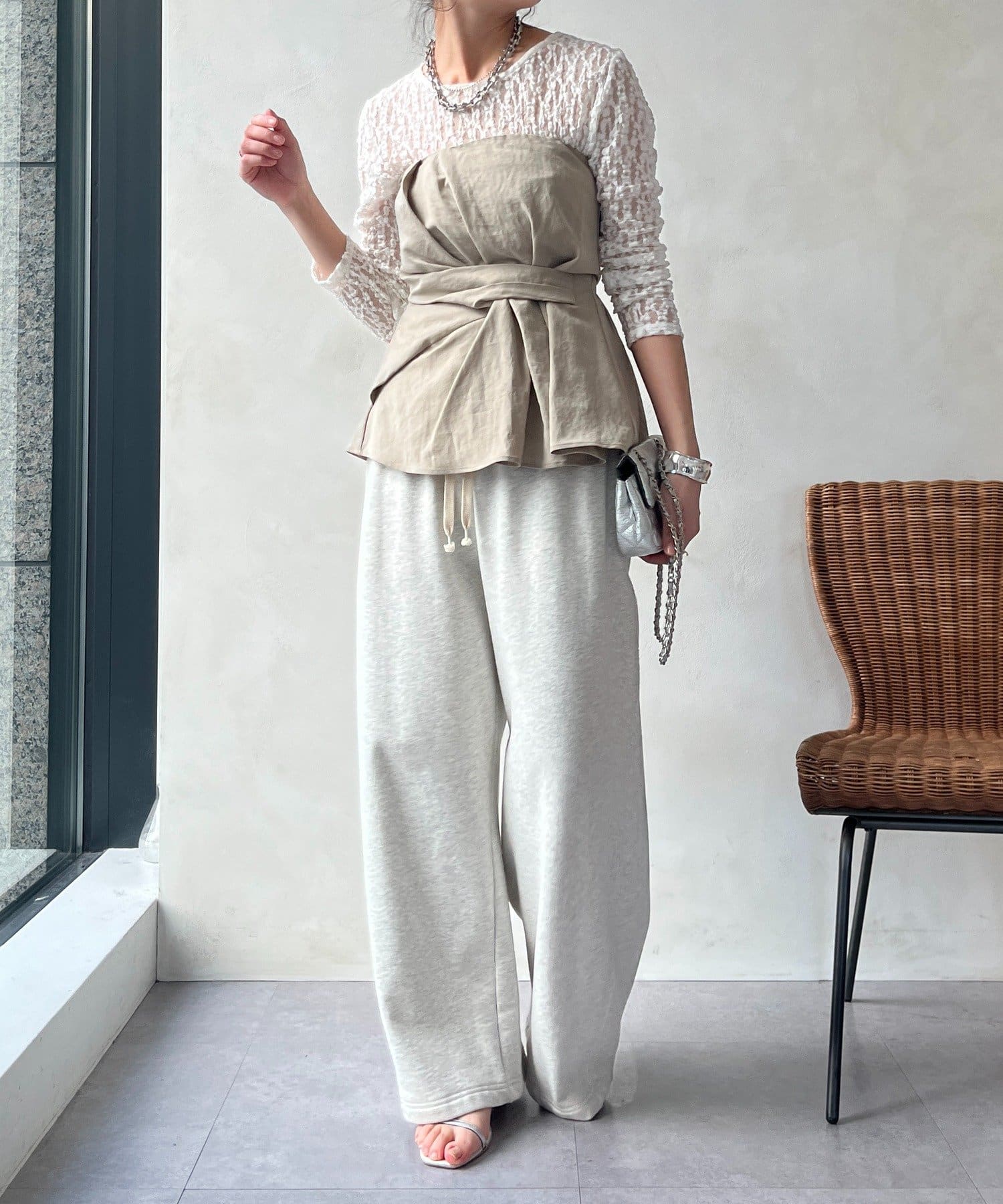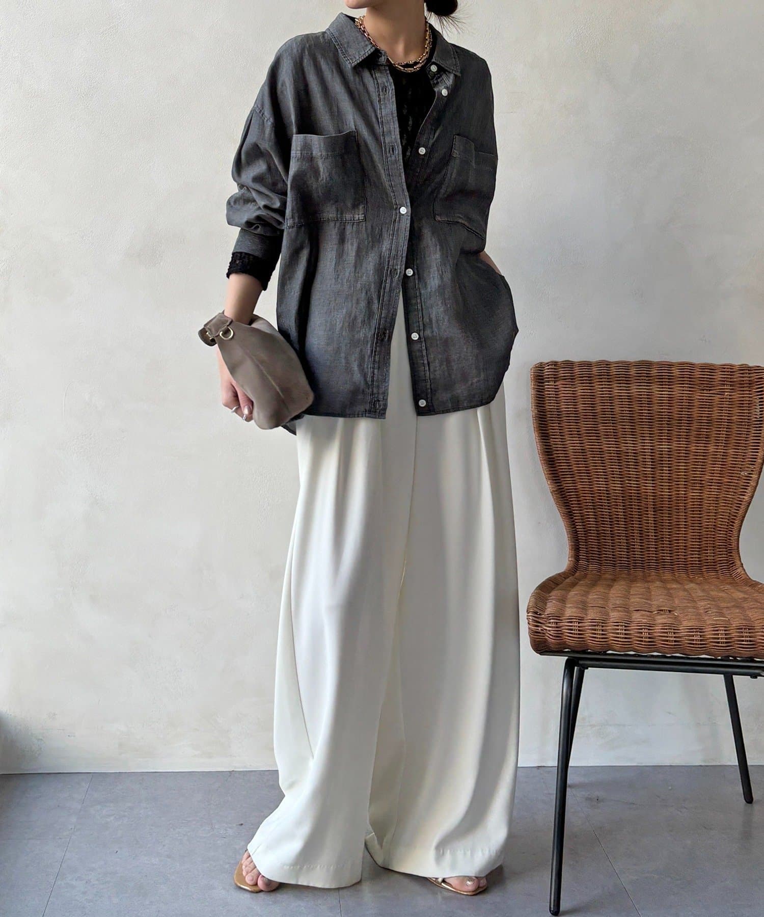 首元はすっきりとしたラインに仕上げ、レースアイテムにありがちな“甘さ”を程よく中和してくれます。