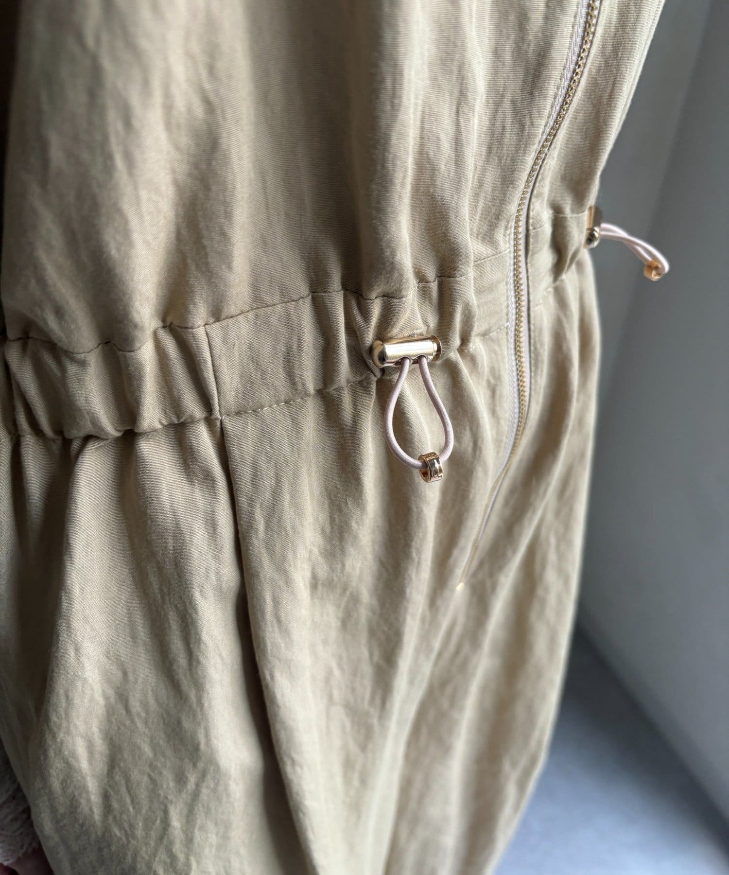 シンプルなデザインに、フロントジップとウエストのさりげないディテールが映え、