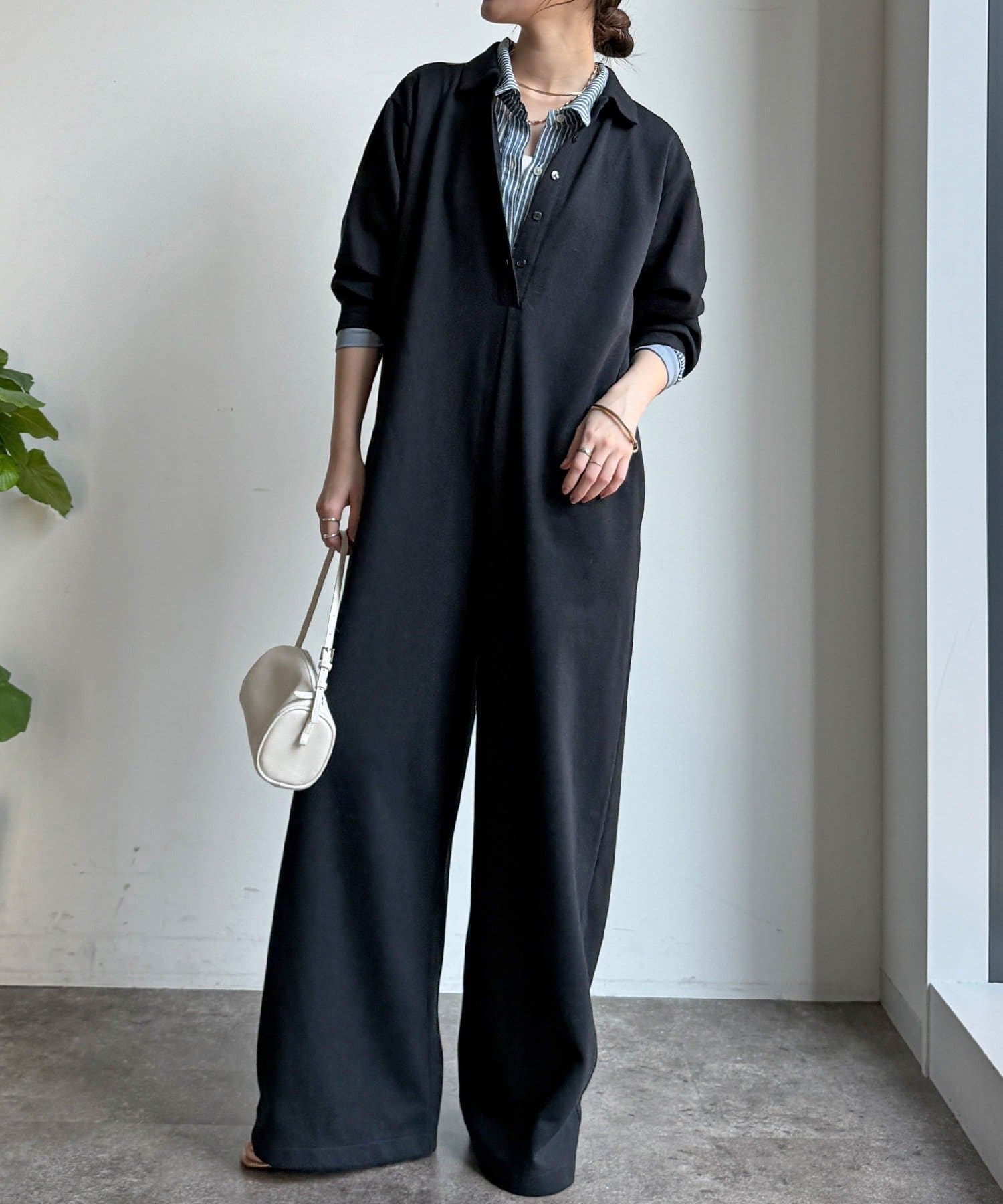 程よいゆとり感は、体のラインを拾いにくく脚長効果が期待できますよ◎