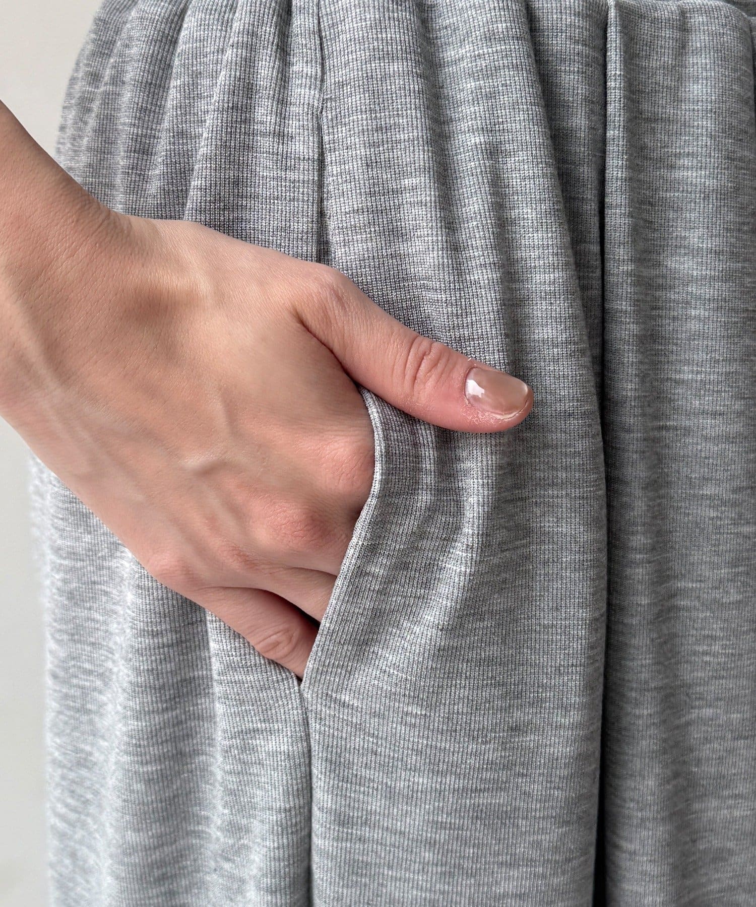 レーヨン混の素材はカジュアルになりすぎず、上品な光沢感となめらかな肌当たりを実現。