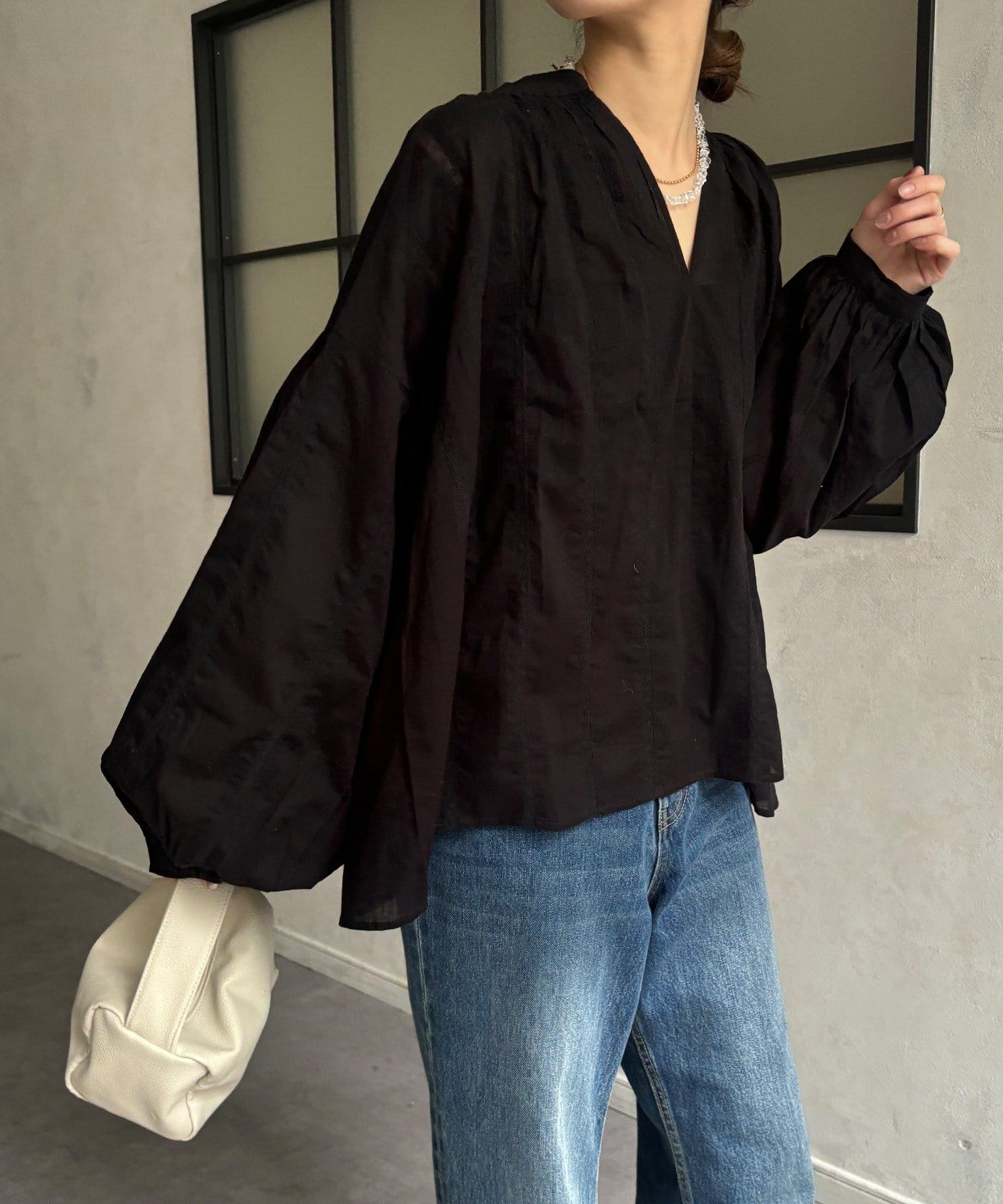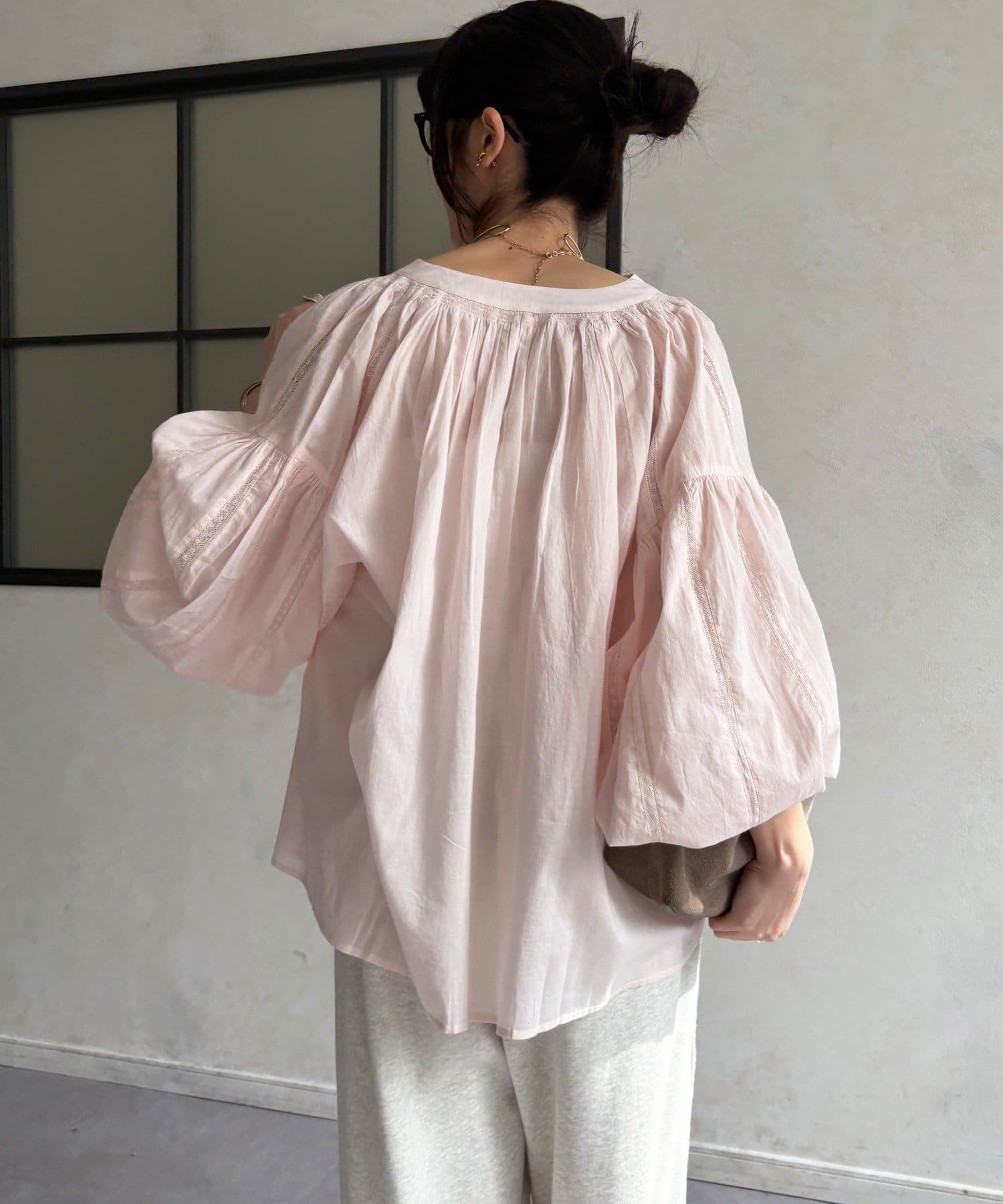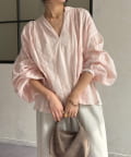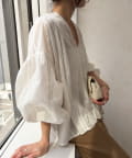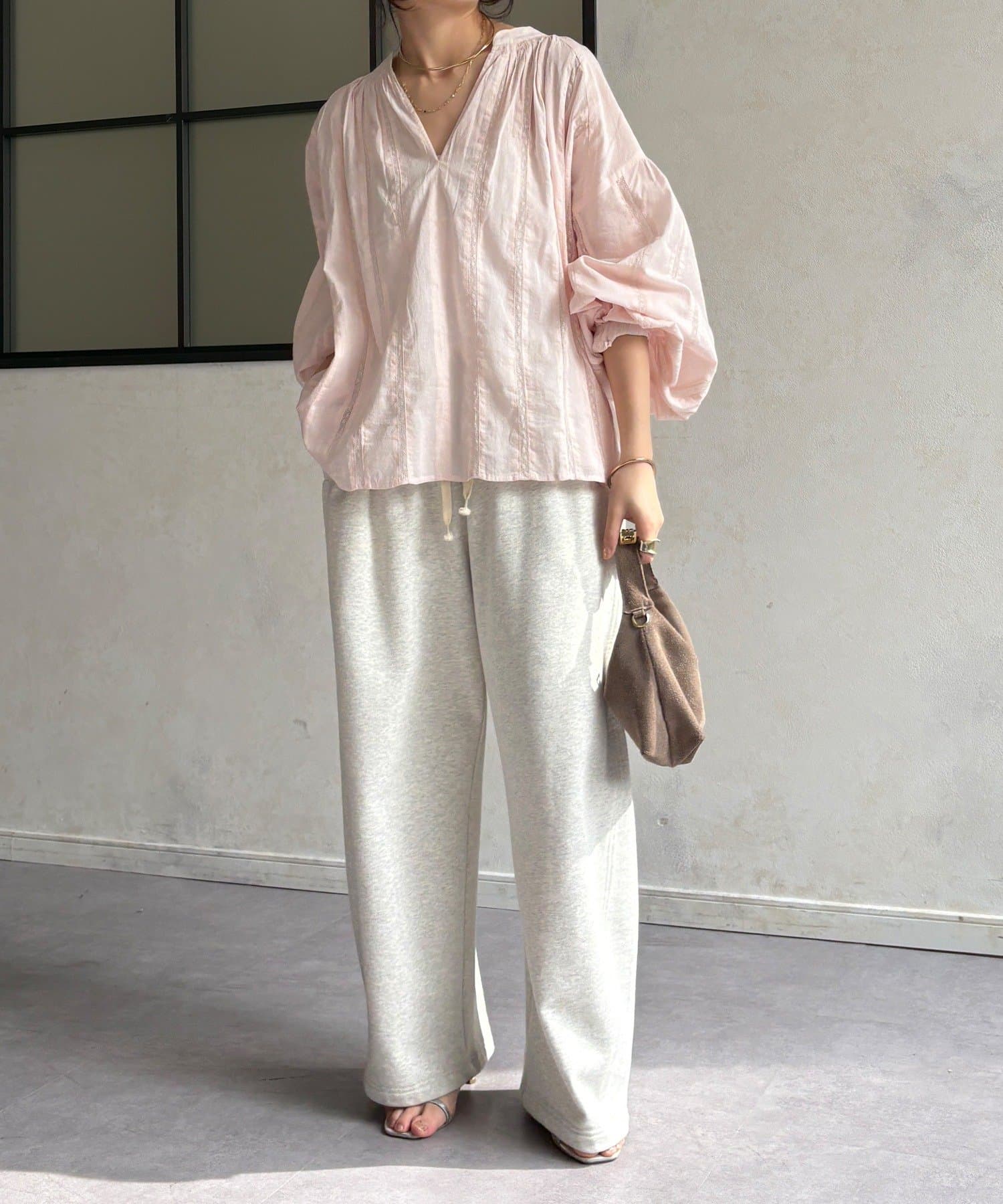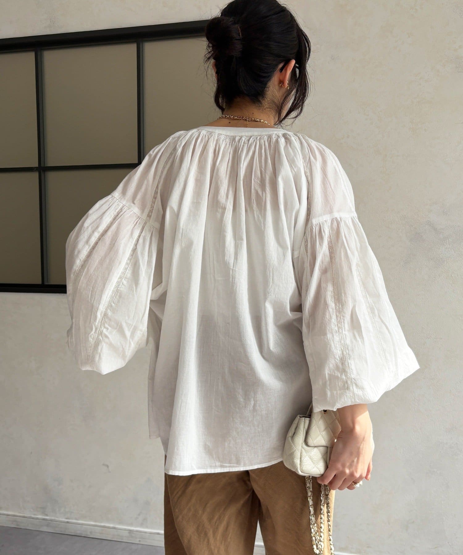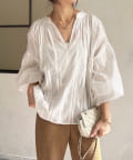 ナチュラルな風合いと、ふんわりとしたボリューム袖が女性らしくやわらかな印象を演出します。