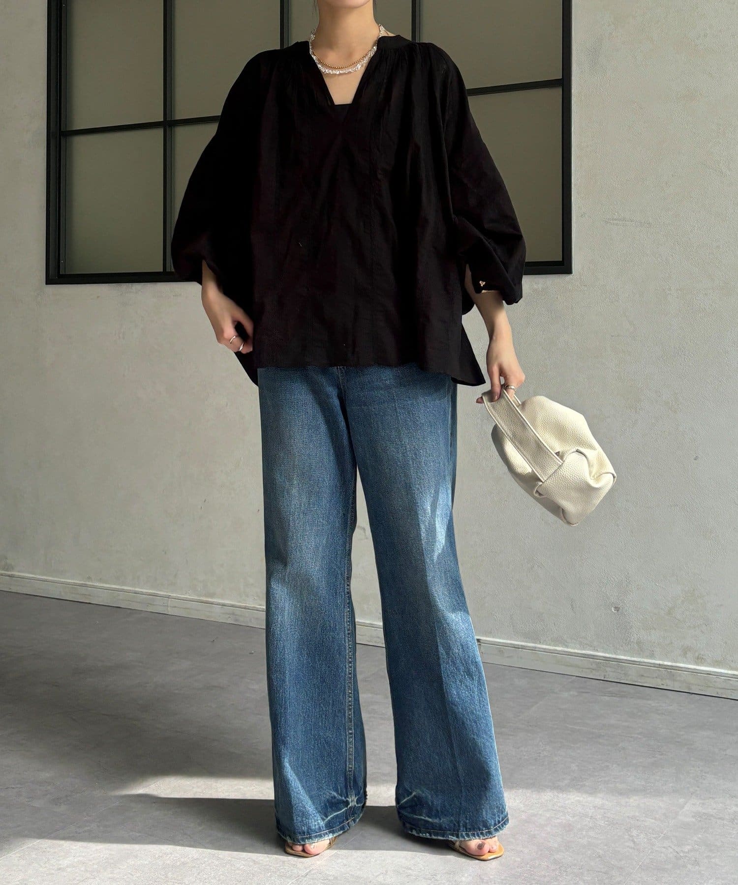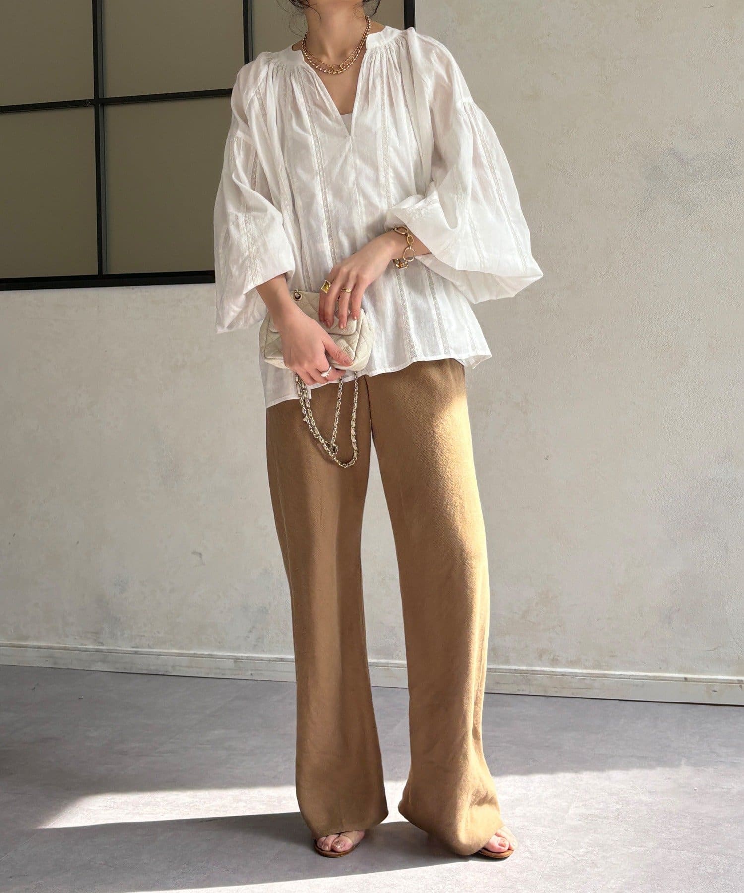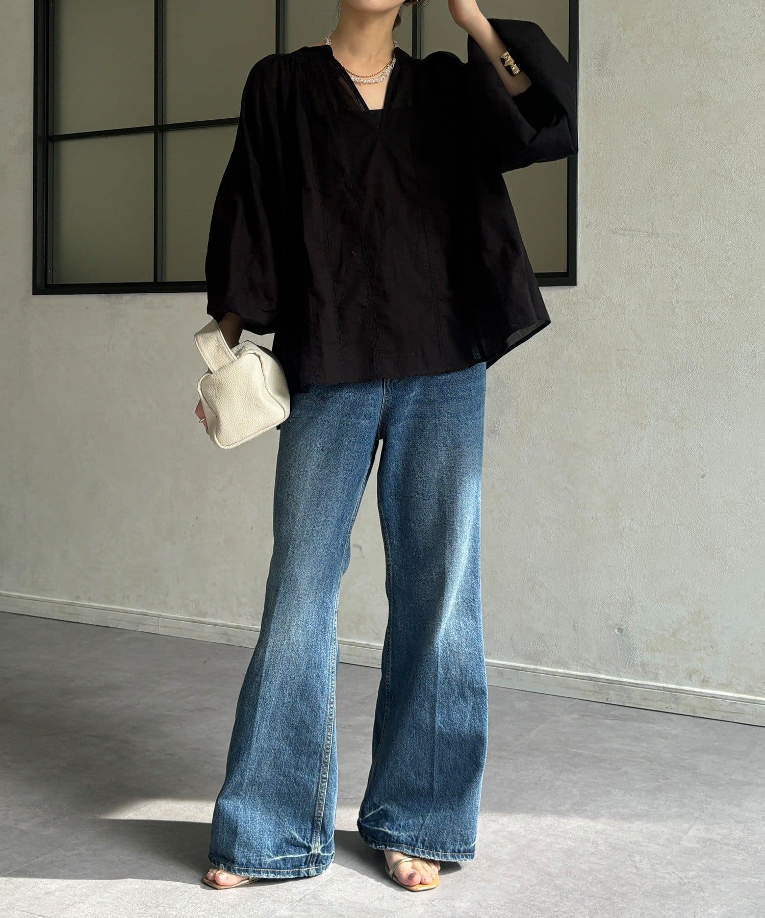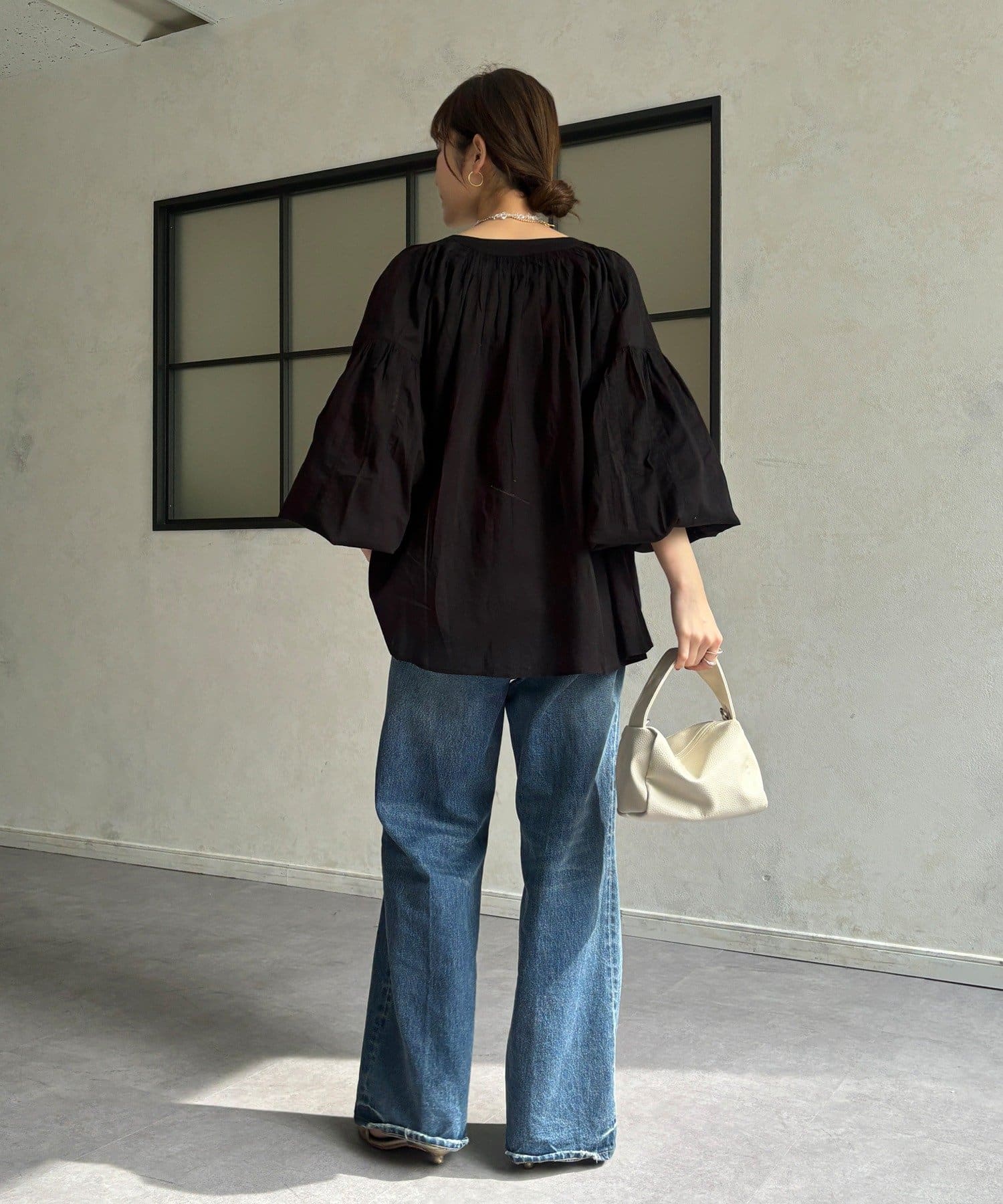 デニムやスラックスなど、合わせるボトムス次第で綺麗めにもカジュアルにも表情を変える、今年気分なブラウスです。