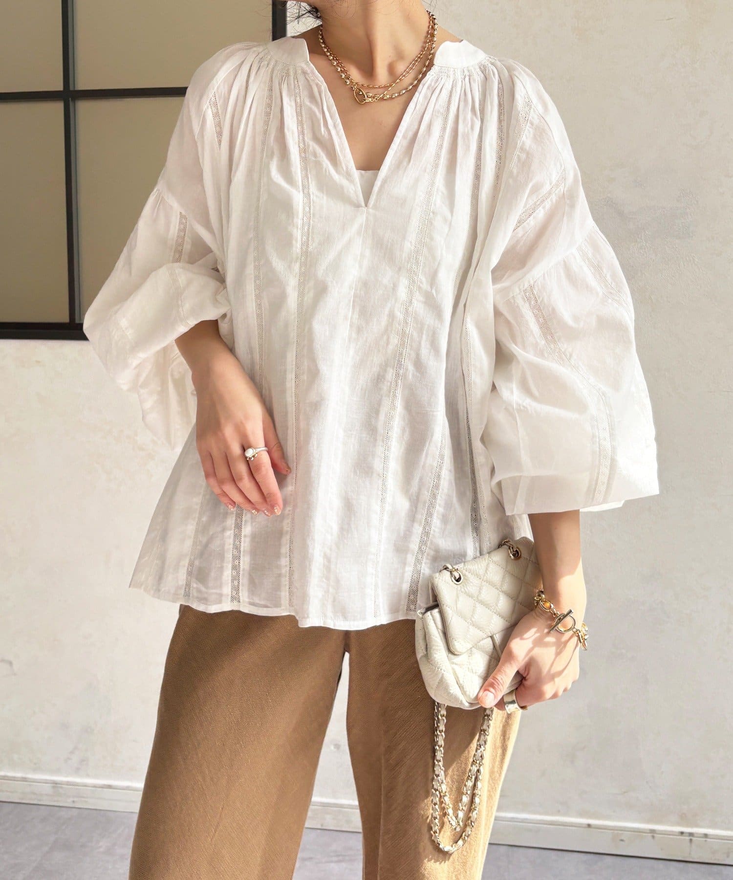 TOP > DOUDOU > レディース > トップス > シャツ/ブラウス(ボタン) > インドレーススキッパーブラウス