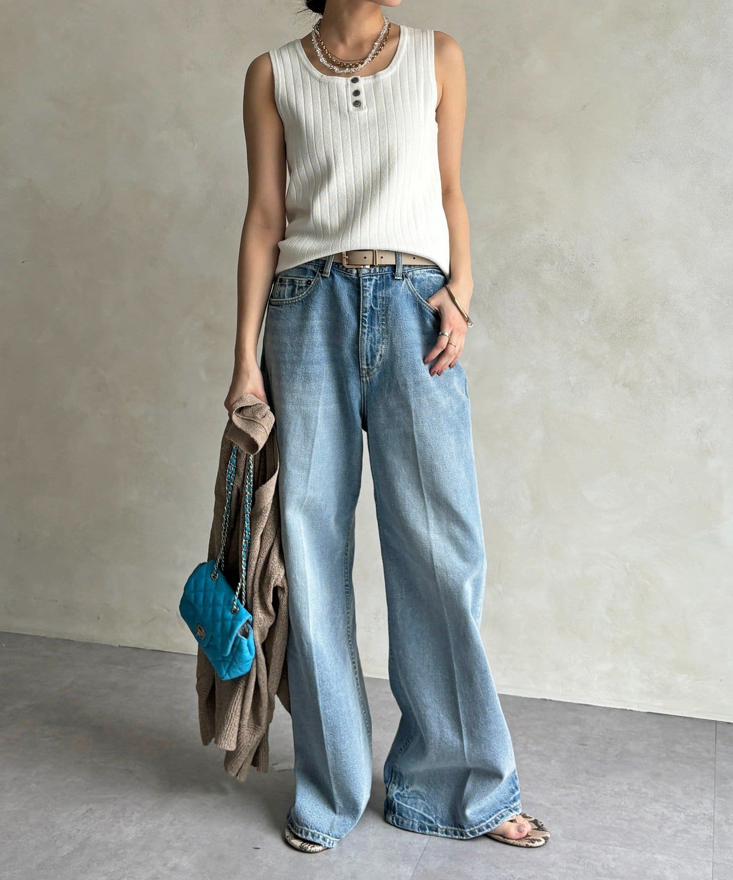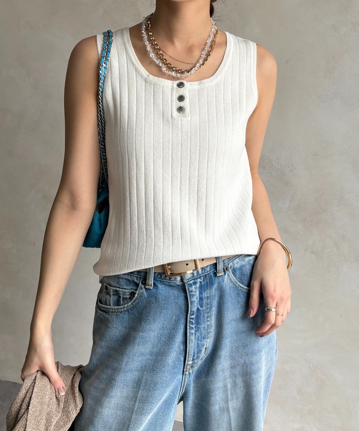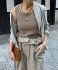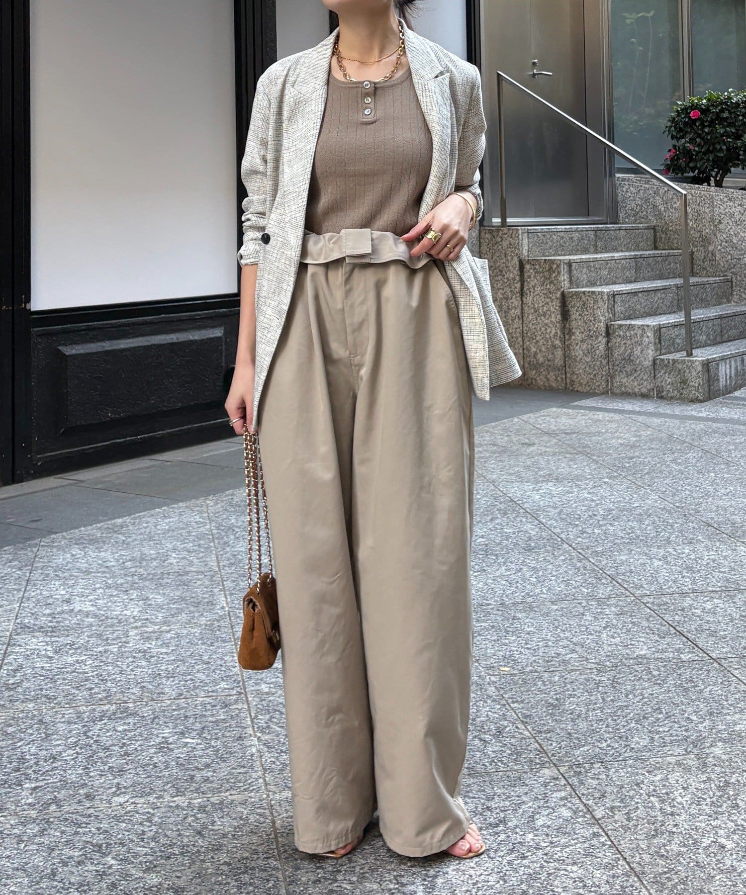 ヘンリーネックデザインは、首元をすっきり見せながらも女性らしさを演出。