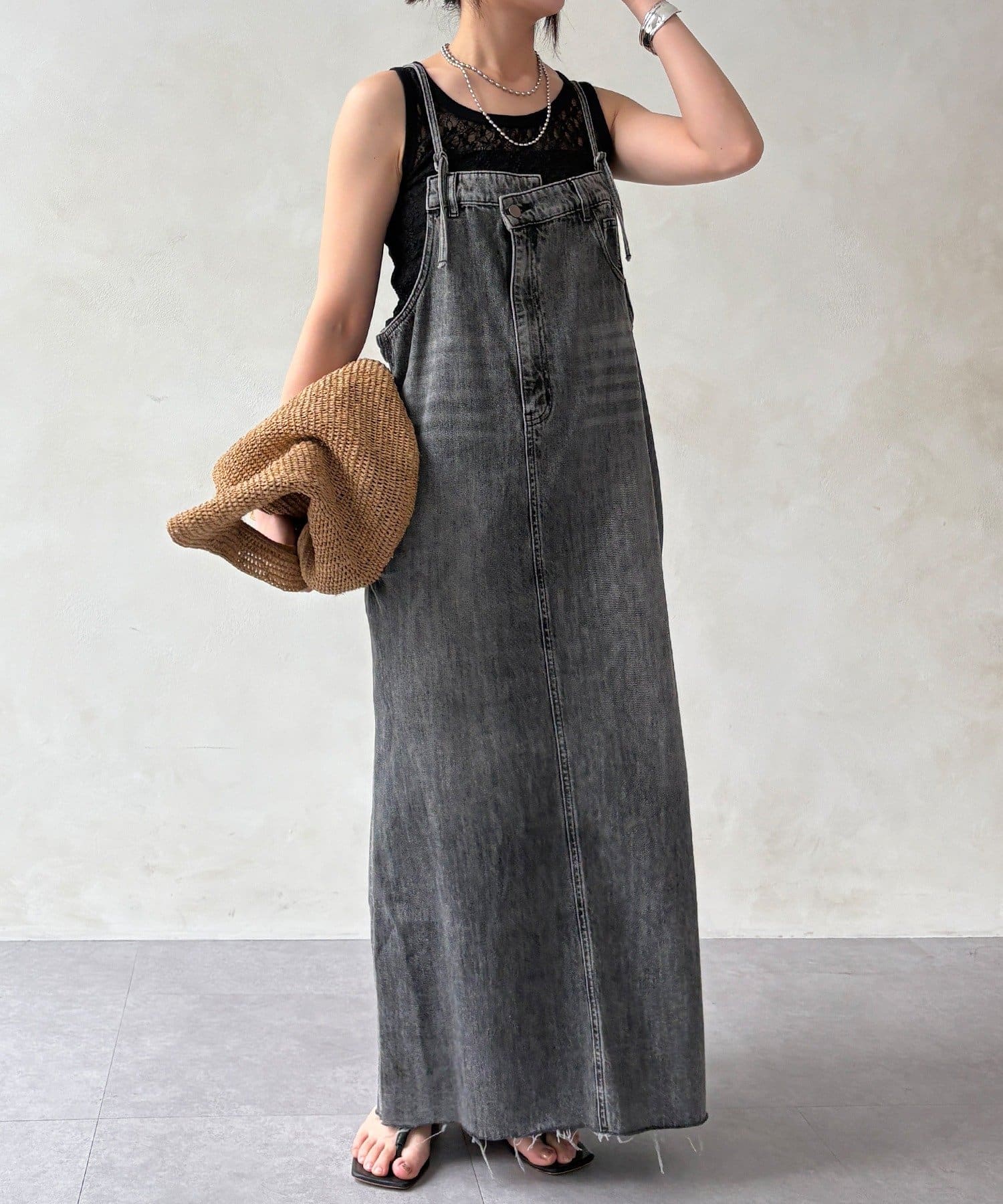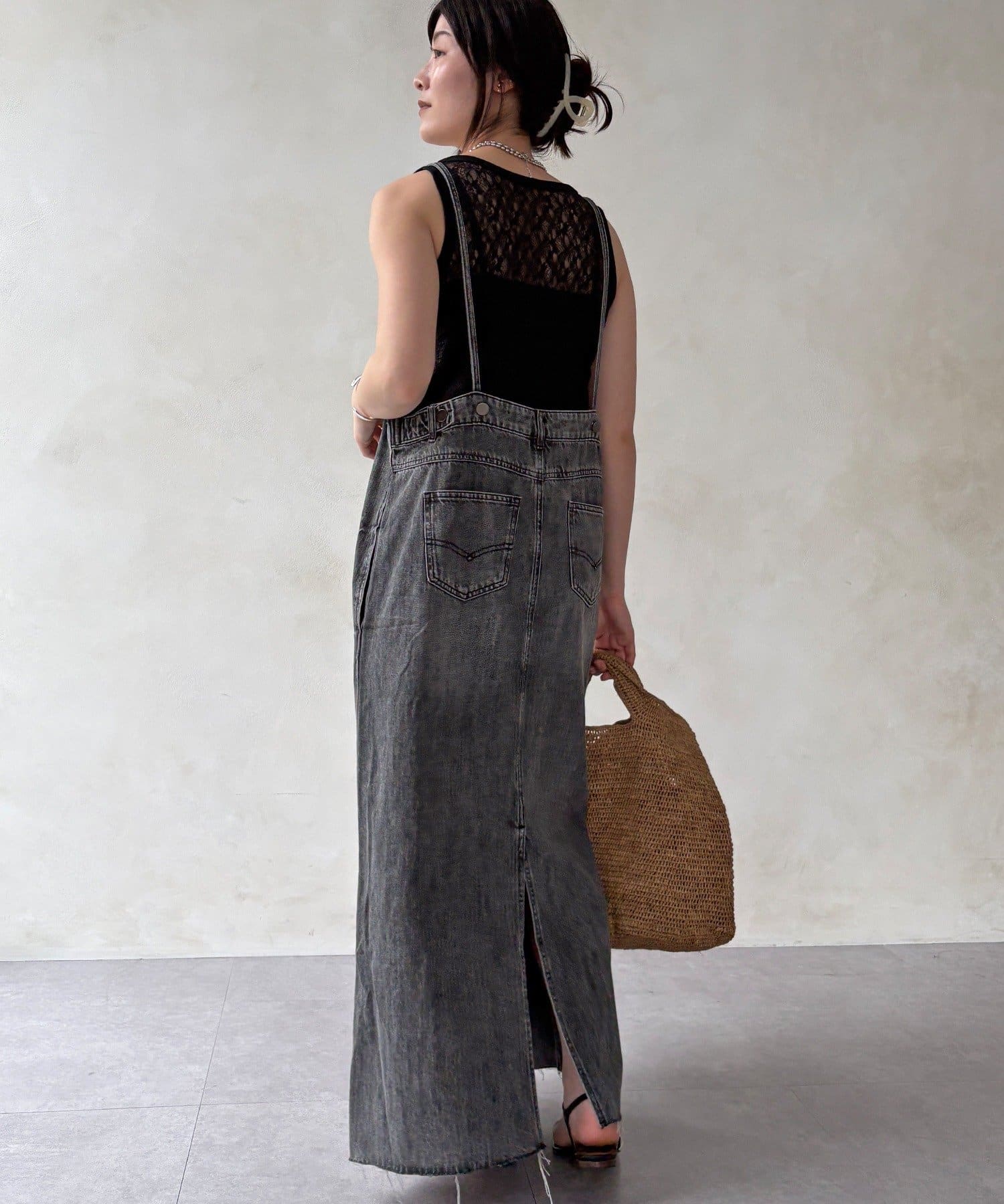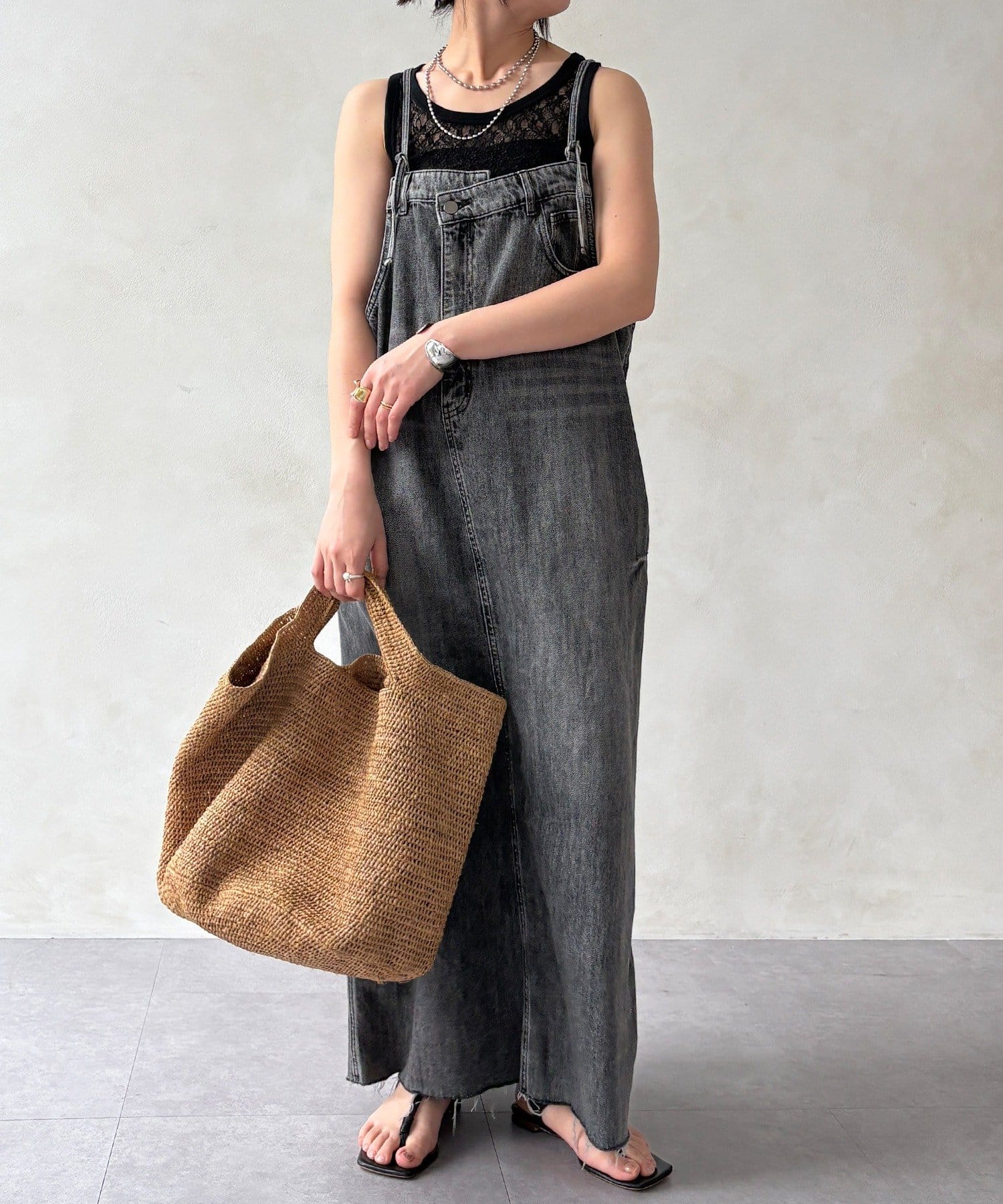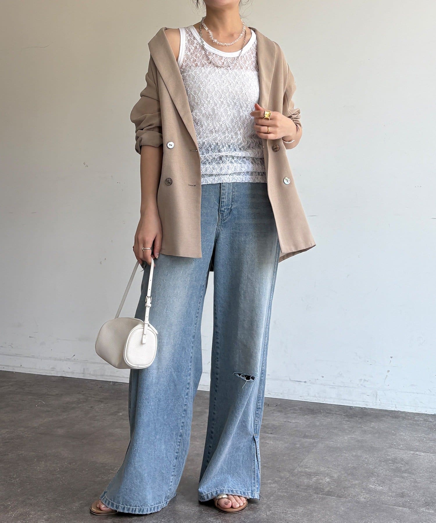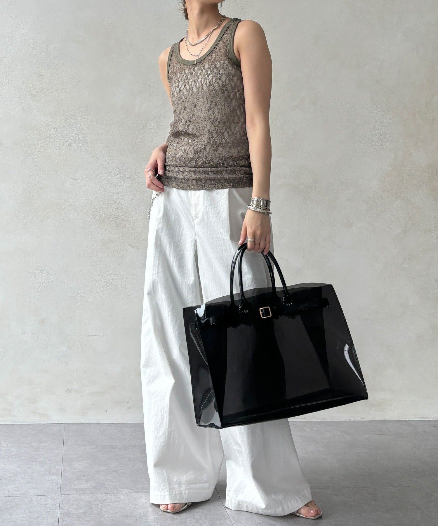 上品なカジュアル感が洗練された印象に。大人の透け感タンク