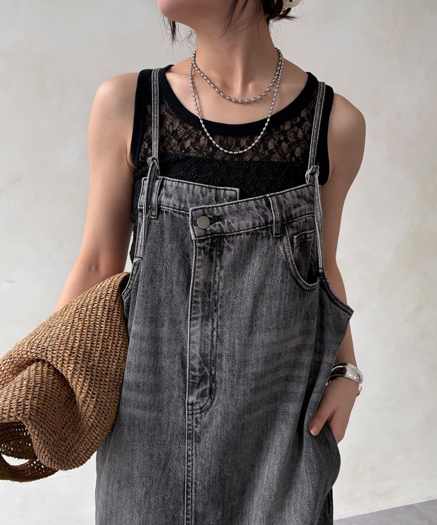 前面に施された総レースとカジュアルなリブの組み合わせが