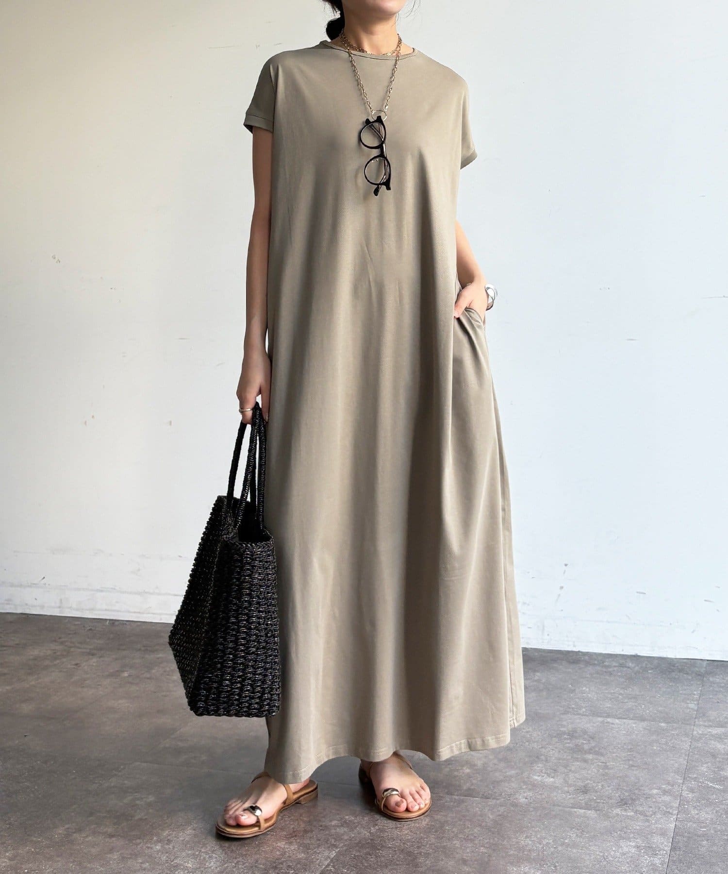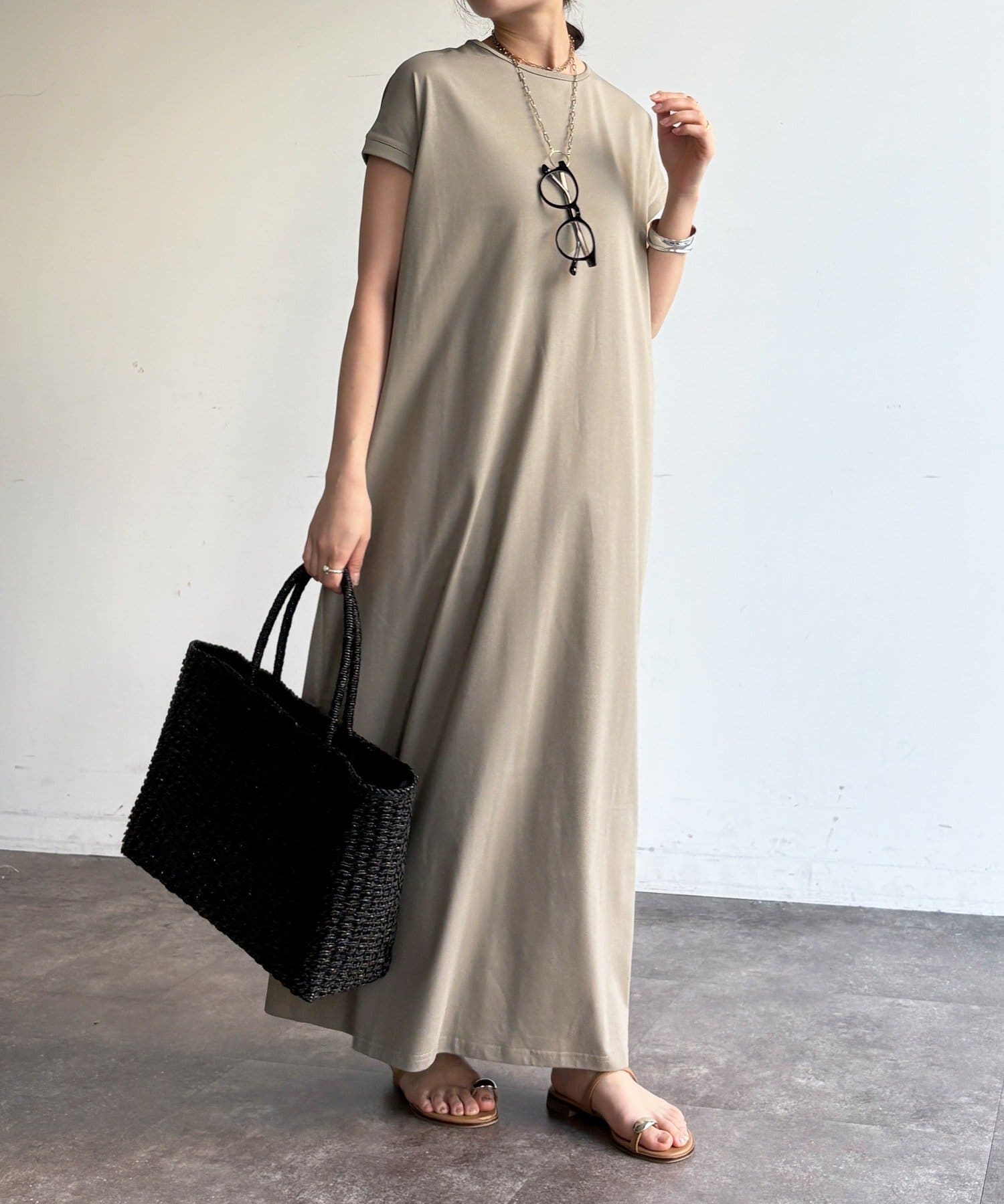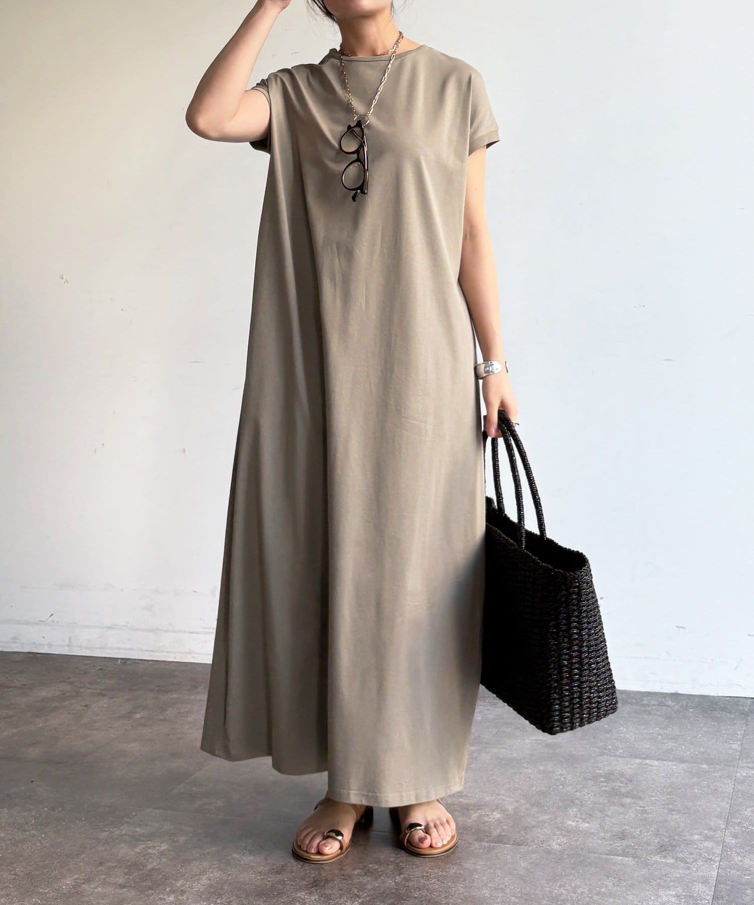 さらりと涼しいクール天竺素材で快適な着心地のワンピース。