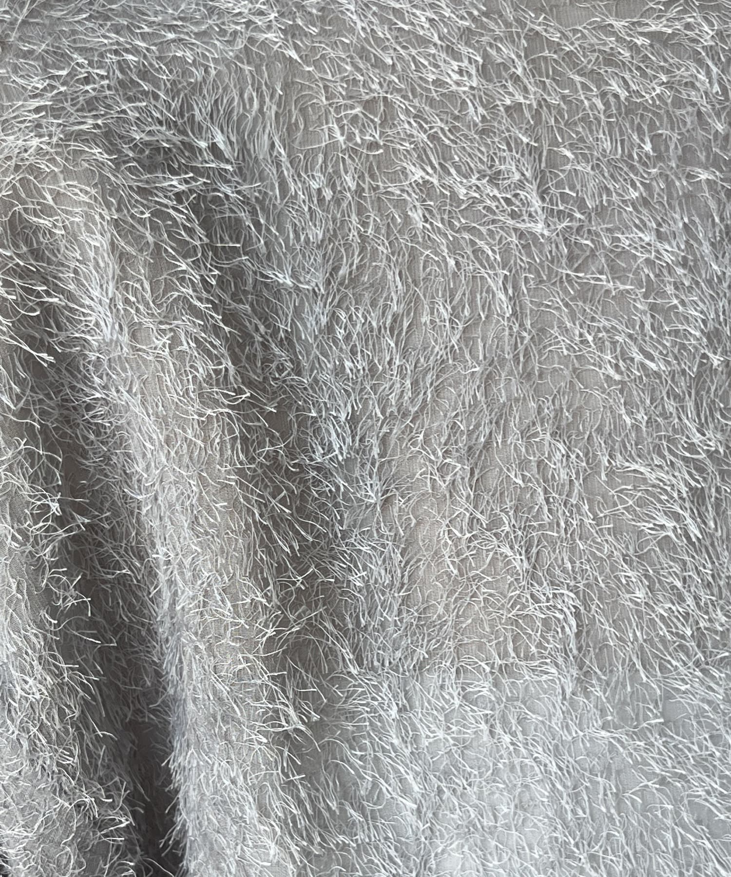 さりげないフリンジジャガードがスタイリングを華やかに彩ってくれます。