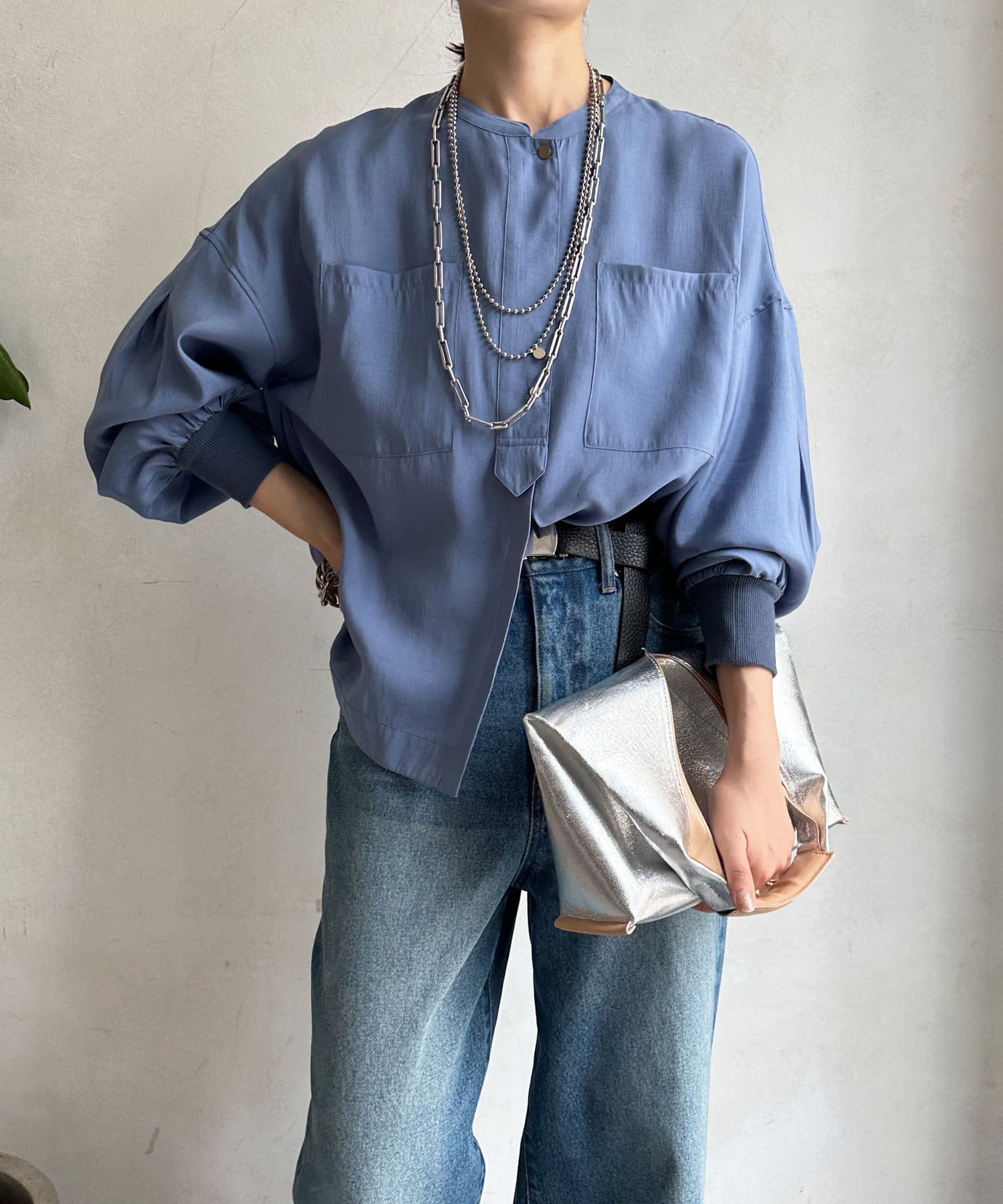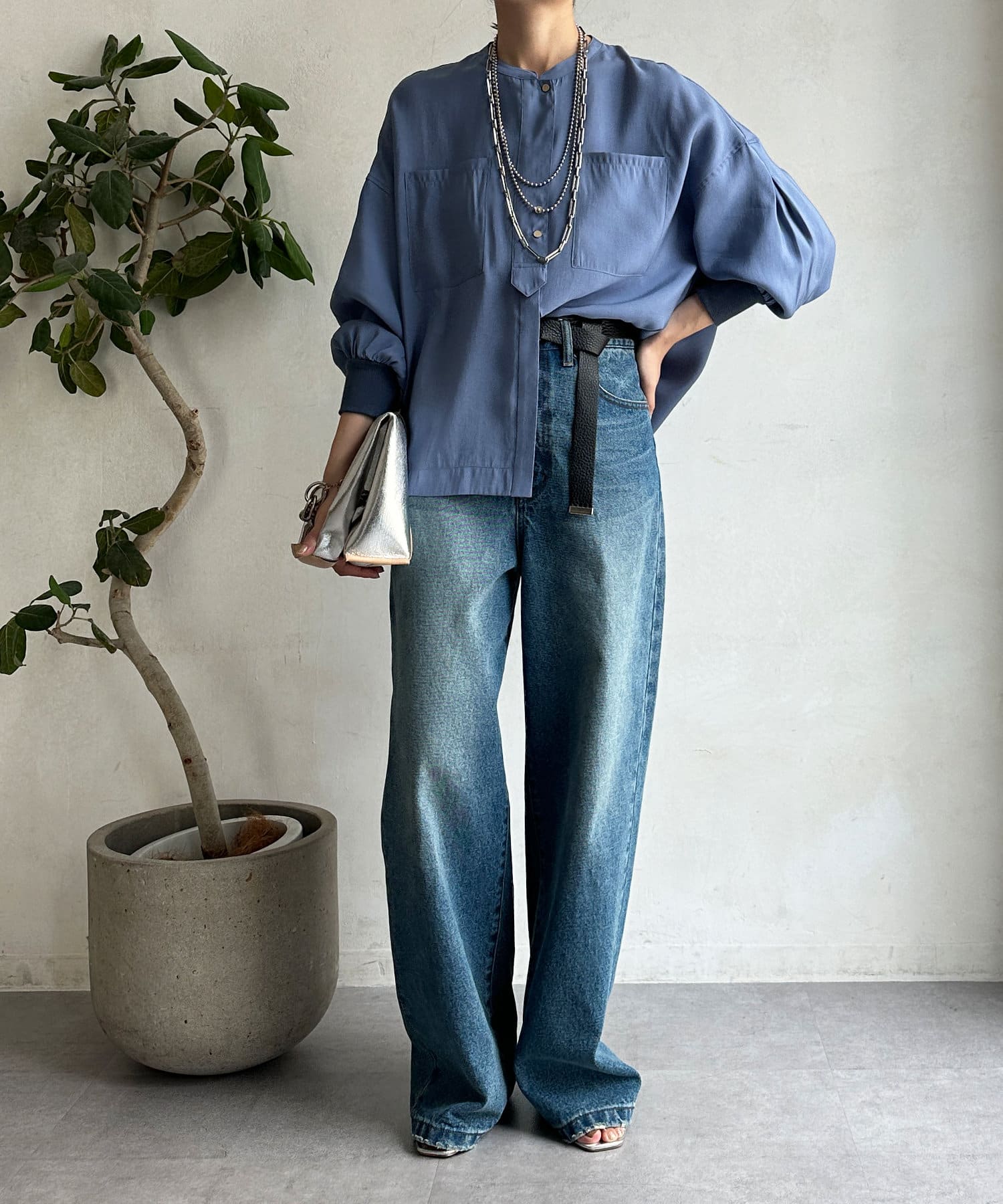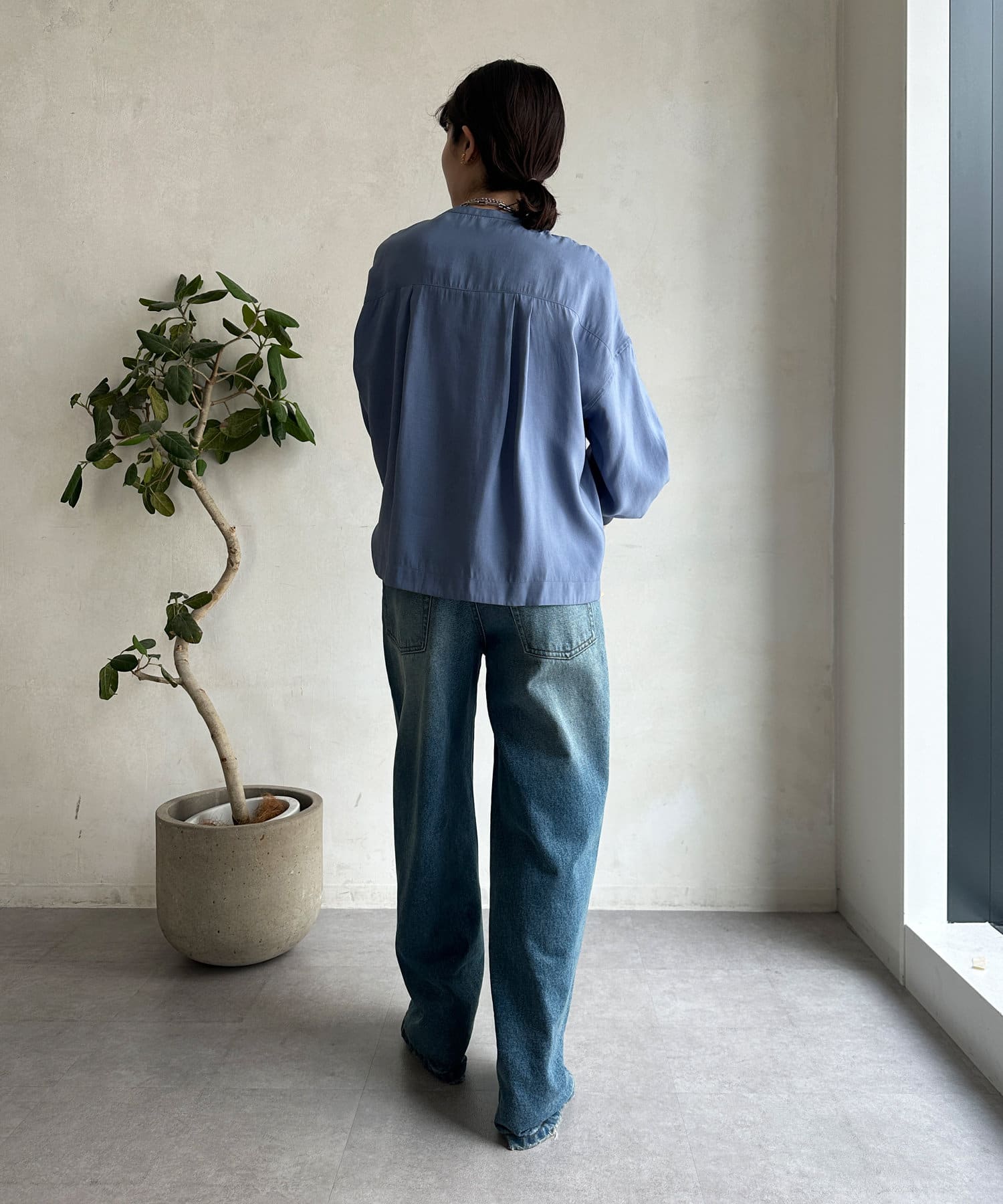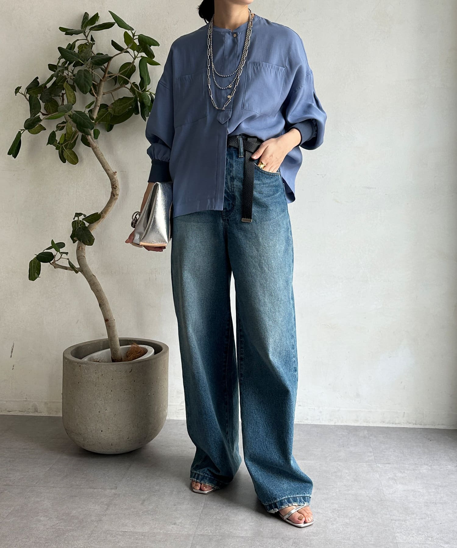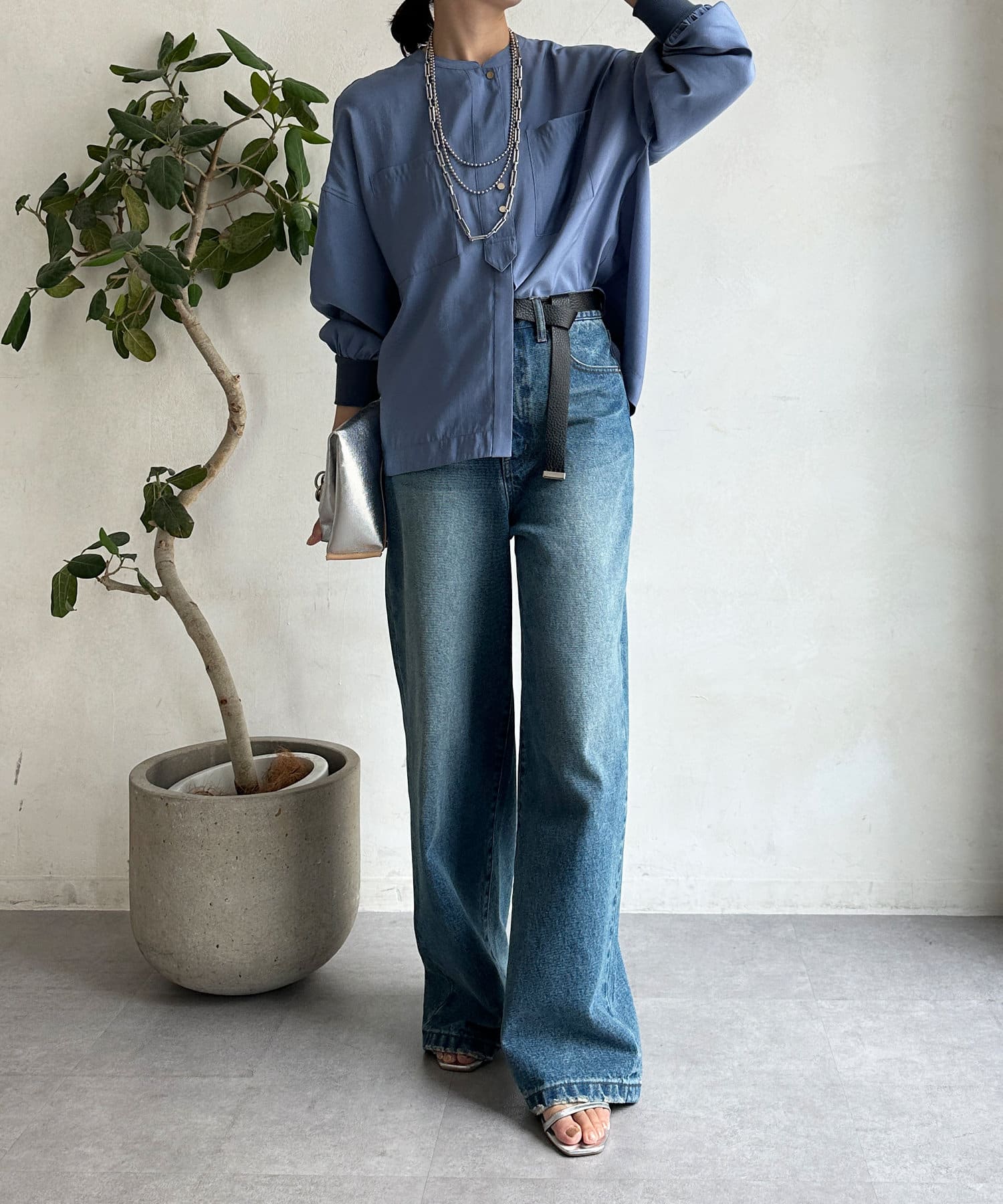ブルーなので透け感はないので、1枚でさらっと着られます。