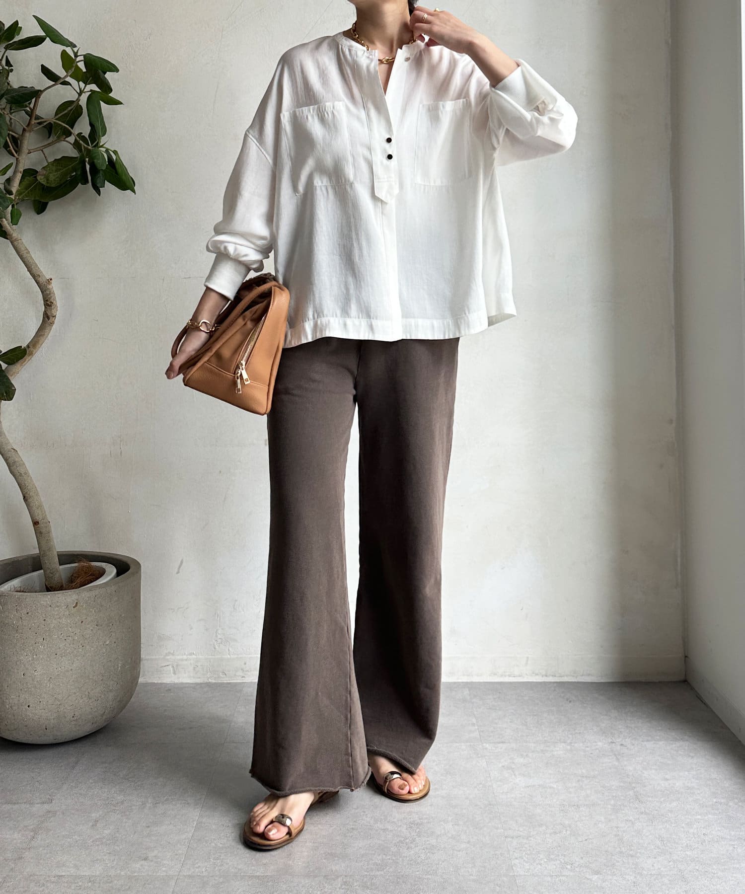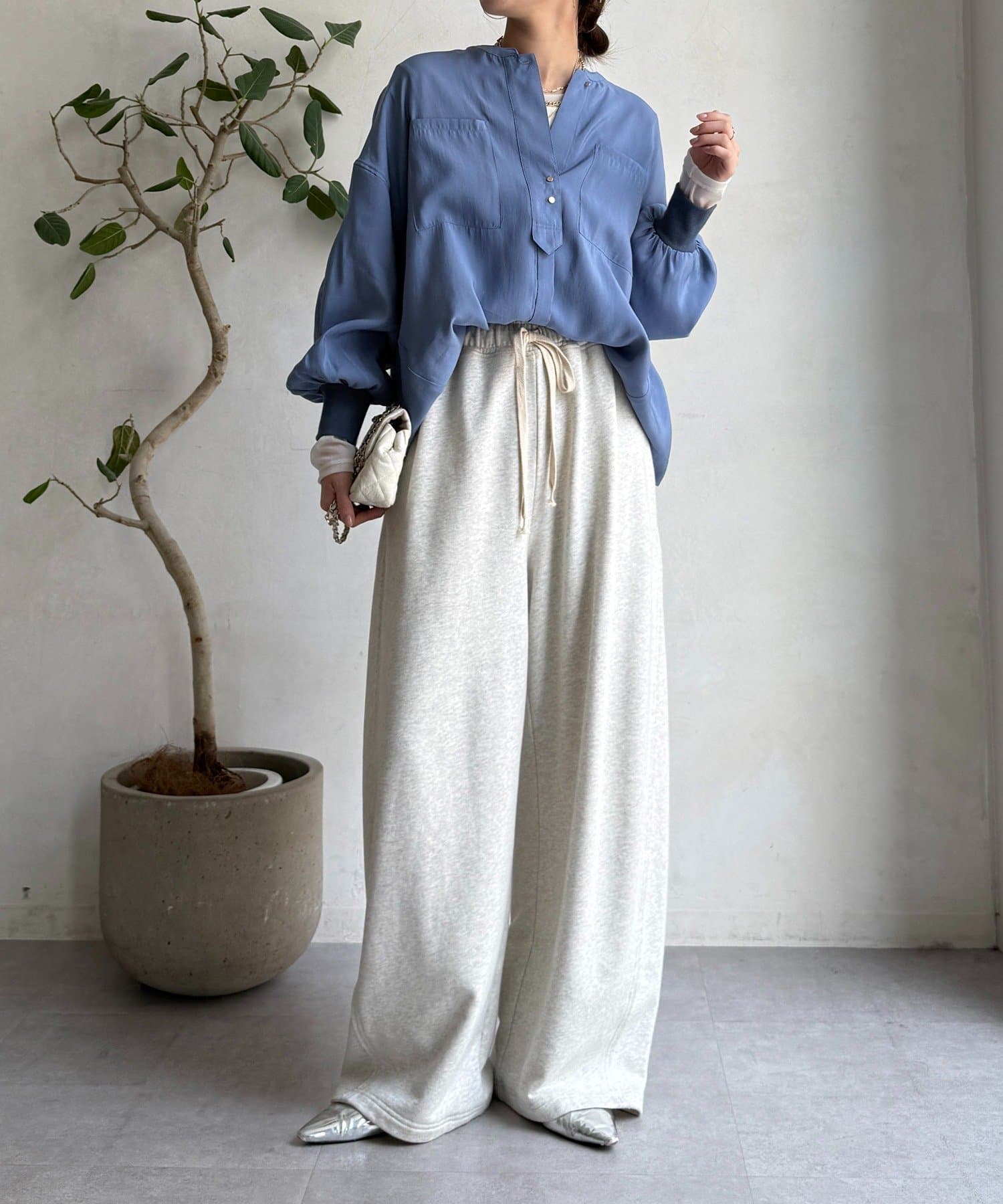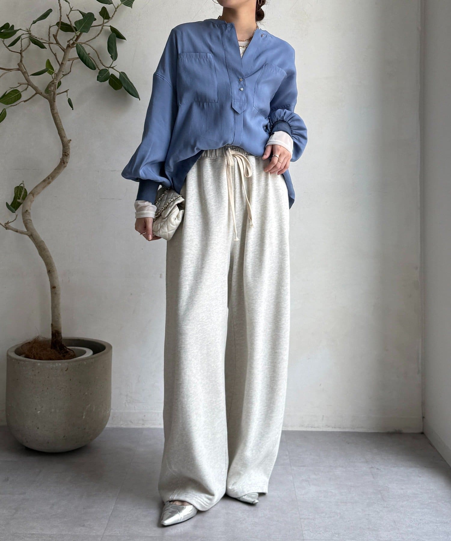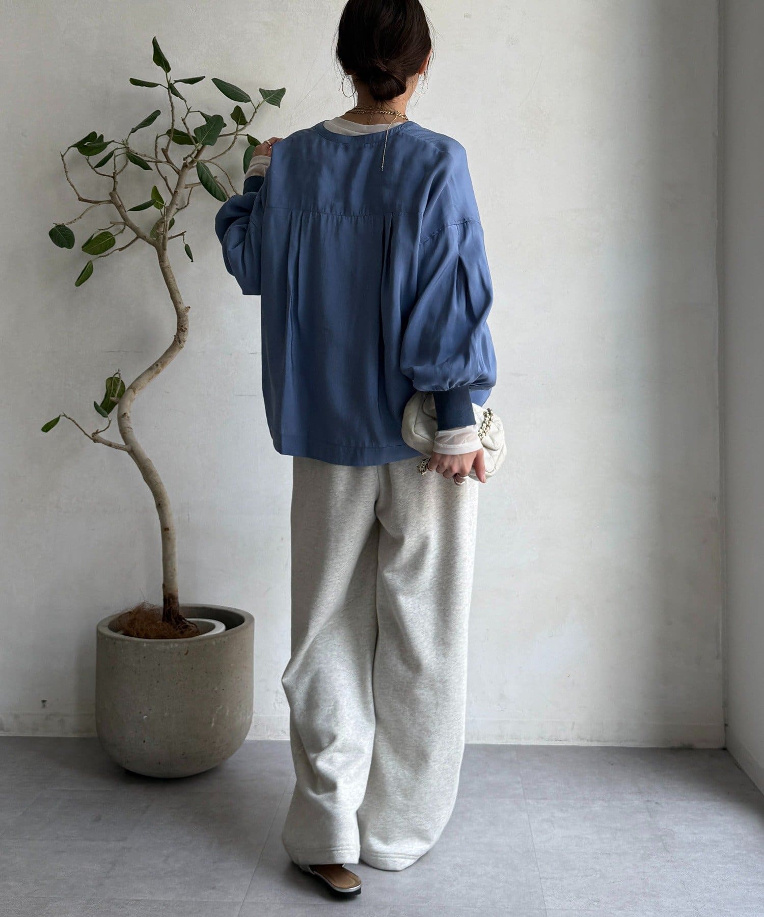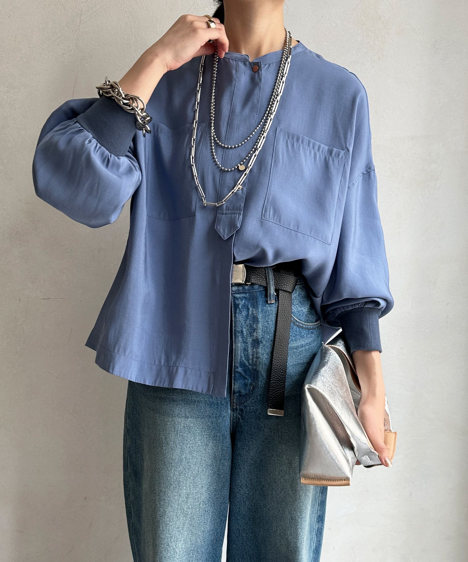 ブルーなので透け感はないので、1枚でさらっと着られます。