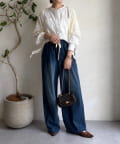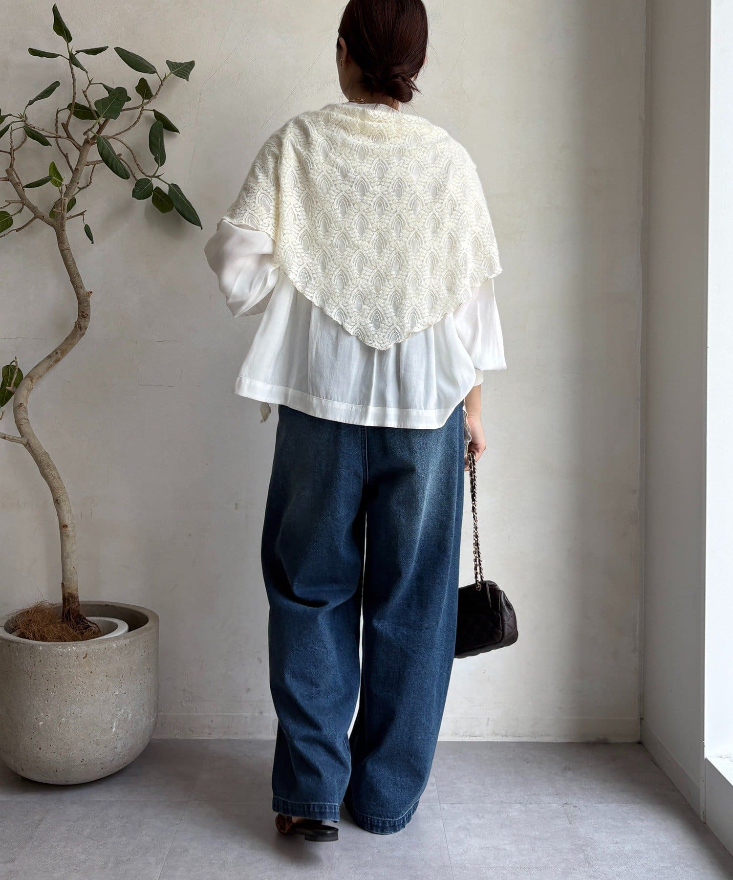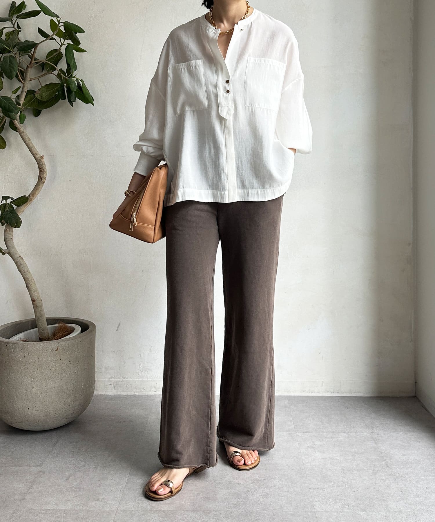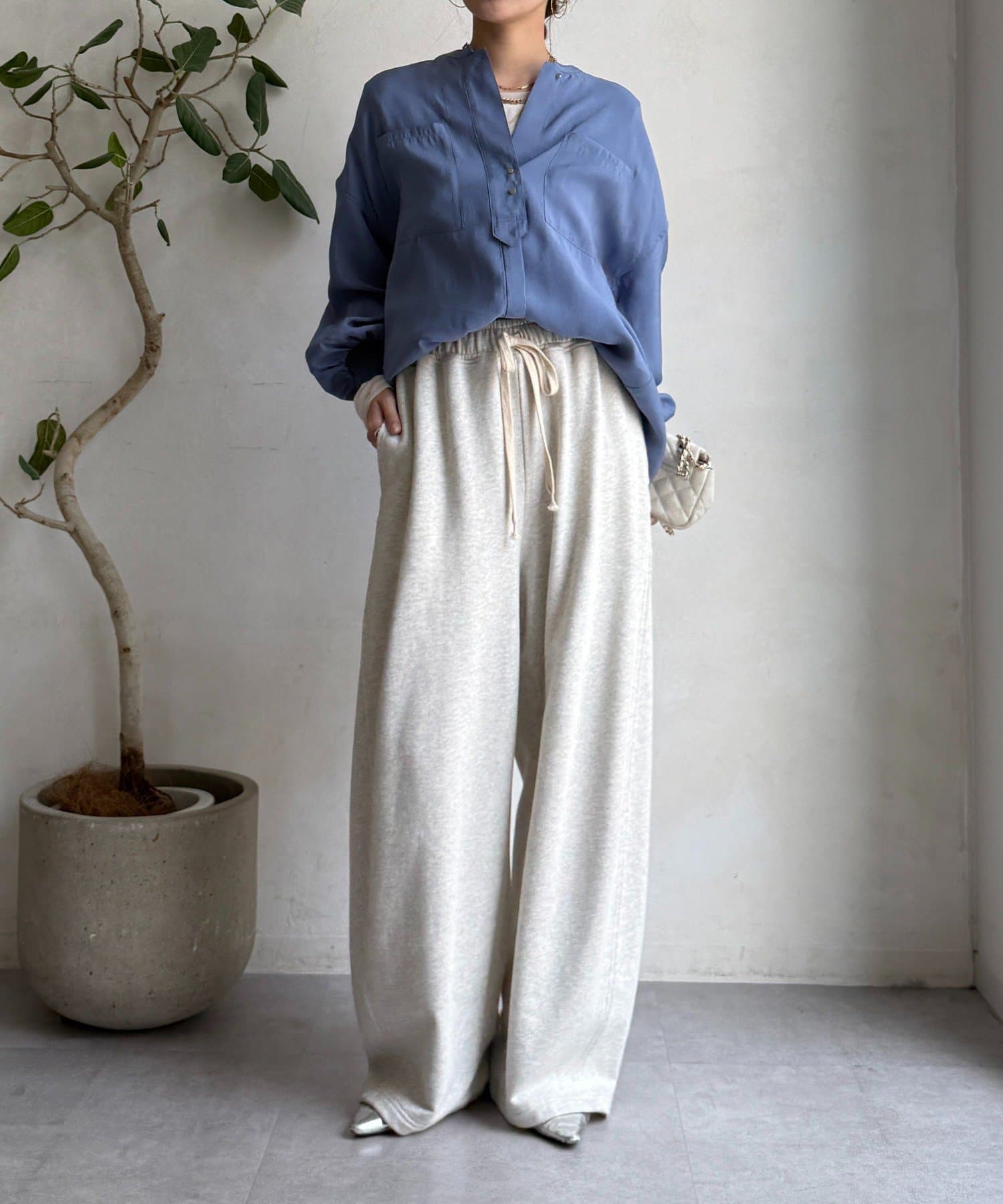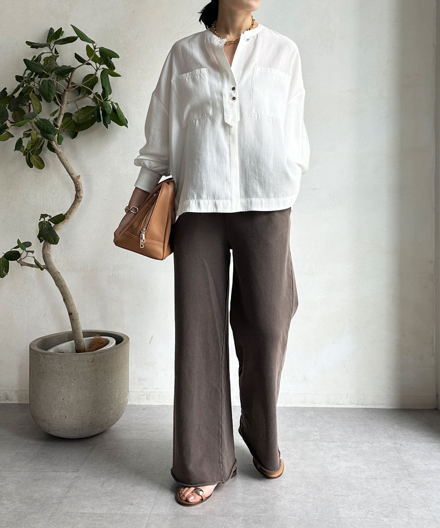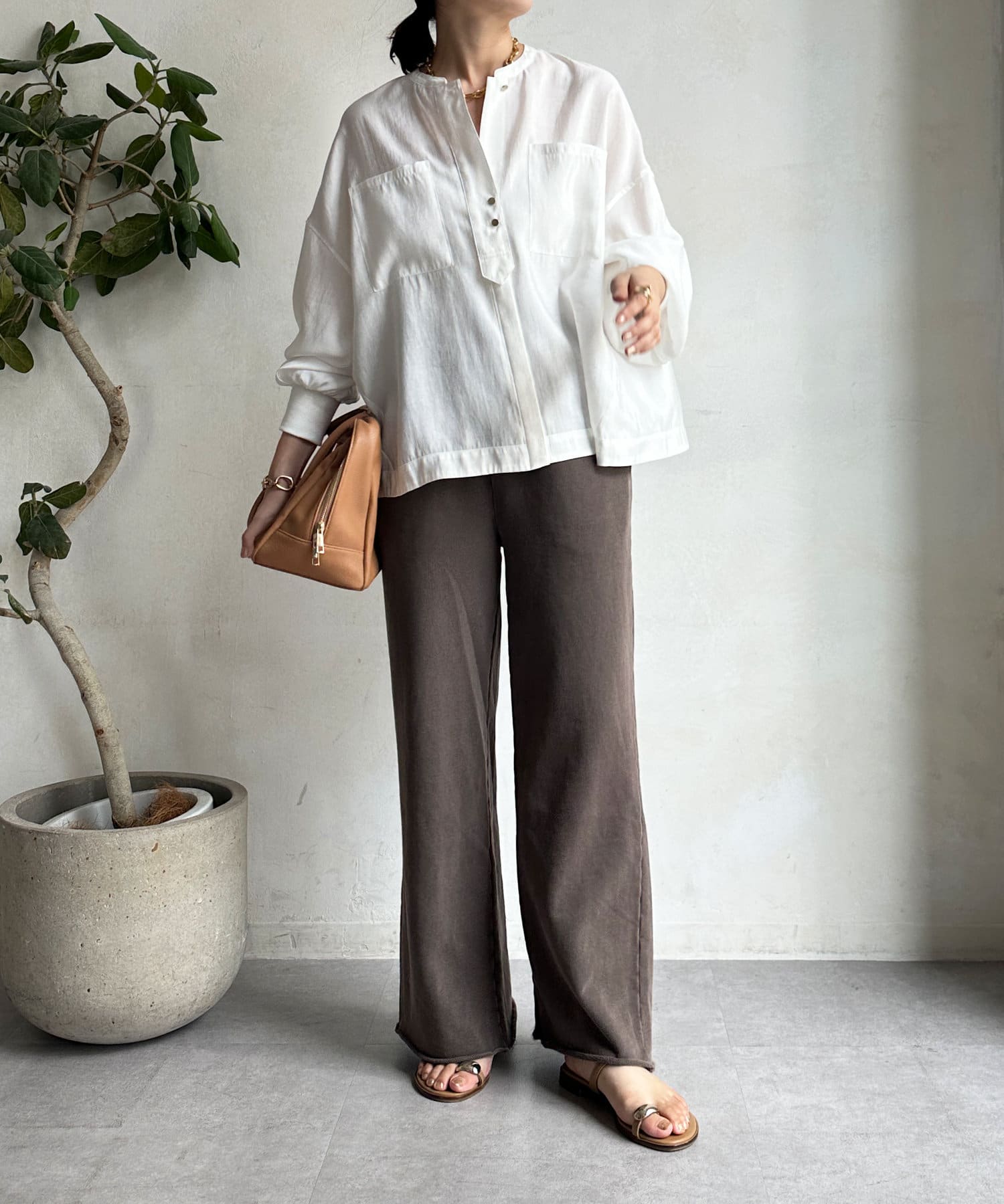 ブルーなので透け感はないので、1枚でさらっと着られます。