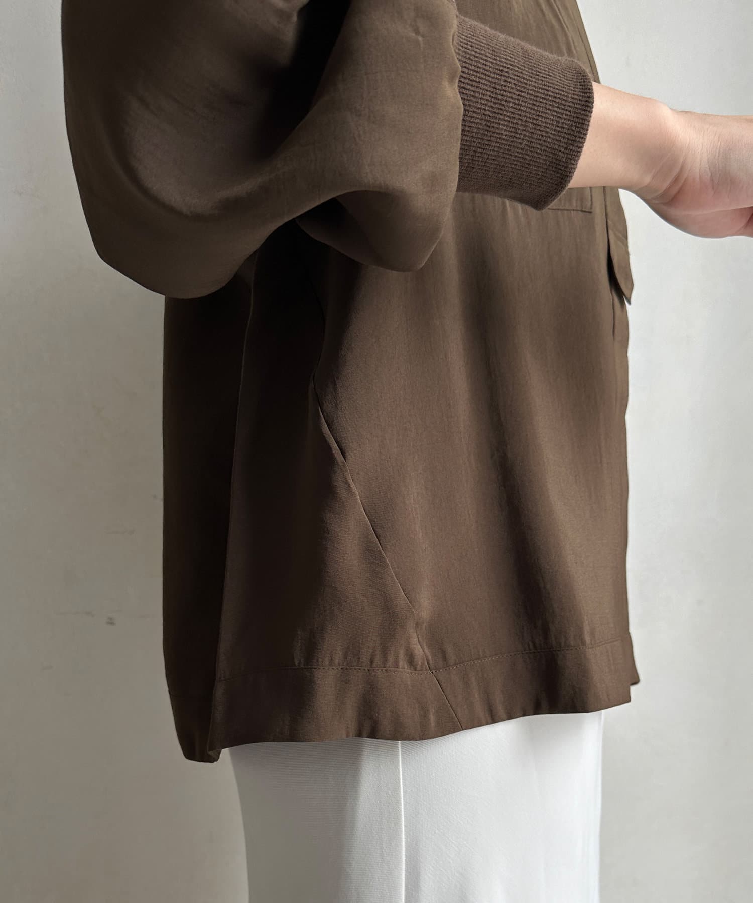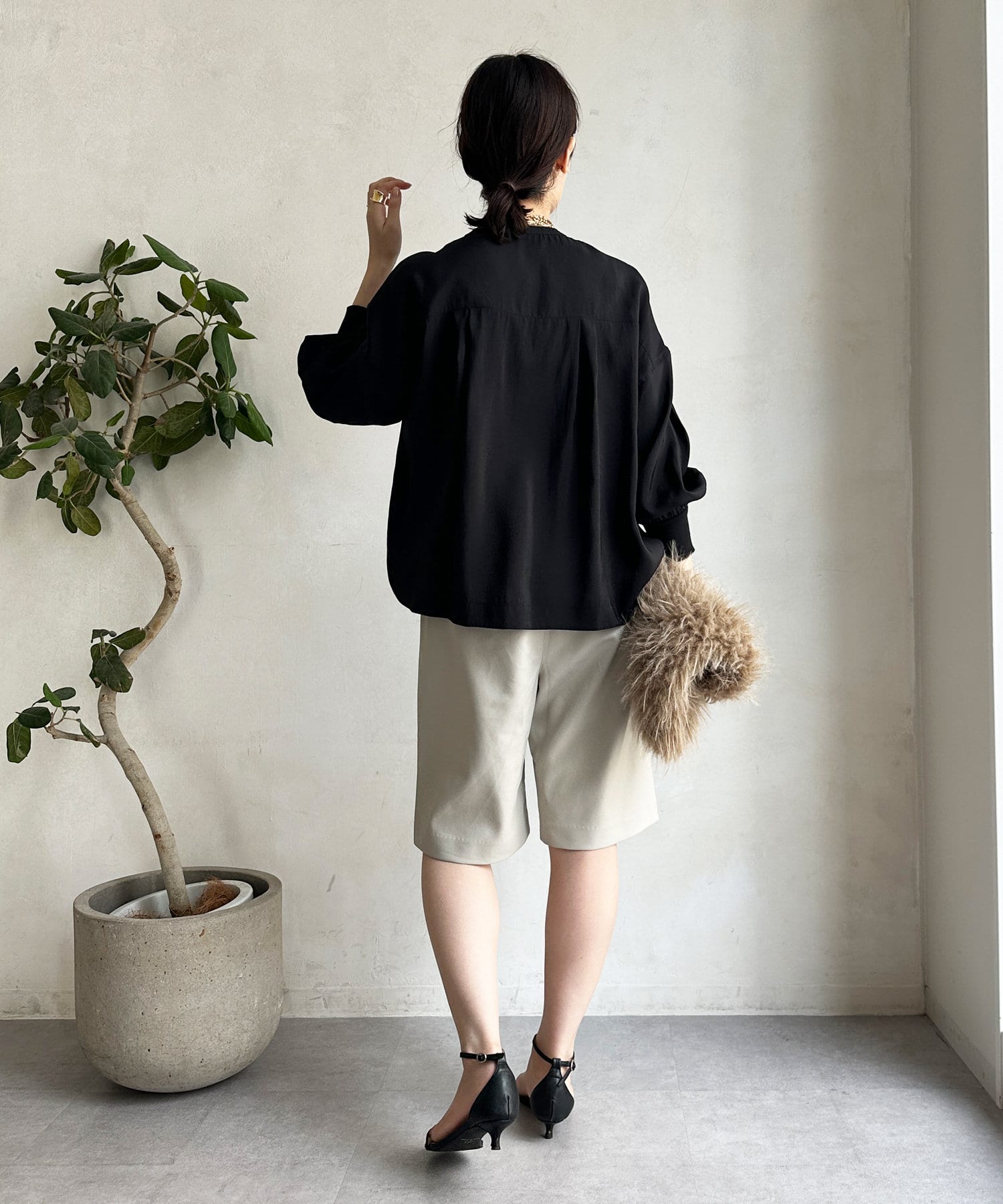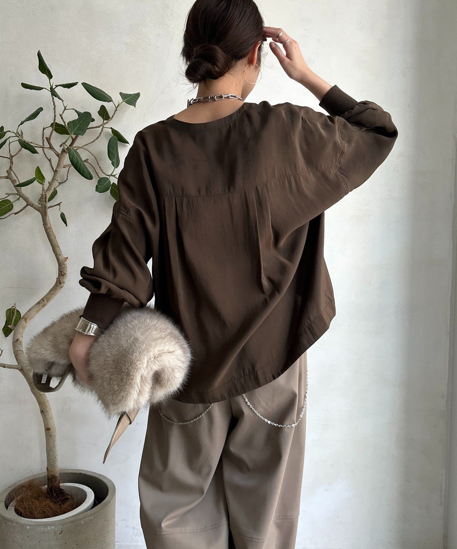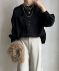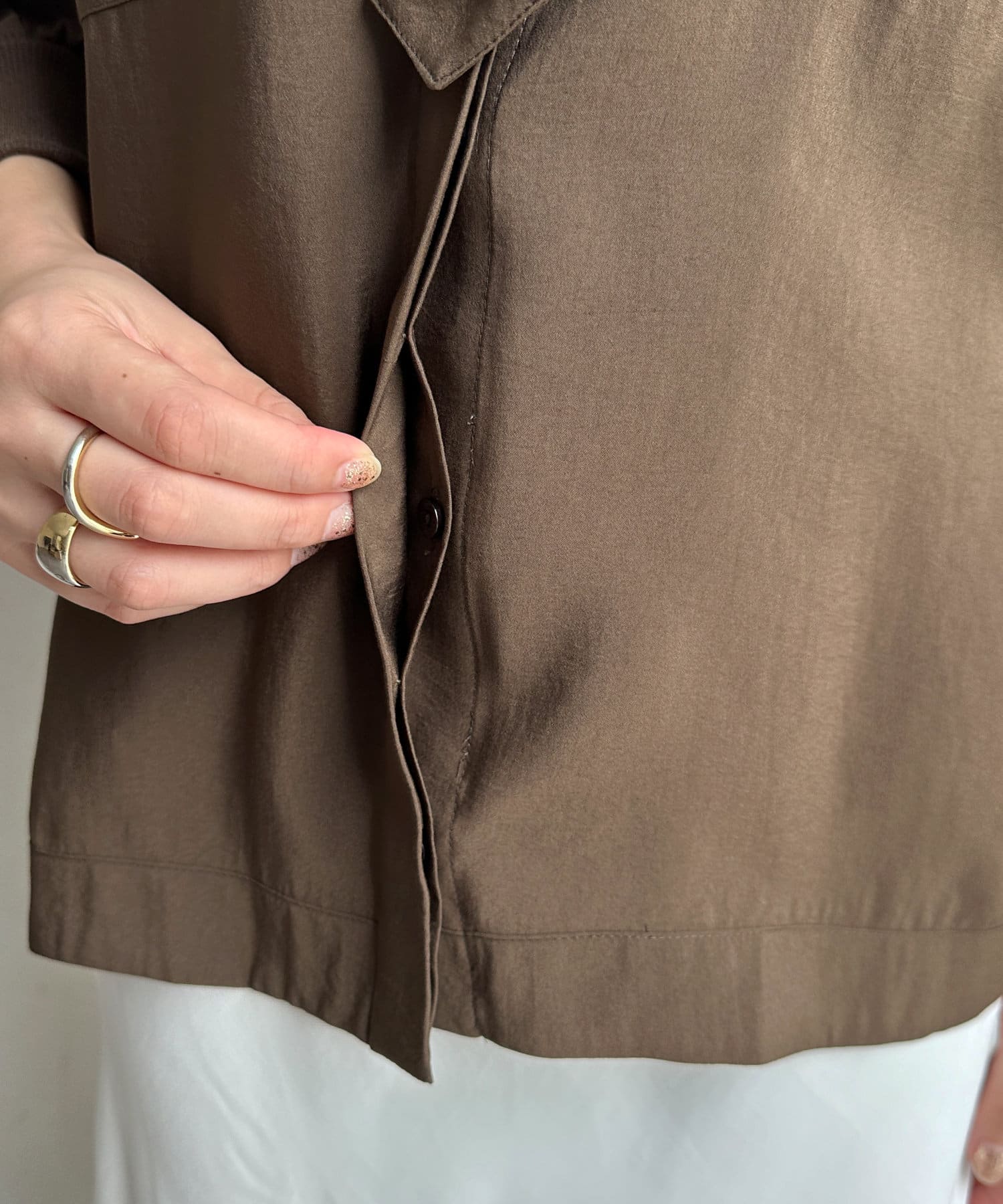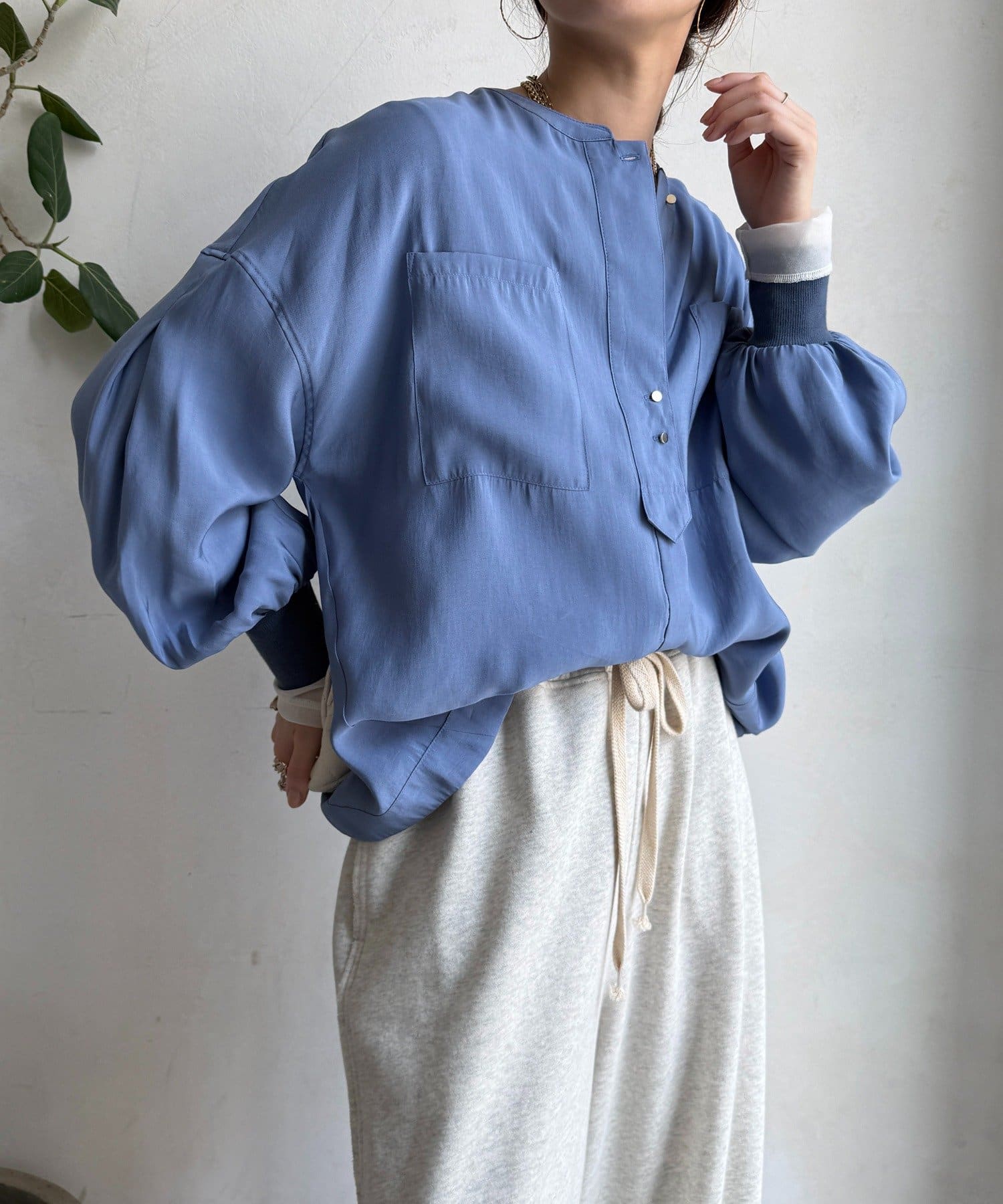 TOP > DOUDOU > レディース > トップス > シャツ/ブラウス(ボタン) > 【完売カラー再追加!/新色追加】リブブルゾン風シャツ