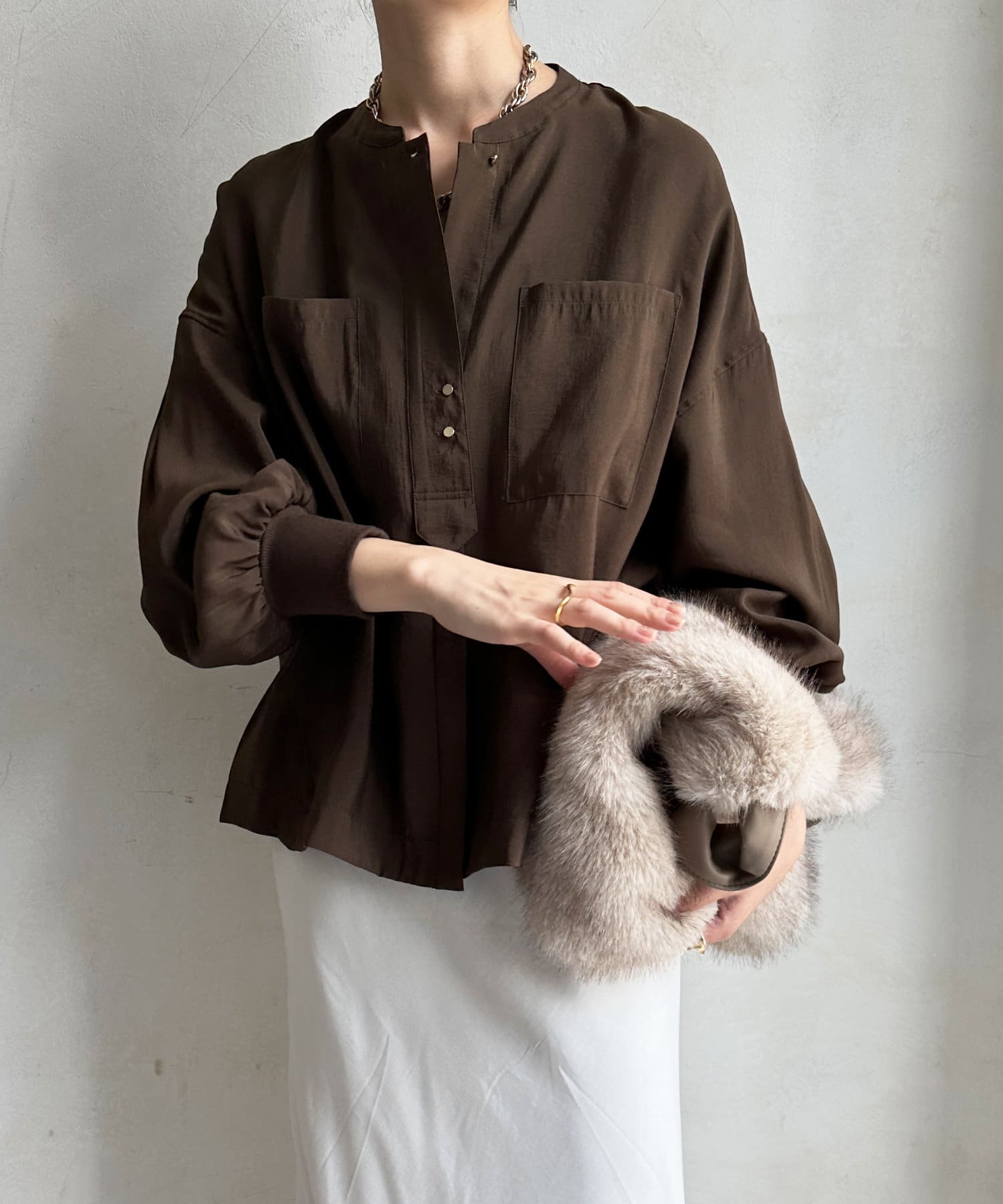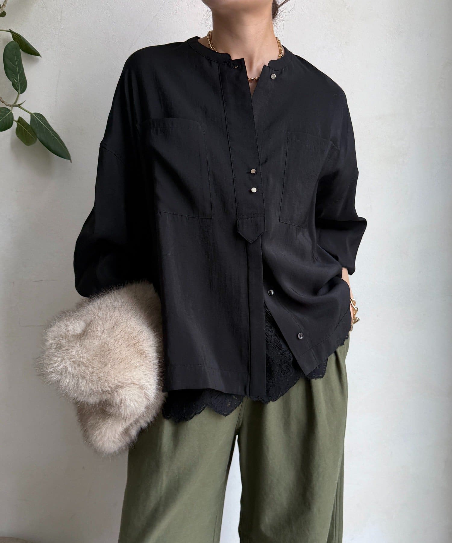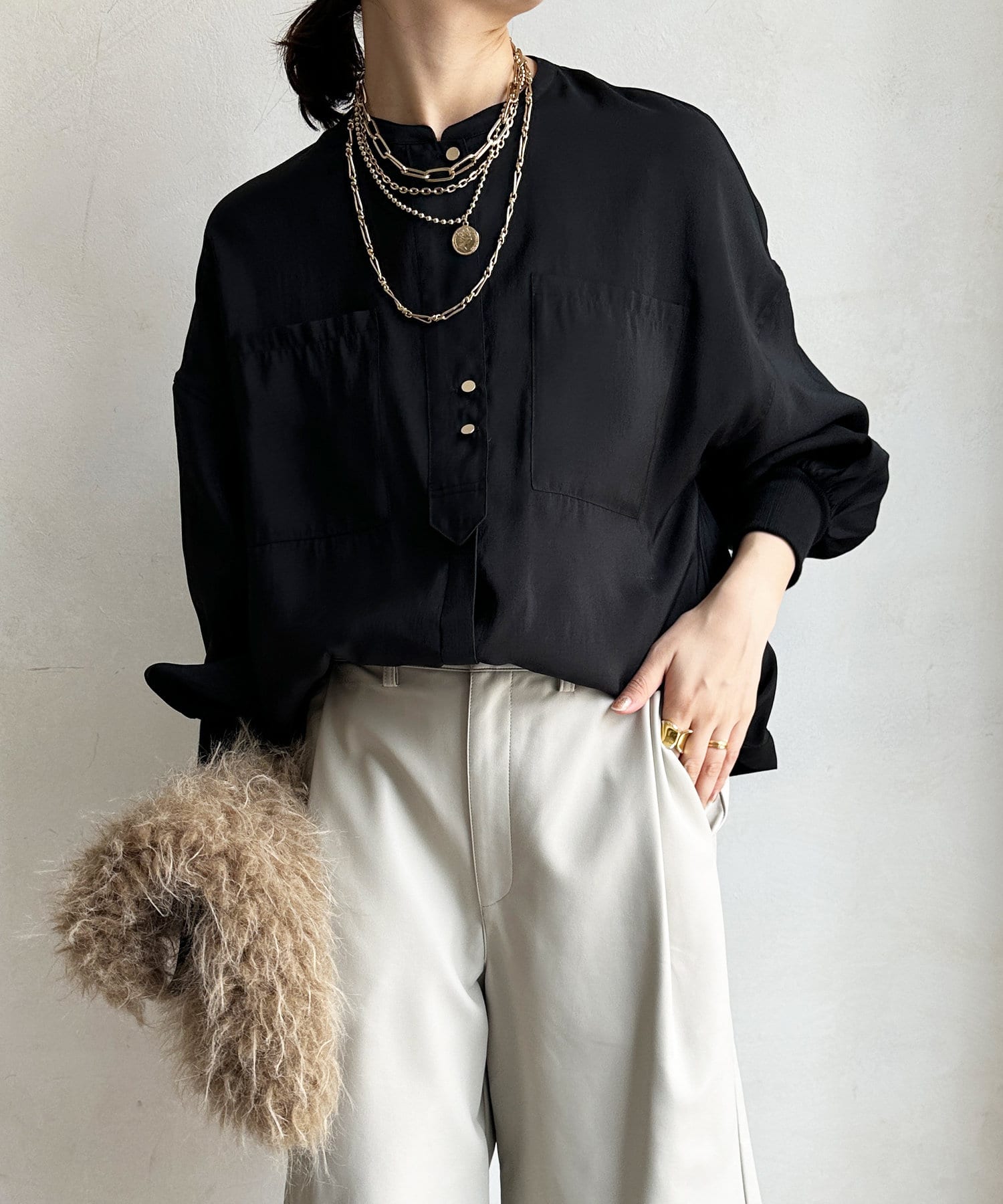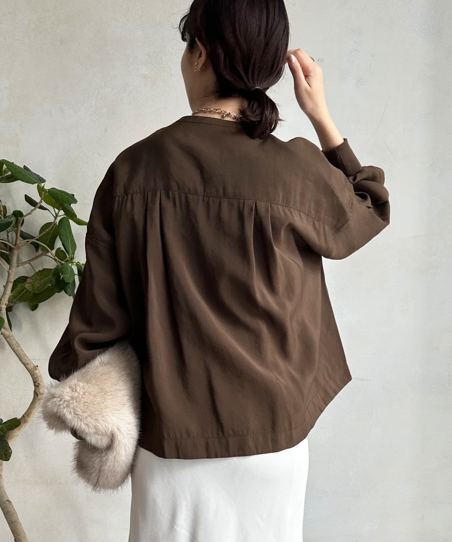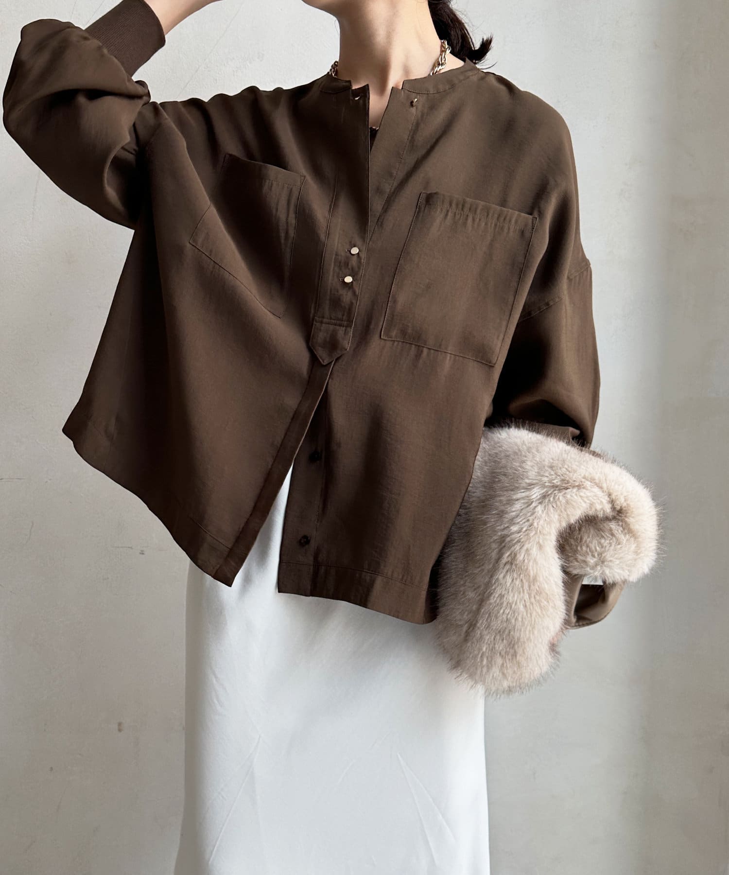 TOP > DOUDOU > レディース > トップス > シャツ/ブラウス(ボタン) > 【完売カラー再追加!/新色追加】リブブルゾン風シャツ