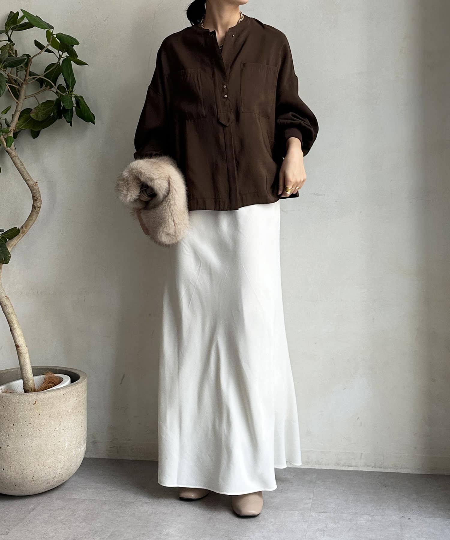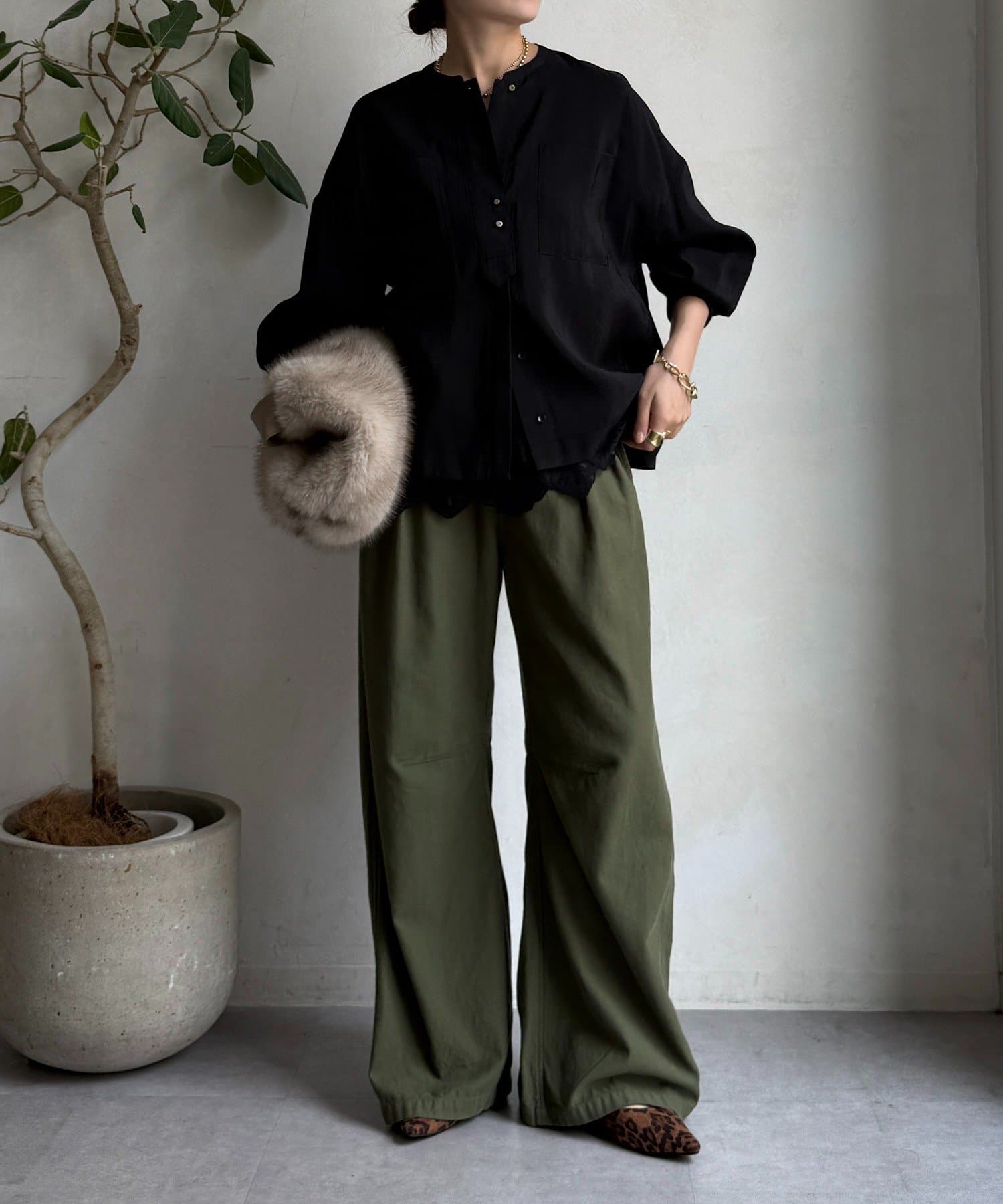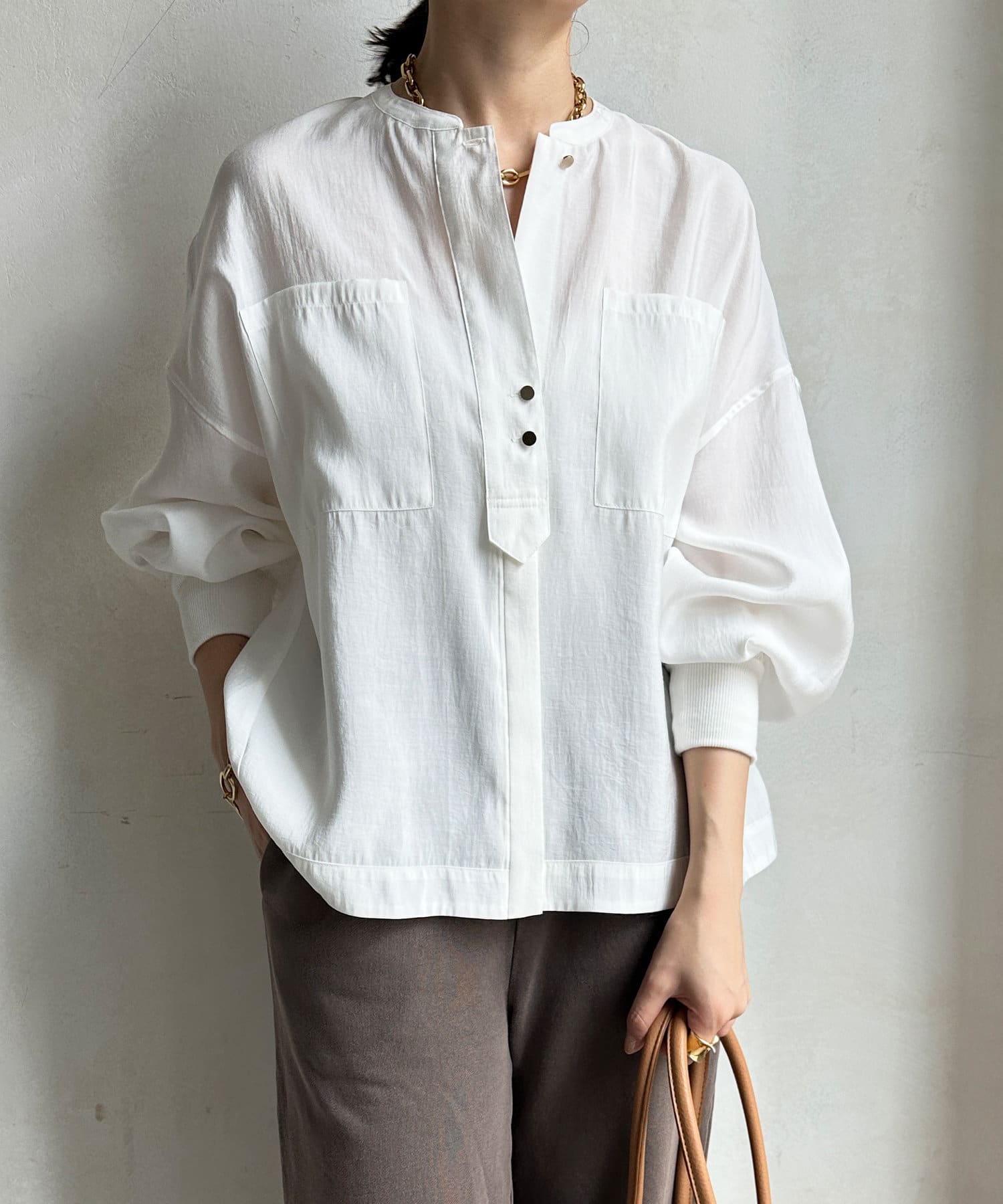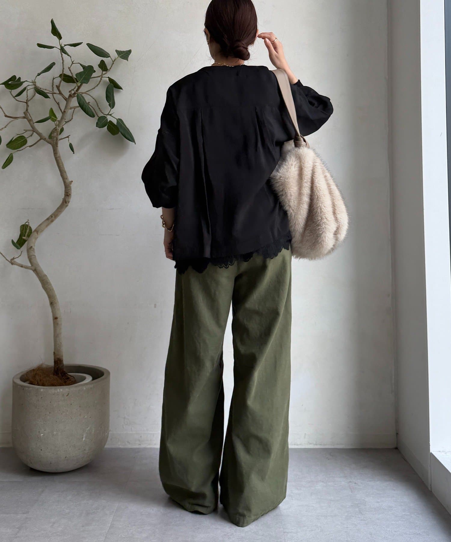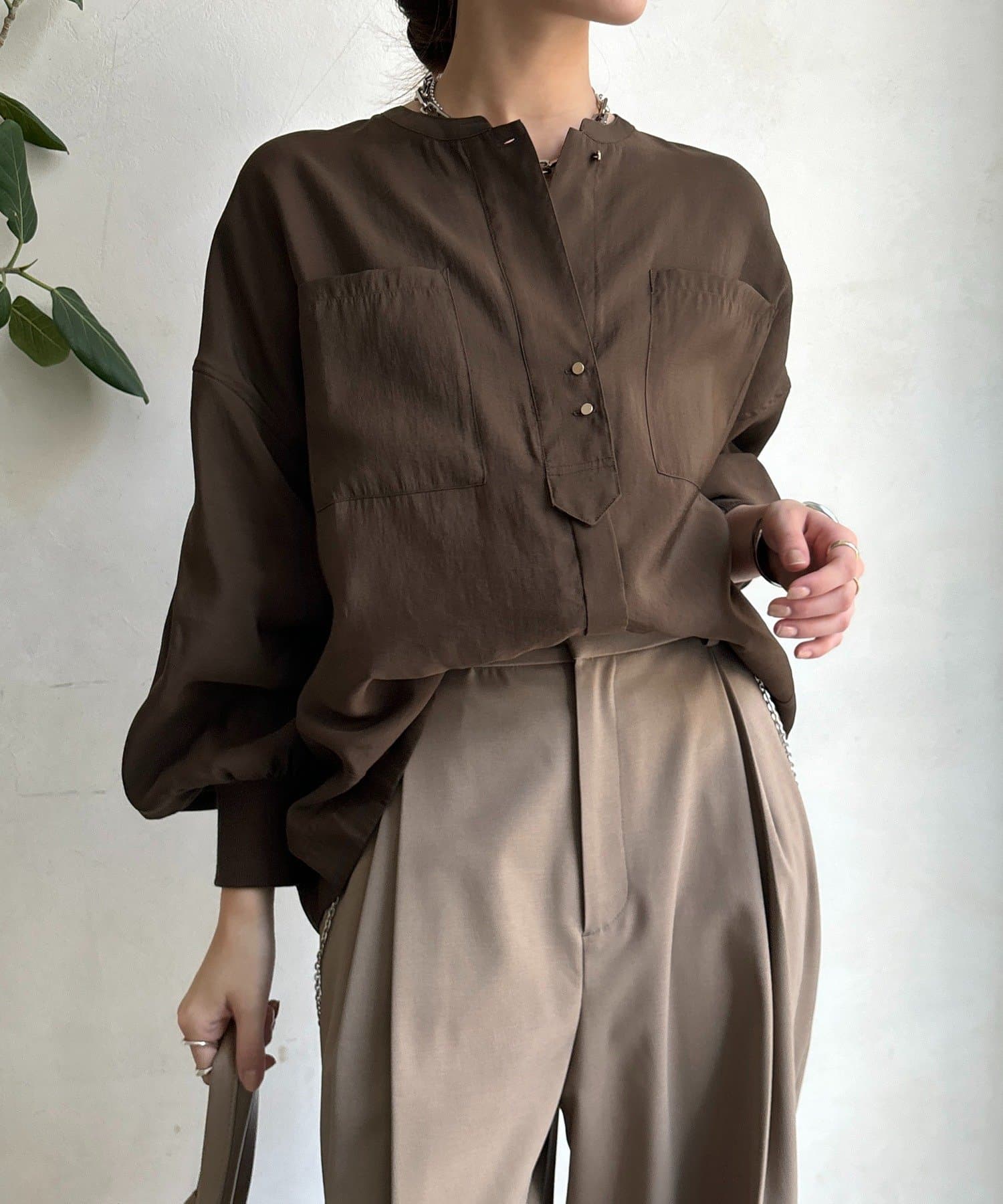 TOP > DOUDOU > レディース > トップス > シャツ/ブラウス(ボタン) > 【完売カラー再追加!/新色追加】リブブルゾン風シャツ