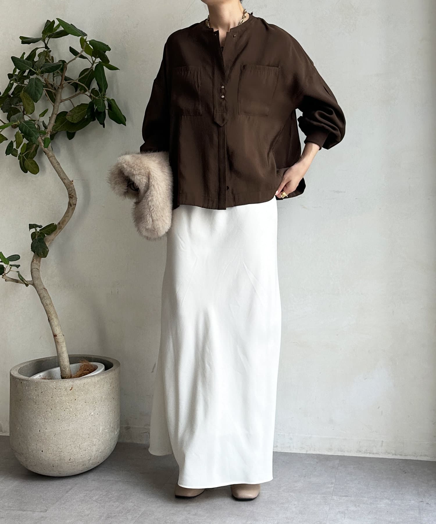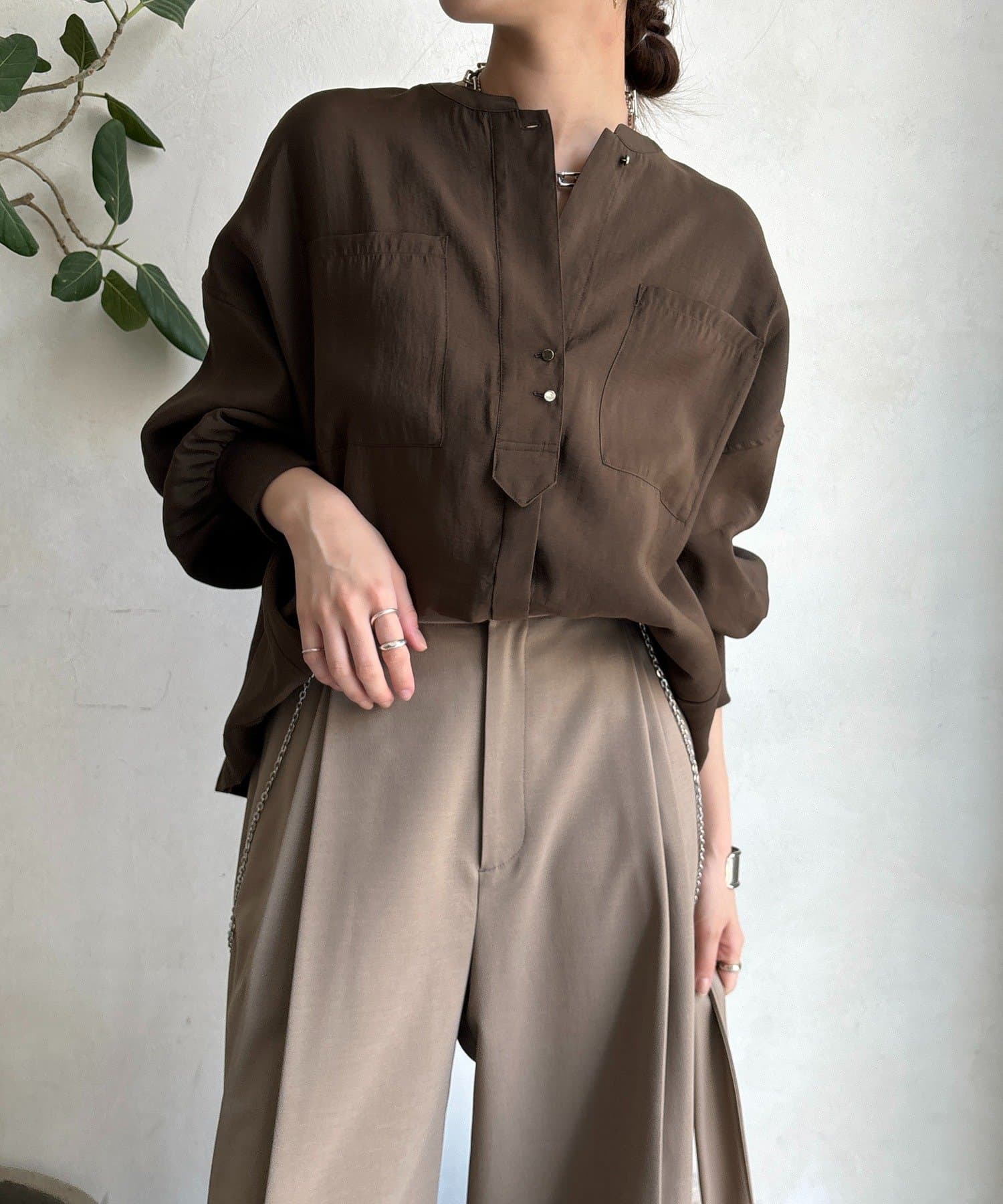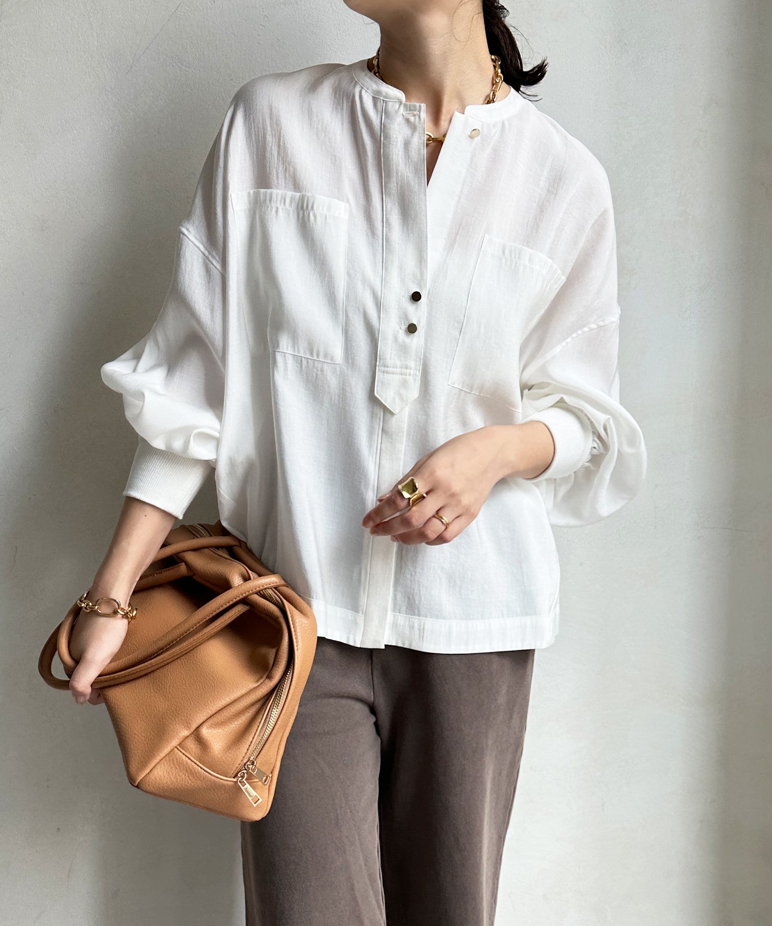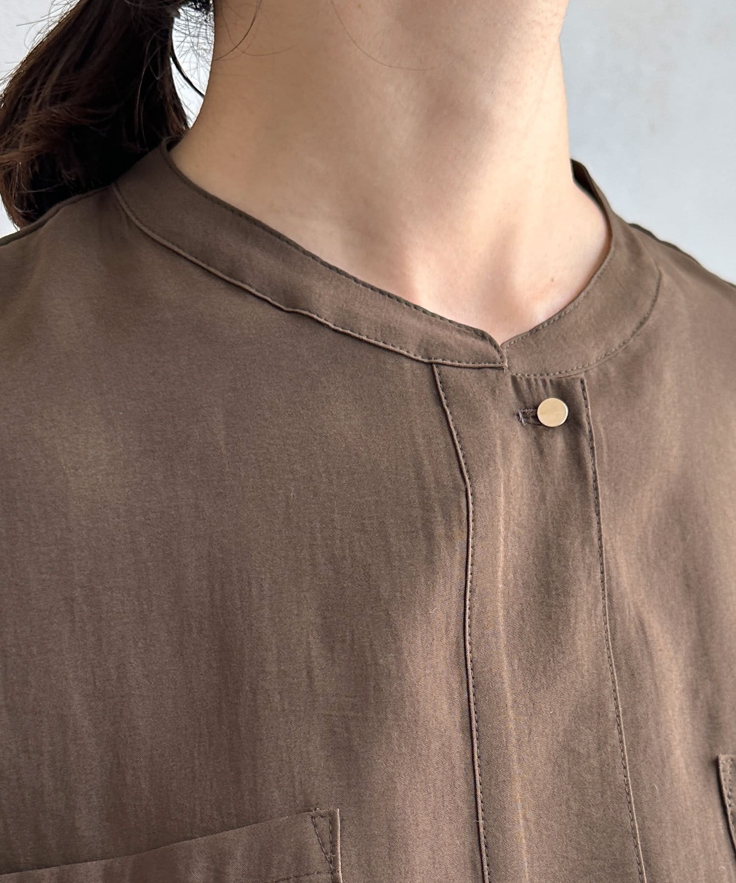 フロントのボタンデザインや大きめの胸ポケットなど、シンプルながらもこだわりの詰まった1着です。