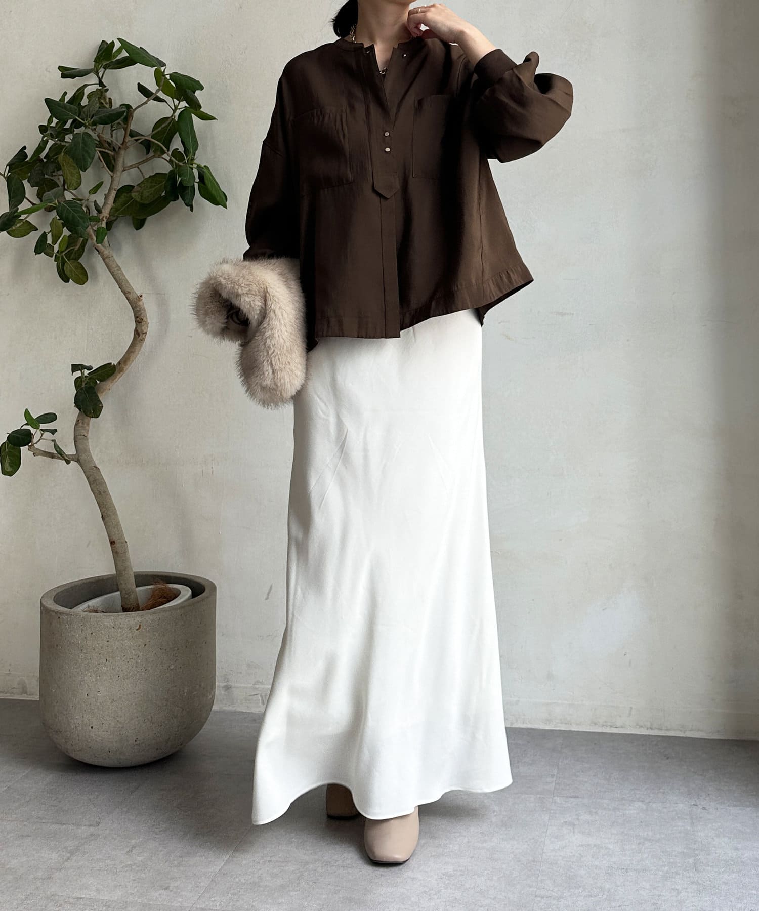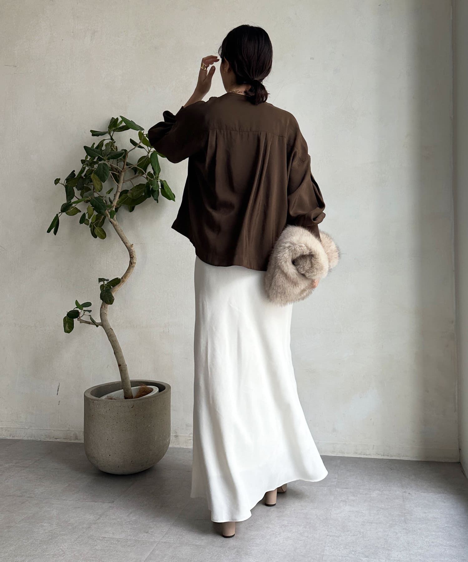 バックにはタックデザインをプラスすることで、綺麗なシルエットを作り上げてくれますよ。
