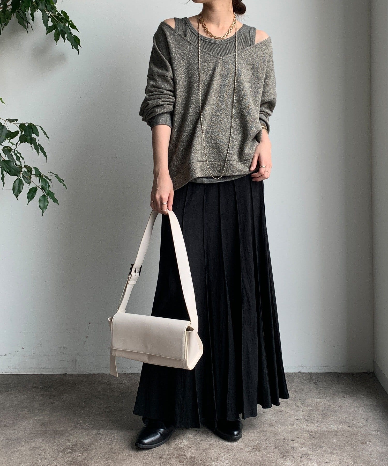 シンプルなカットソーなどとのスタイリングもしっかりとおしゃれ見えする、華やかなアイテムですよ。