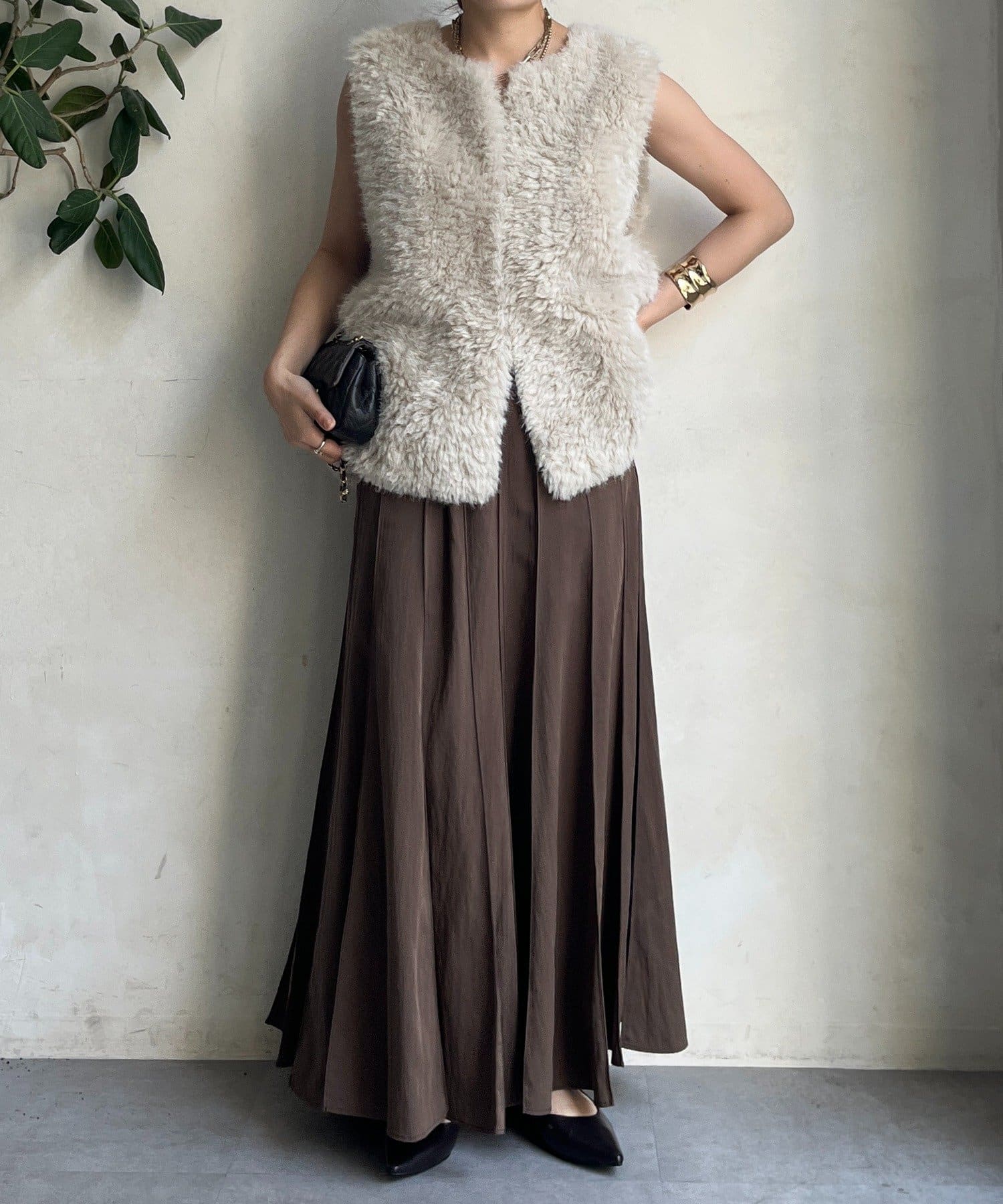 パネルプリーツのデザインが新鮮で、気分上がる1着。