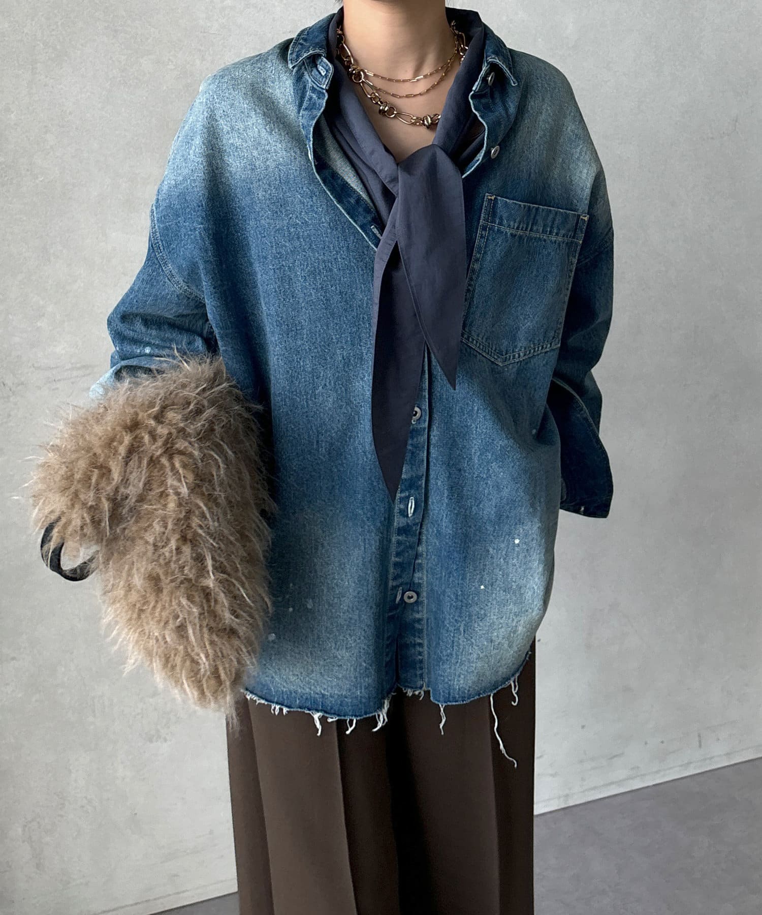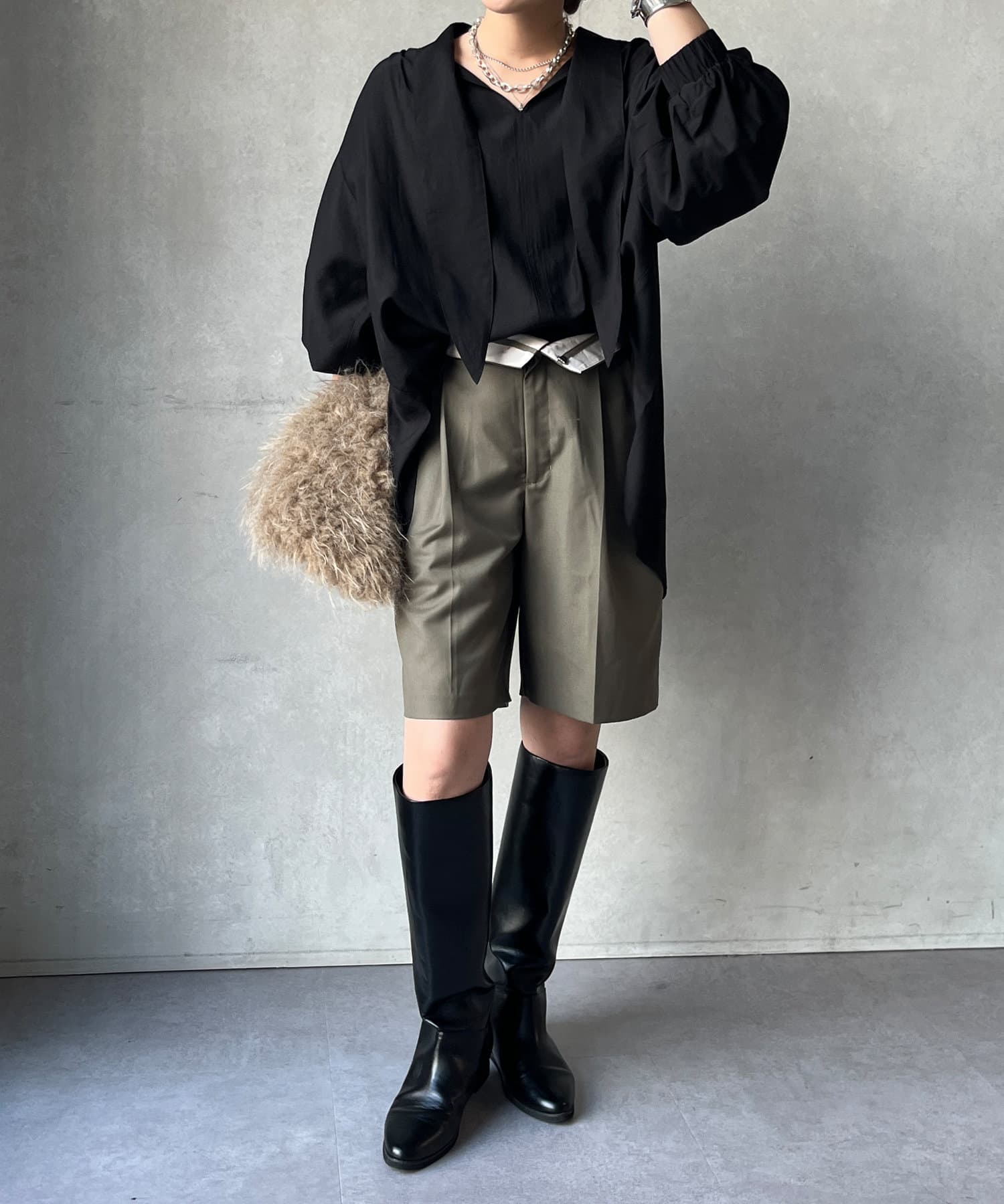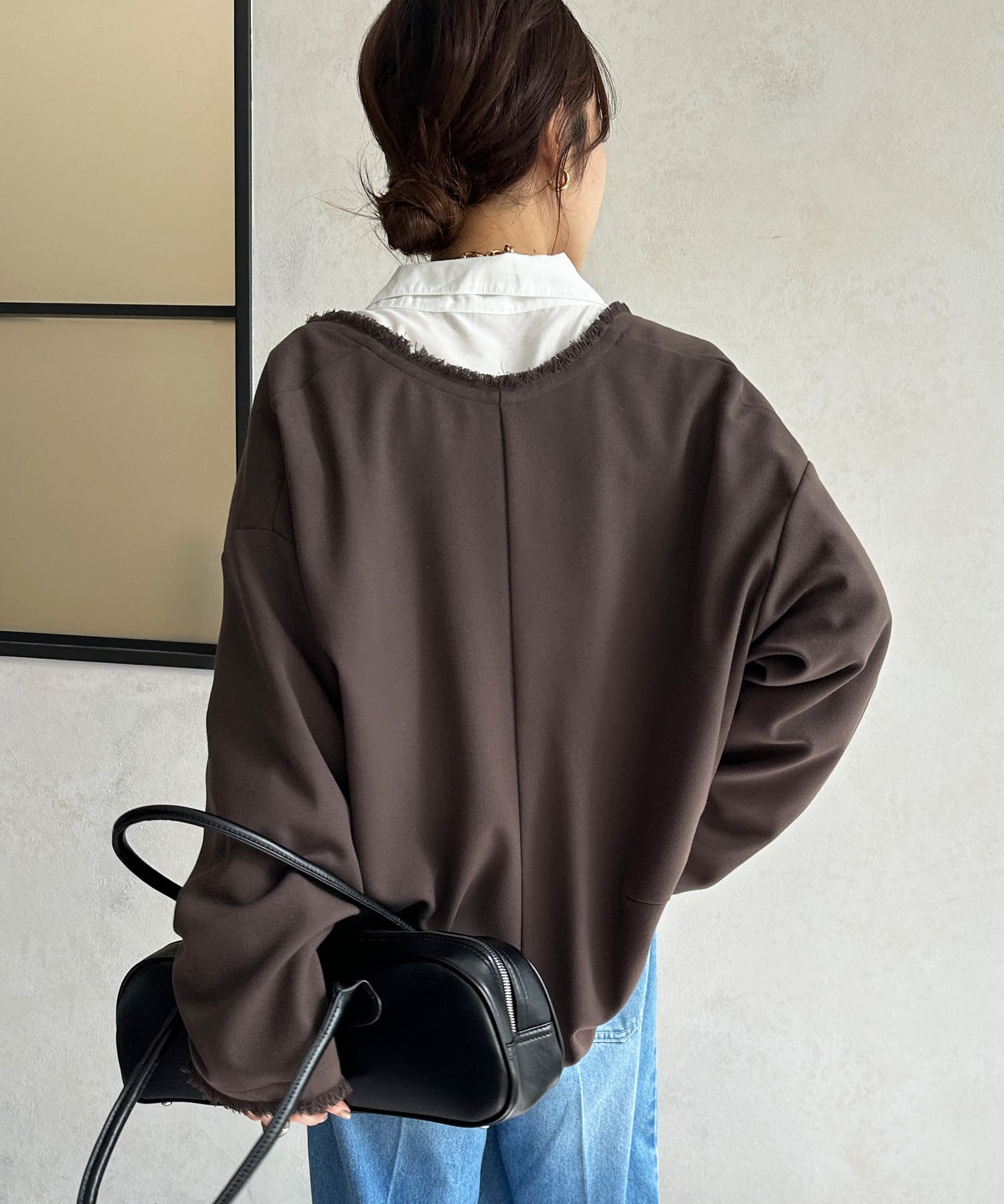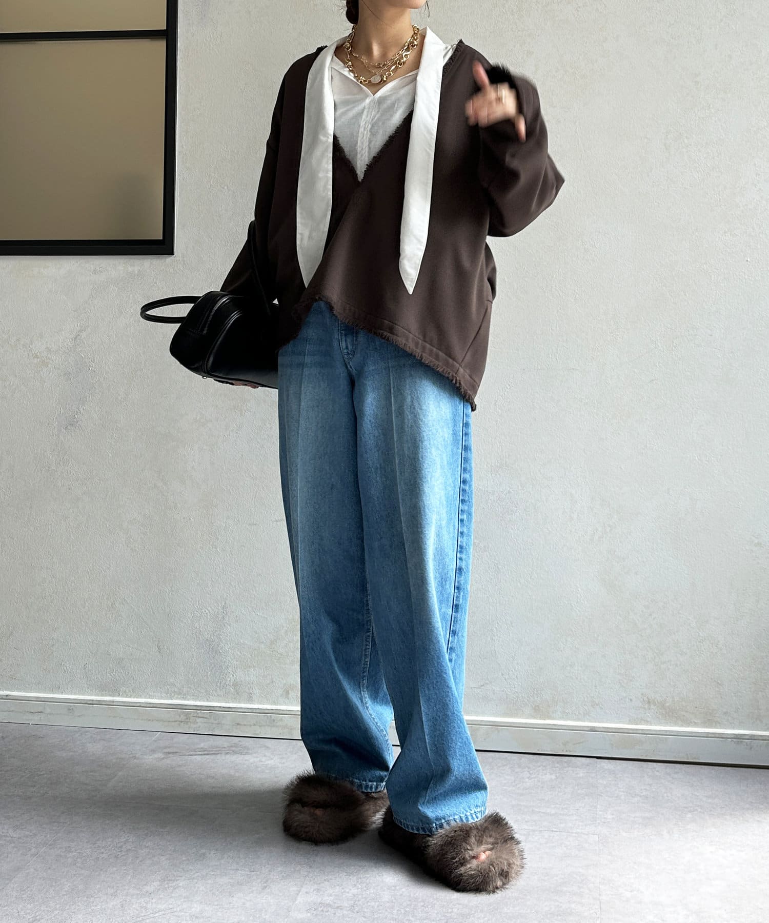 カーディガンやニットなどとのレイヤードスタイルも素敵ですよ。