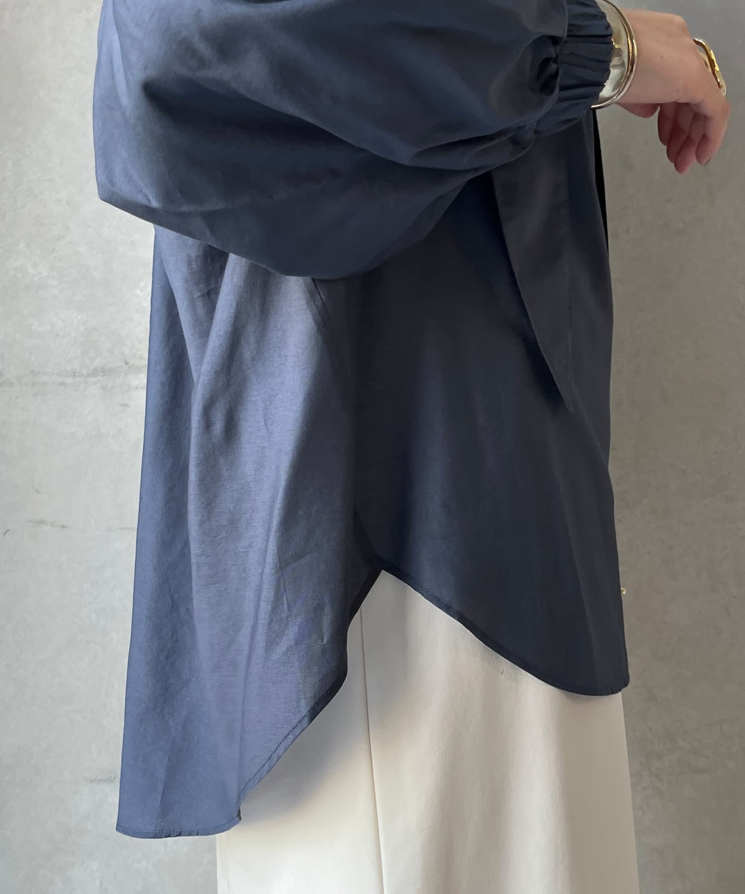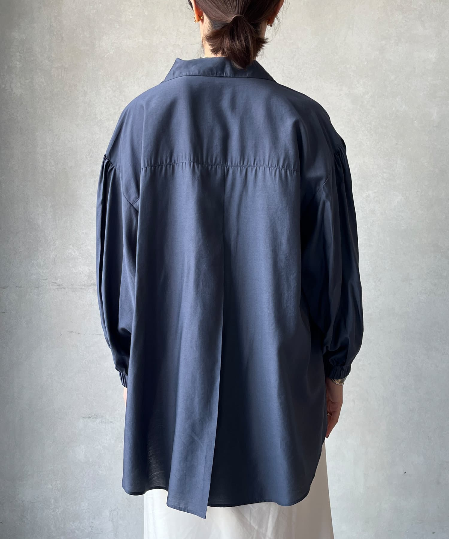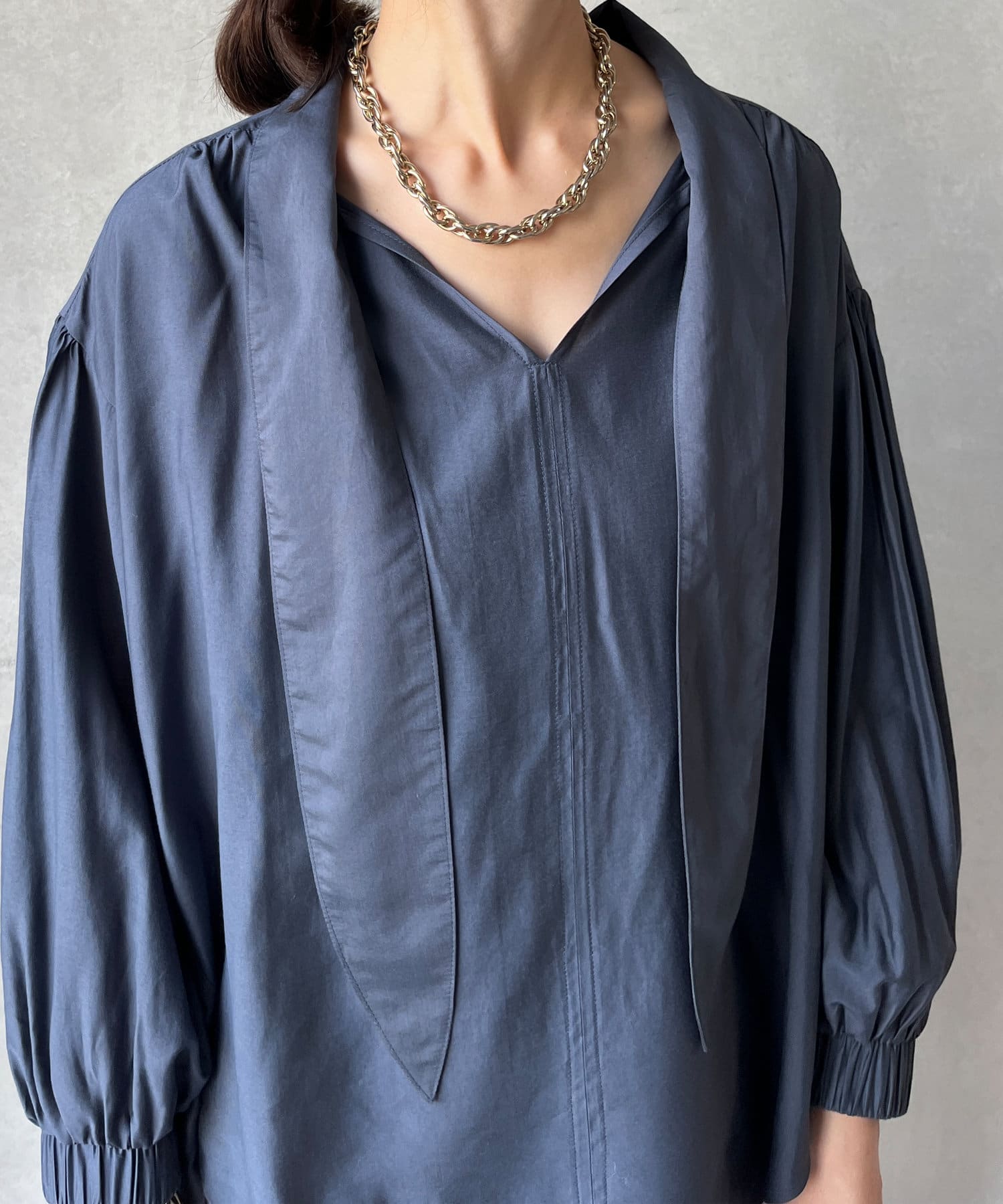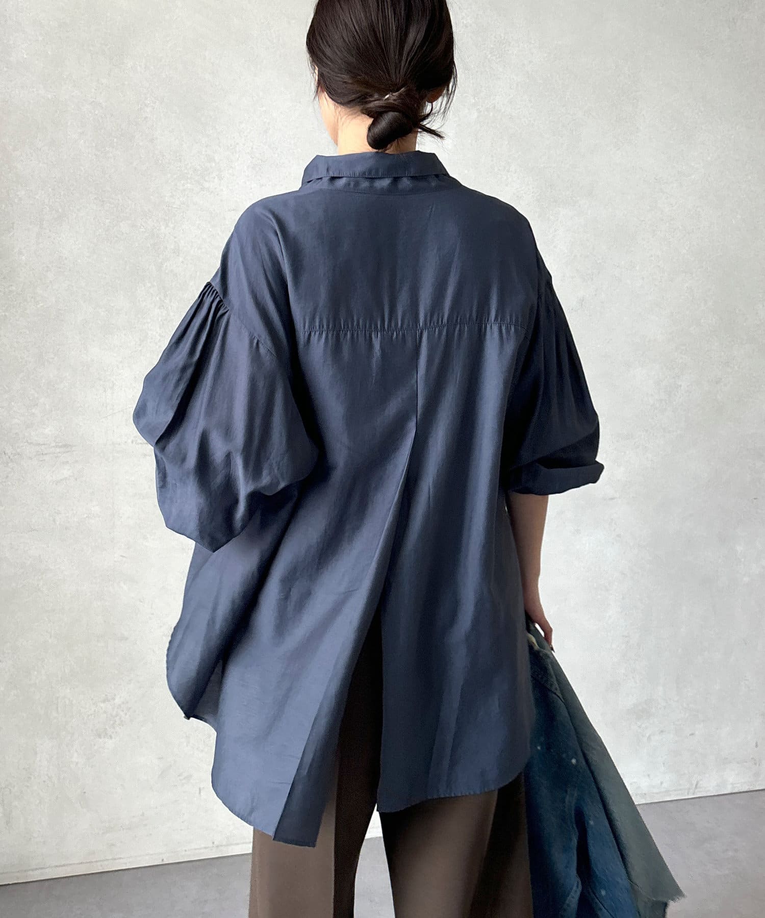 ボリューム感のあるスリーブや、ショルダー・バックのギャザーデザインなど、細かなディティールがおしゃれ感を与え、胸元はスキッパーデザインにすることで、すっきりとした印象をプラス。