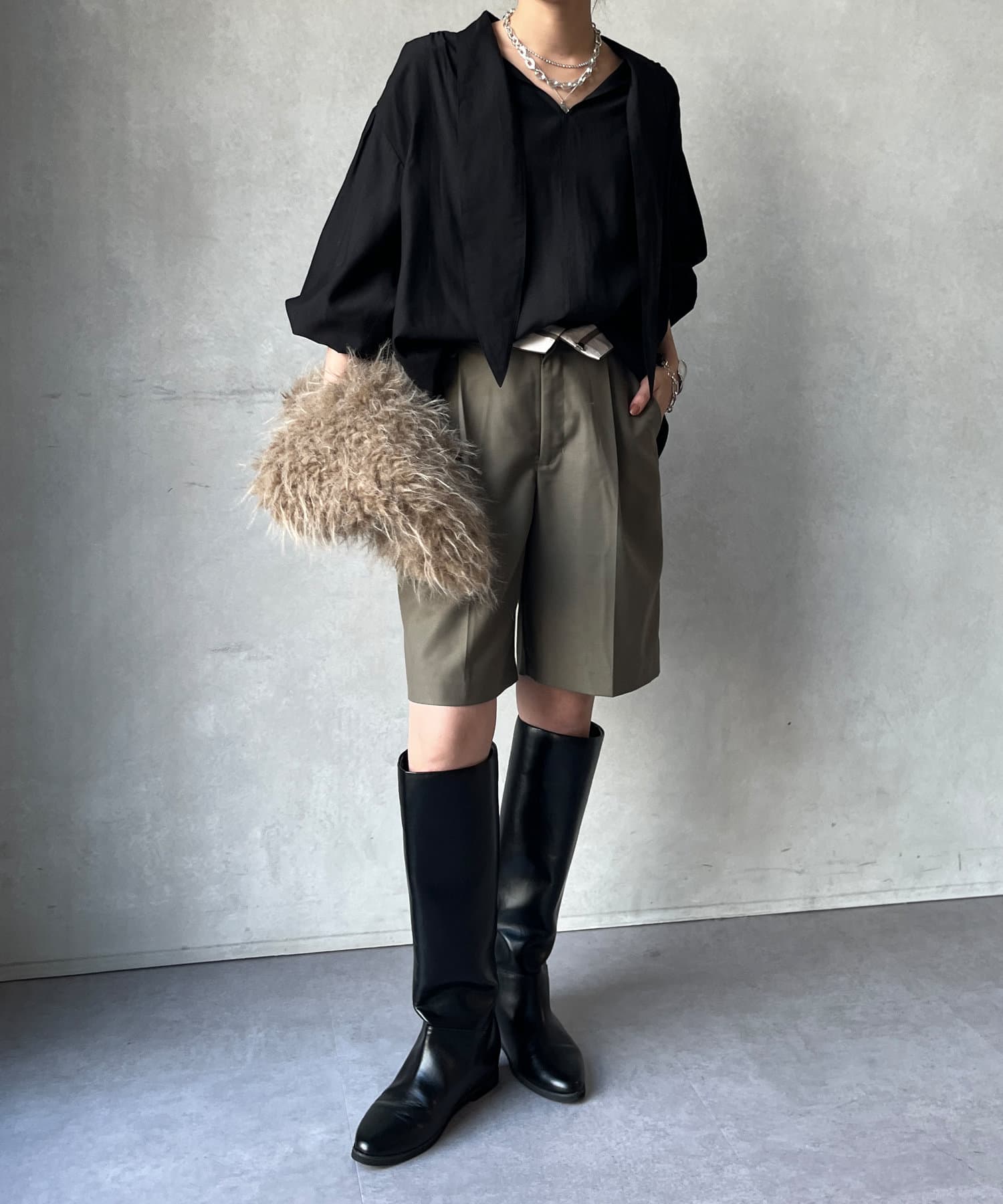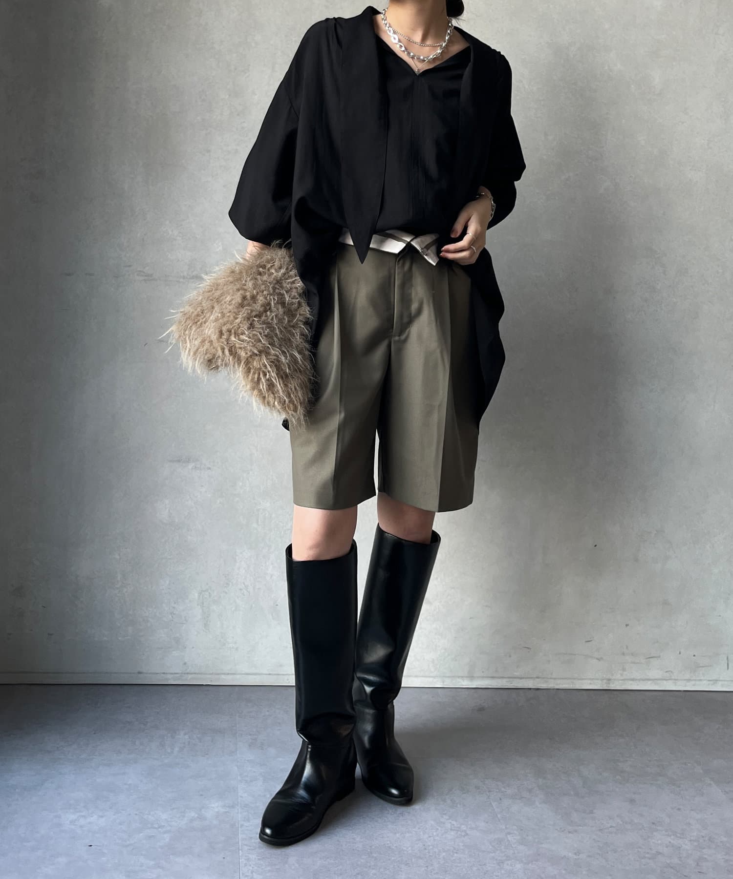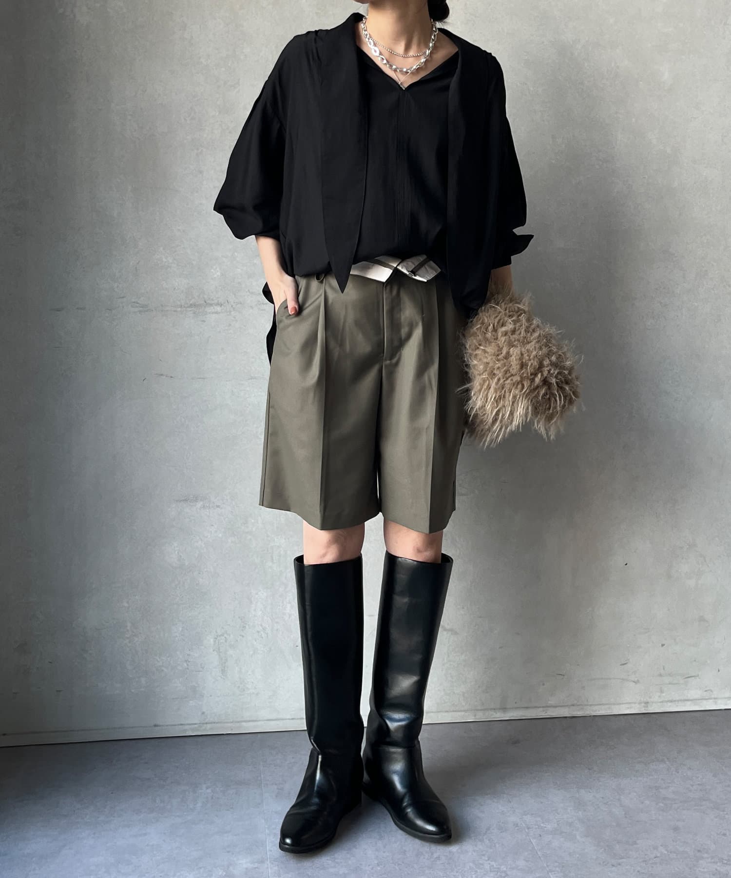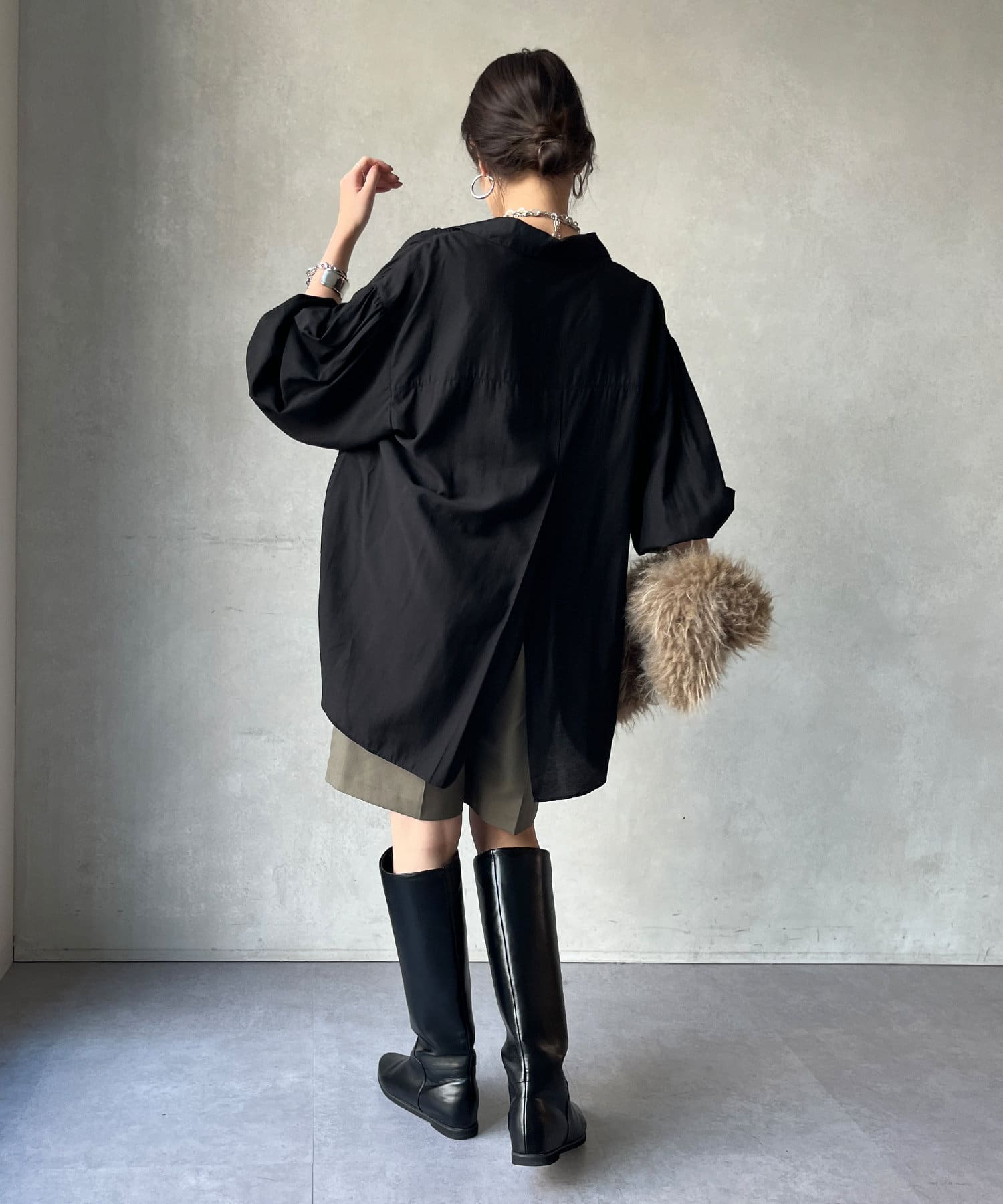 ボリューム感のあるスリーブや、ショルダー・バックのギャザーデザインなど、細かなディティールがおしゃれ感を与え、胸元はスキッパーデザインにすることで、すっきりとした印象をプラス。