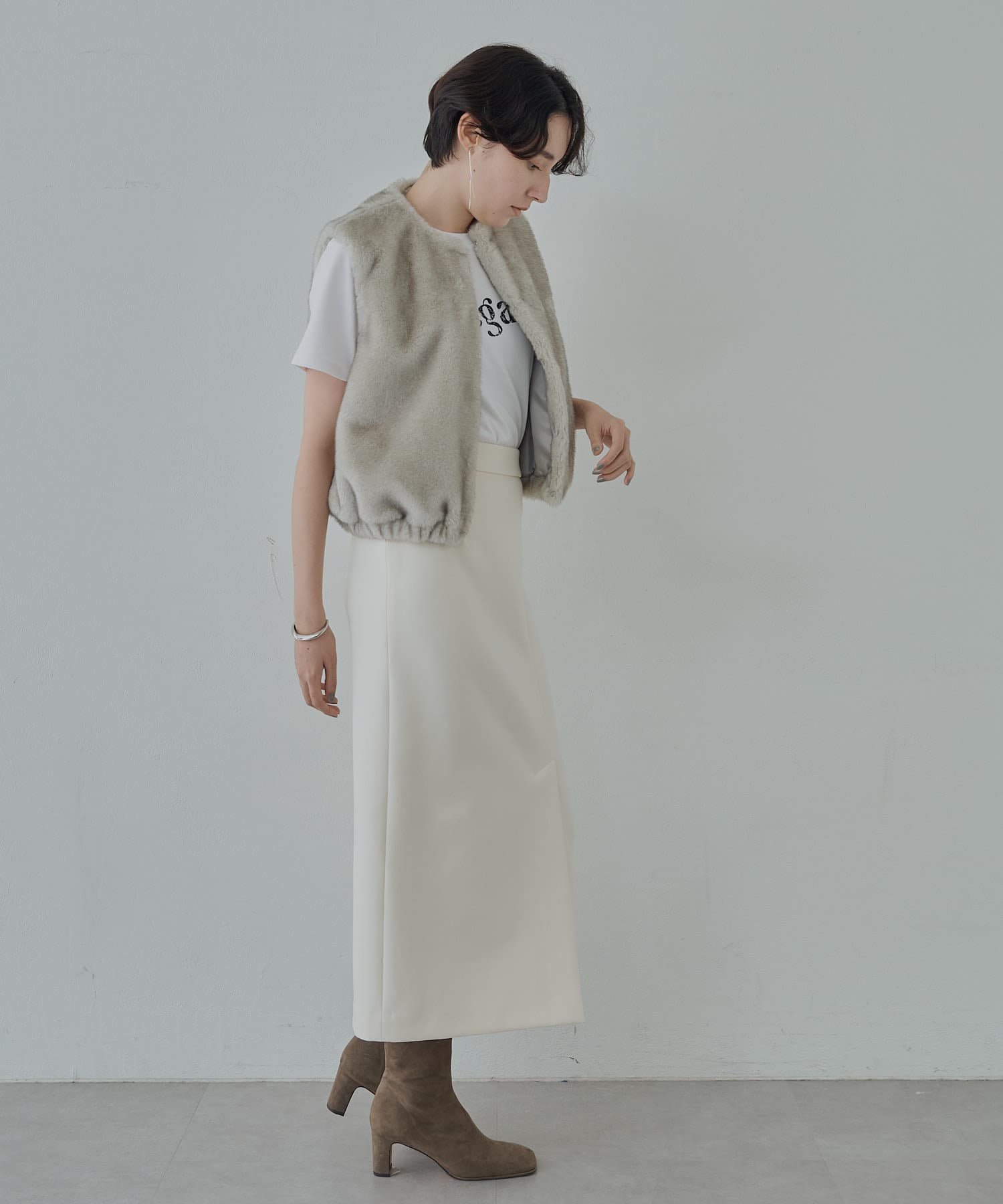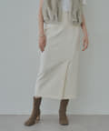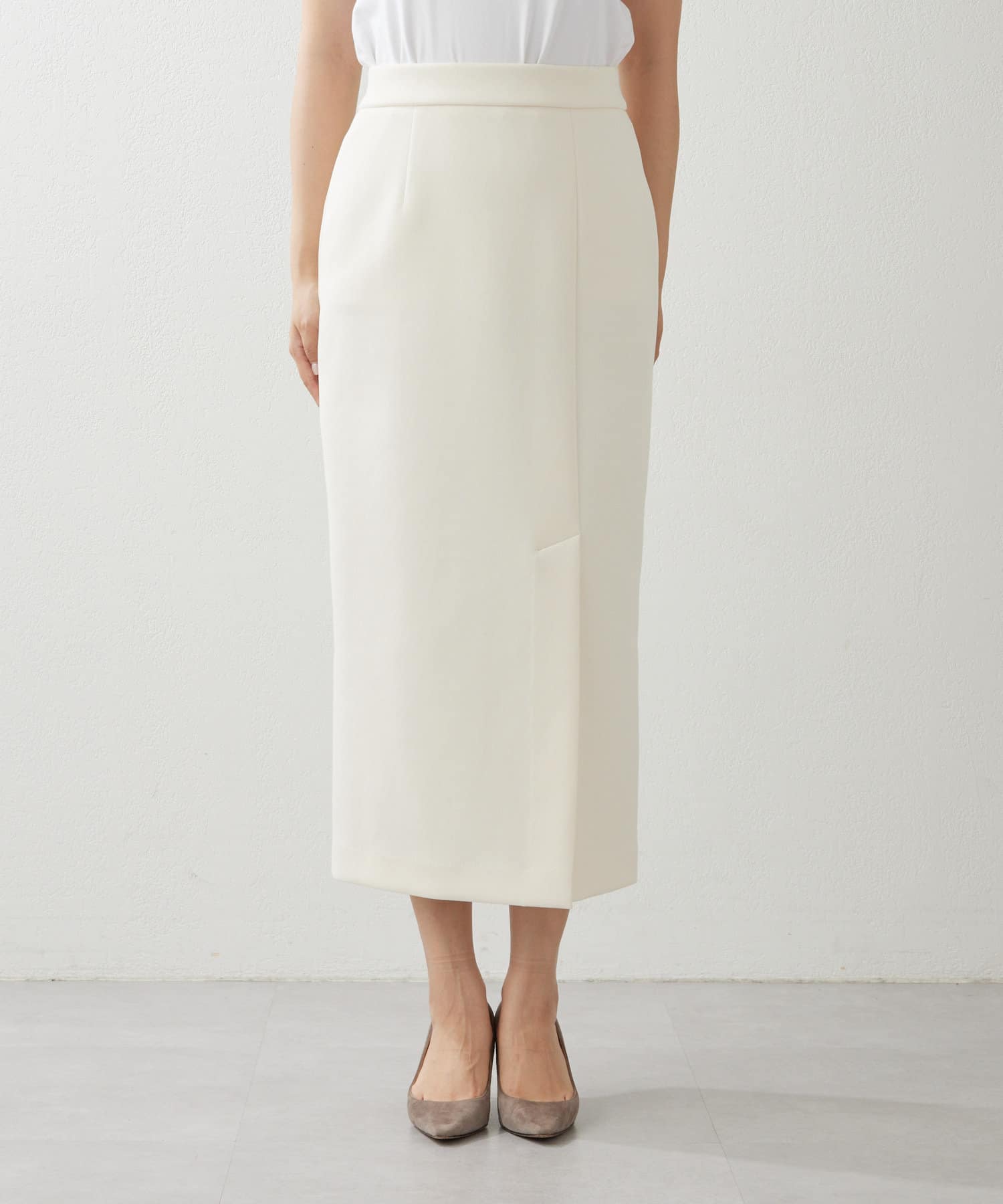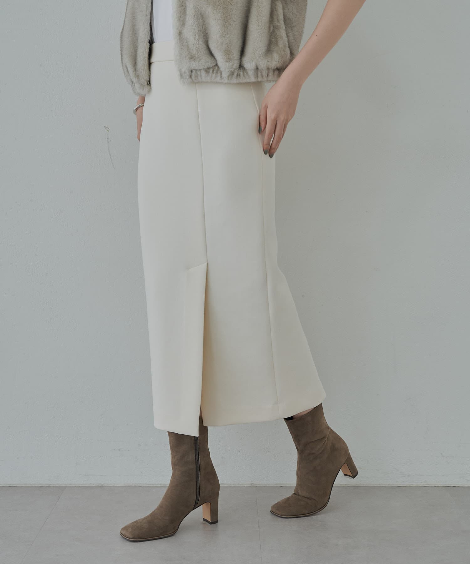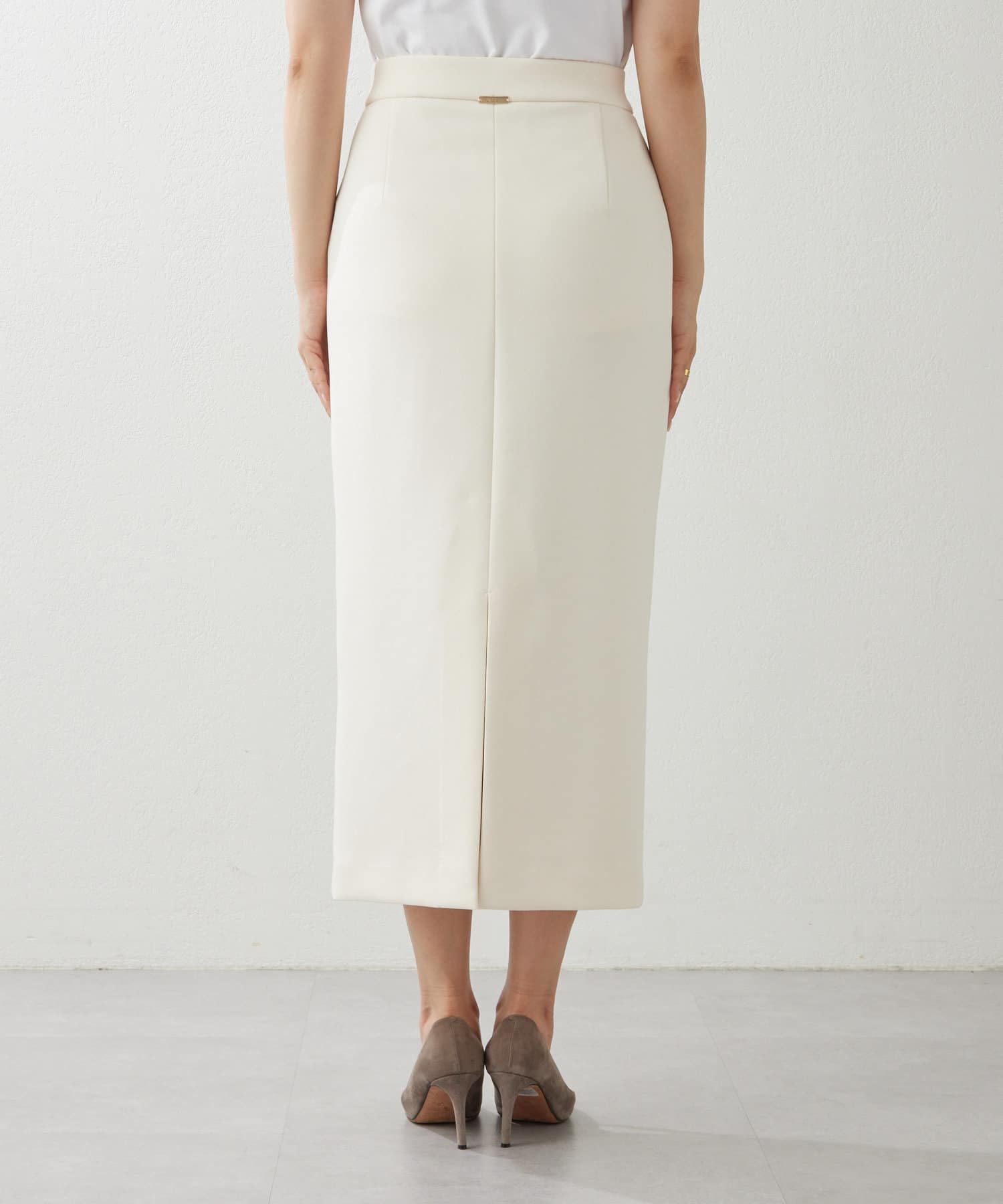 ■ストレッチの効いたダンボール素材を使用したタイトスカート。