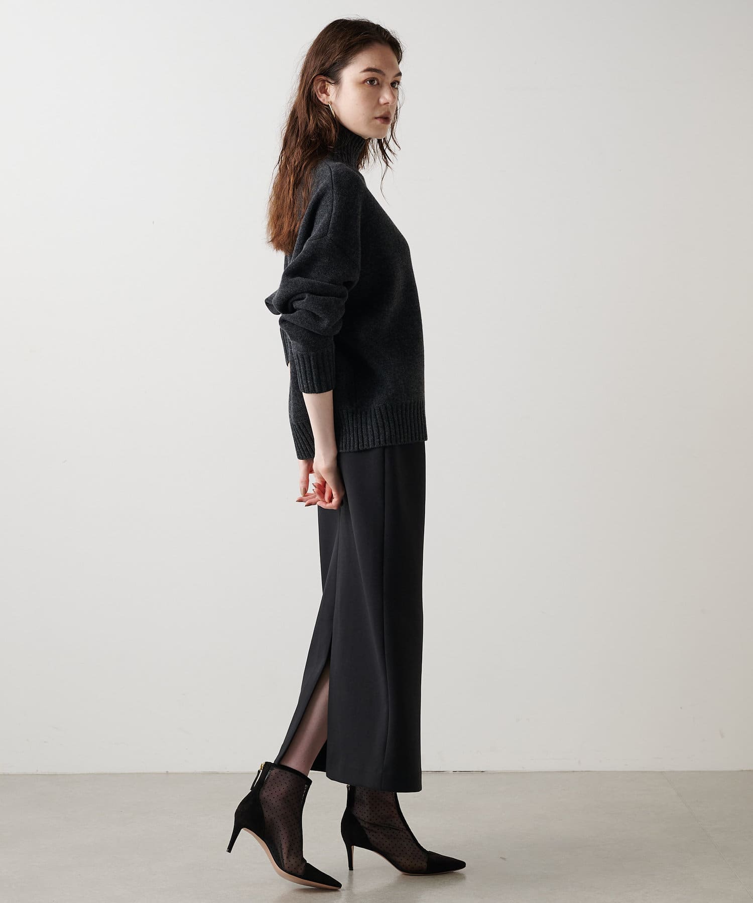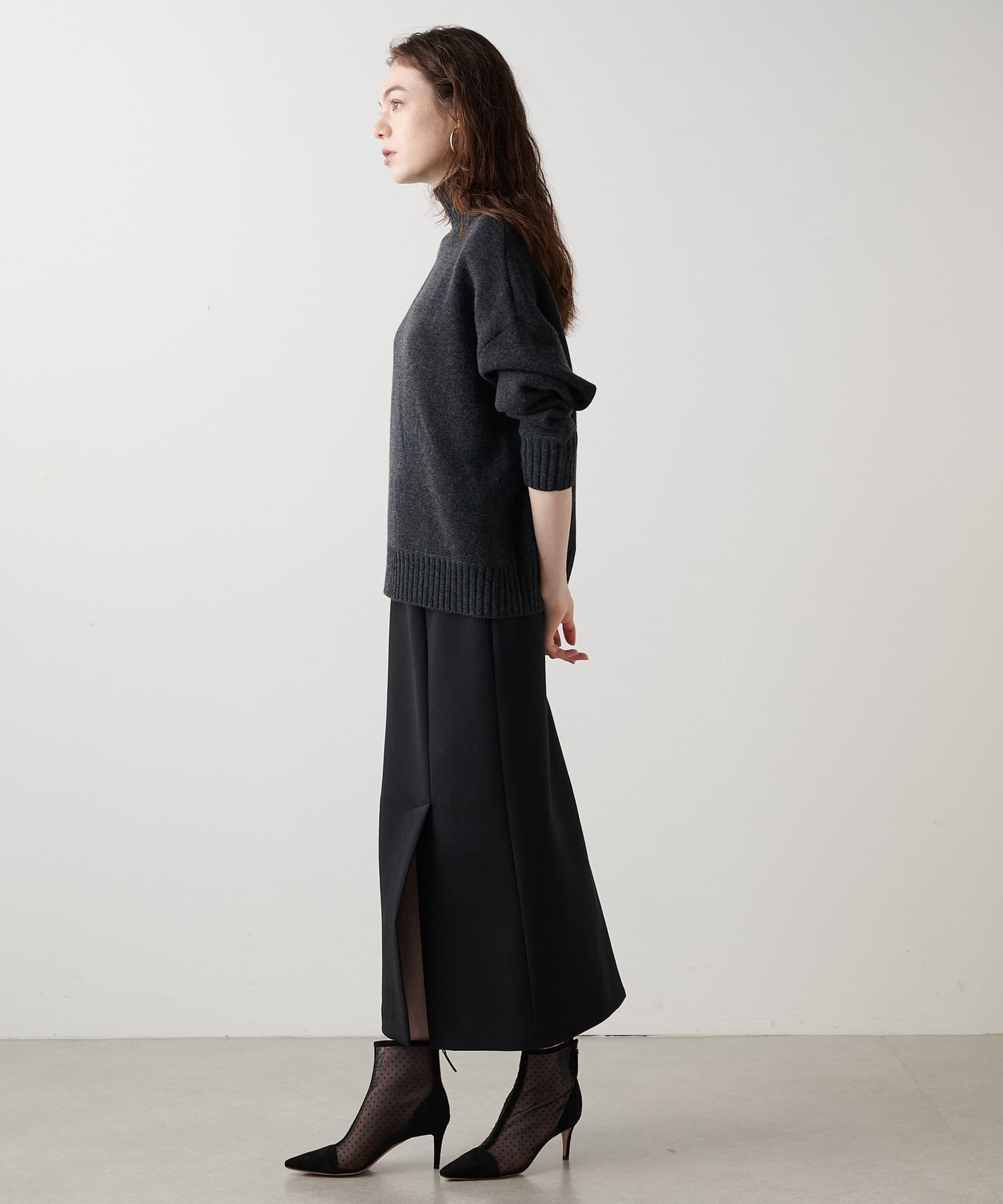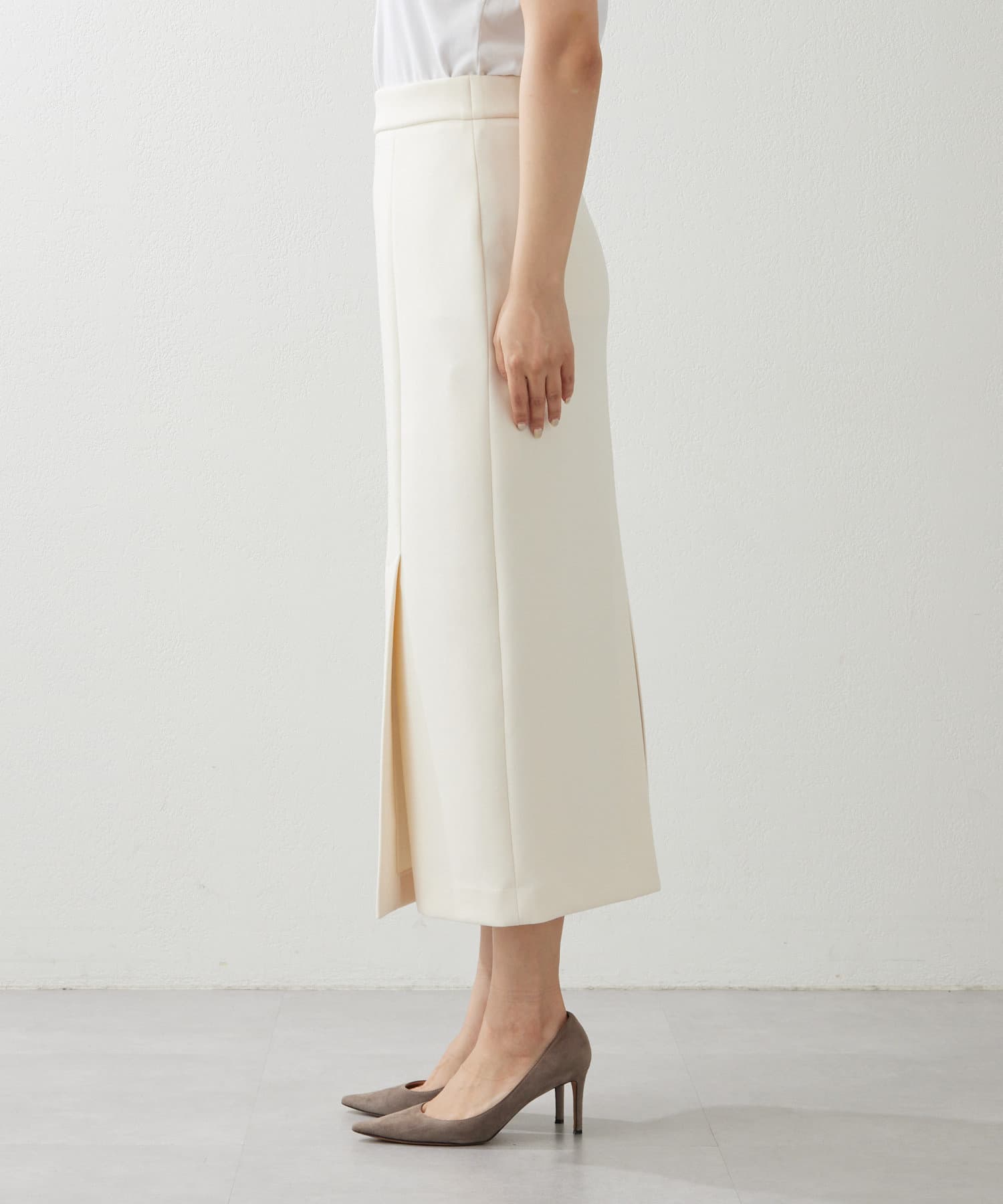 タイトスカートは伸縮性もあり、低身長の方でも安心して着て頂ける丈感と、前後にあるスリットが重さをなくしてくれます。38サイズを着用致しましたが、少々ゆとりがあります。伸縮性に優れておりますので、幅広いサイズで着ていただけそうです!