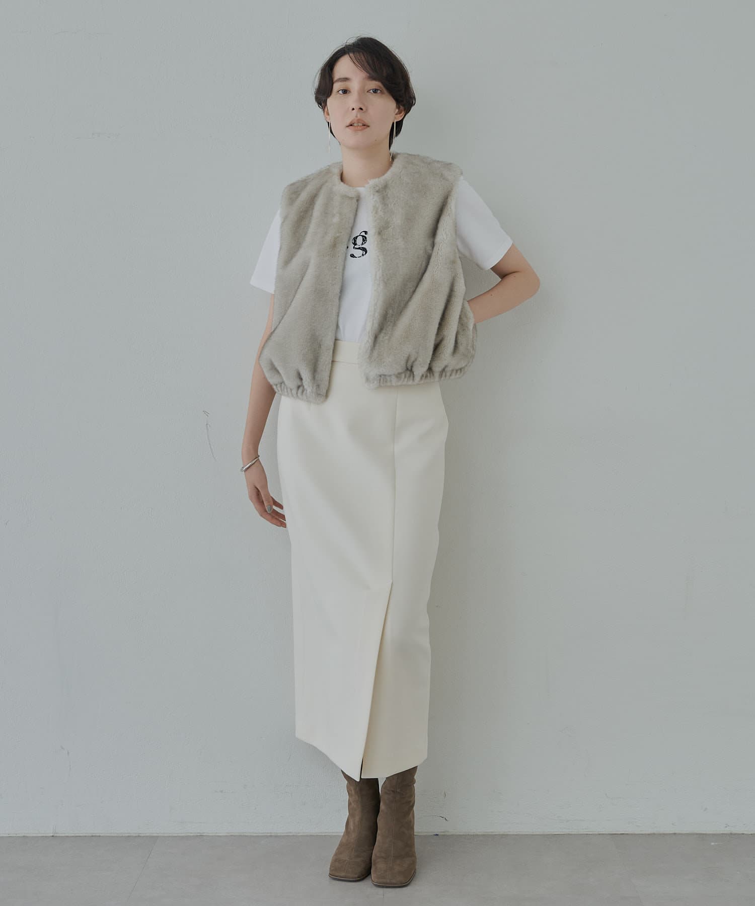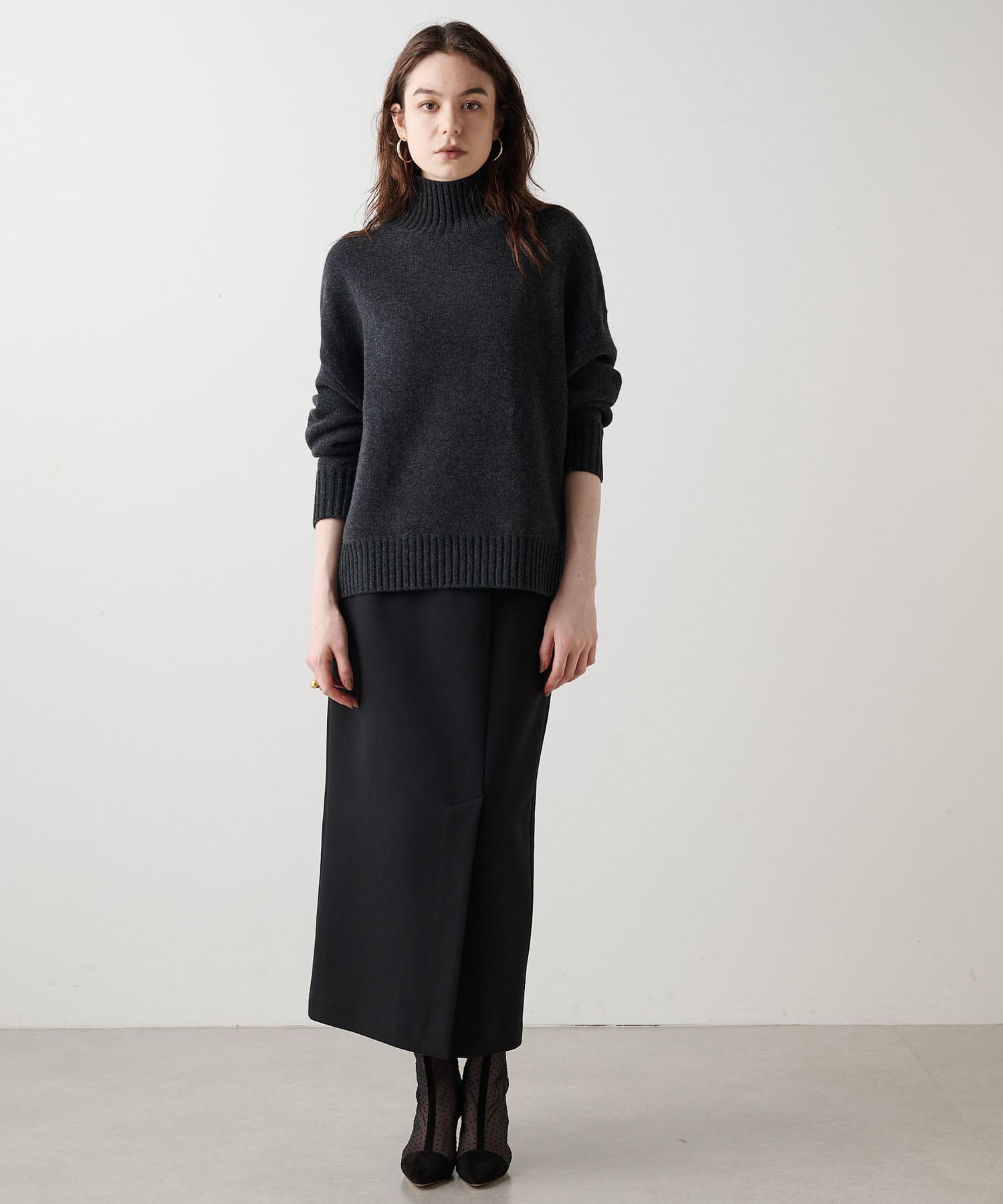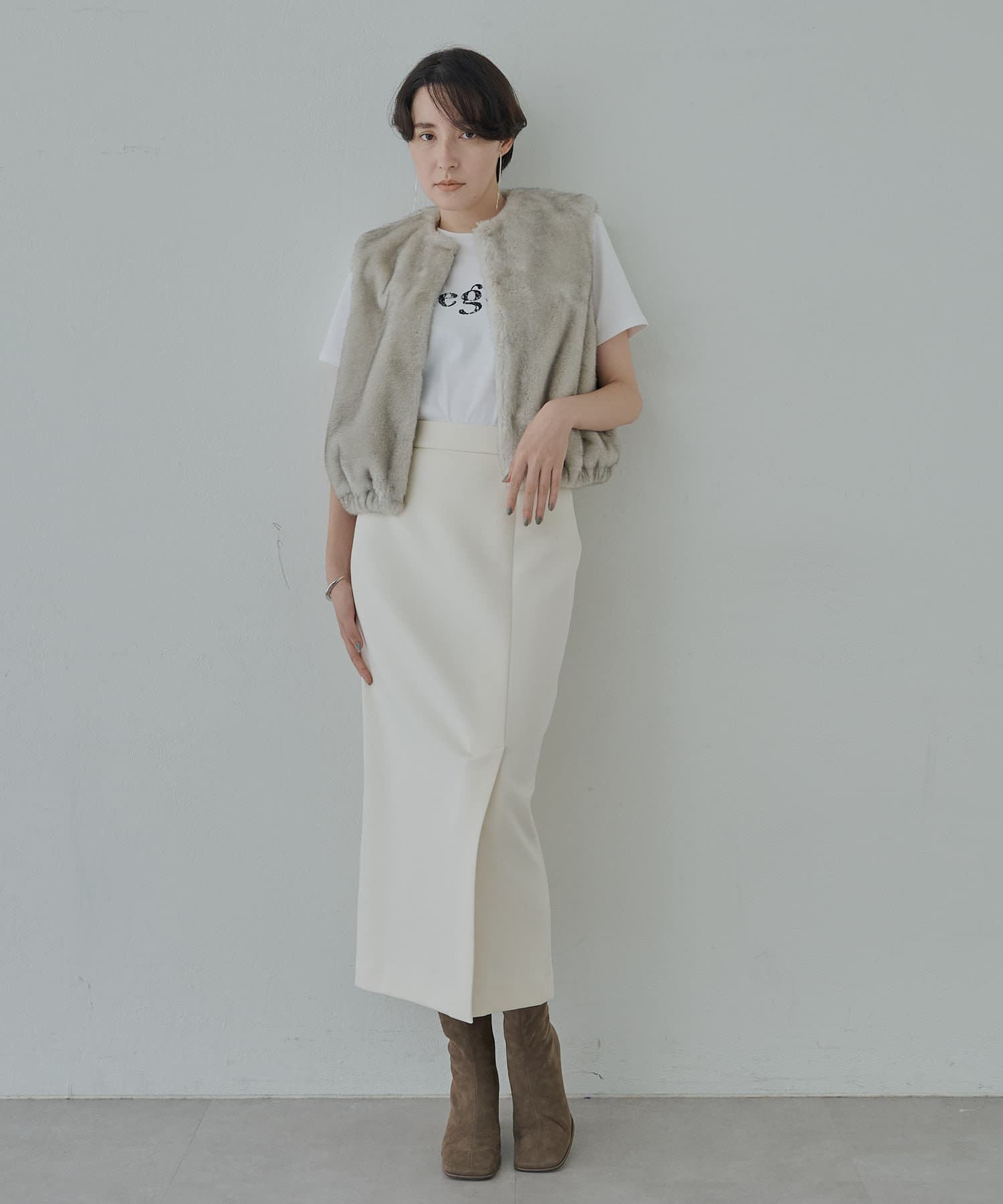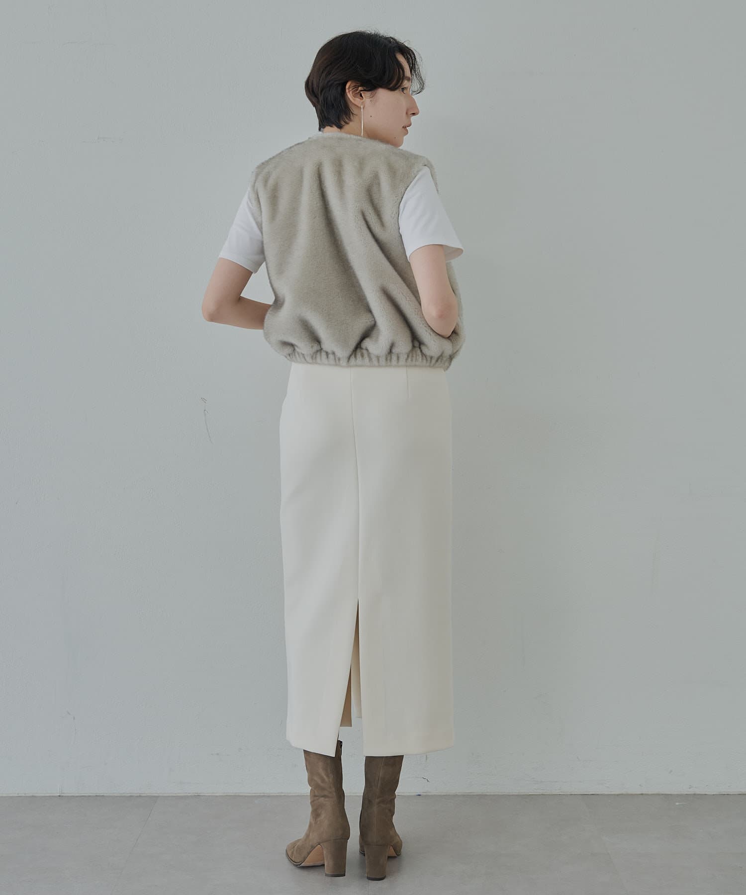 タイトスカートは伸縮性もあり、低身長の方でも安心して着て頂ける丈感と、前後にあるスリットが重さをなくしてくれます。38サイズを着用致しましたが、少々ゆとりがあります。伸縮性に優れておりますので、幅広いサイズで着ていただけそうです!